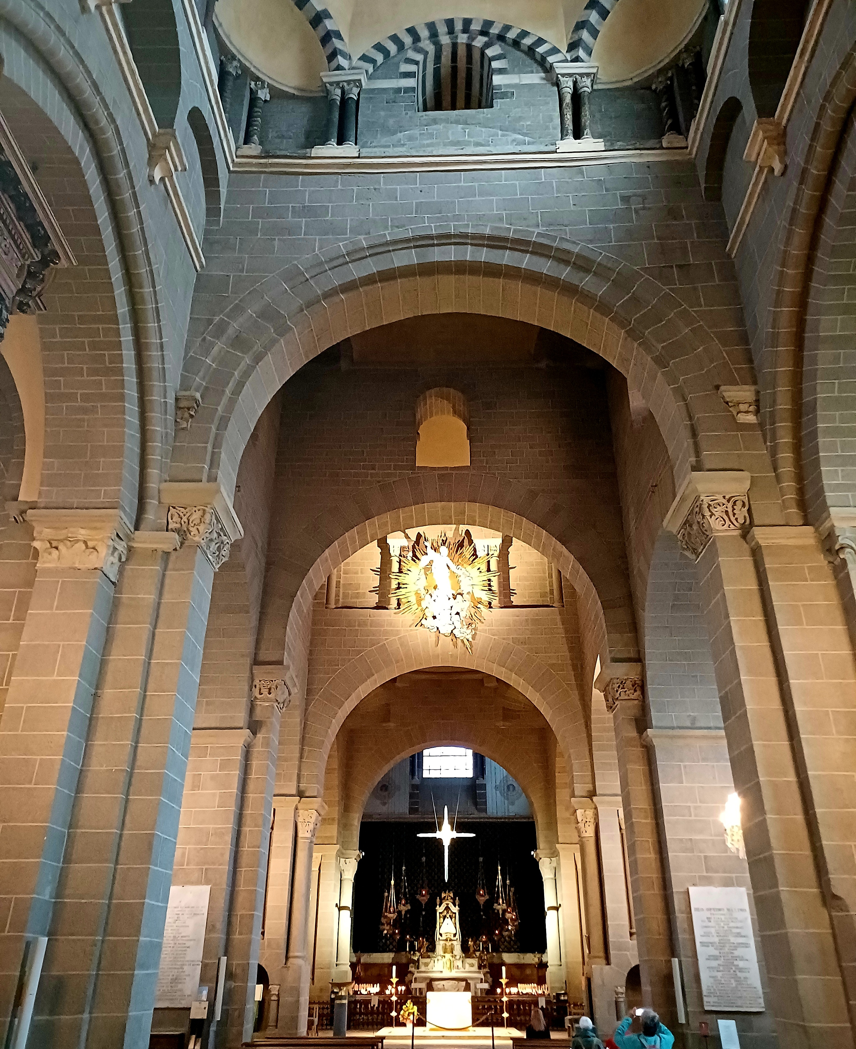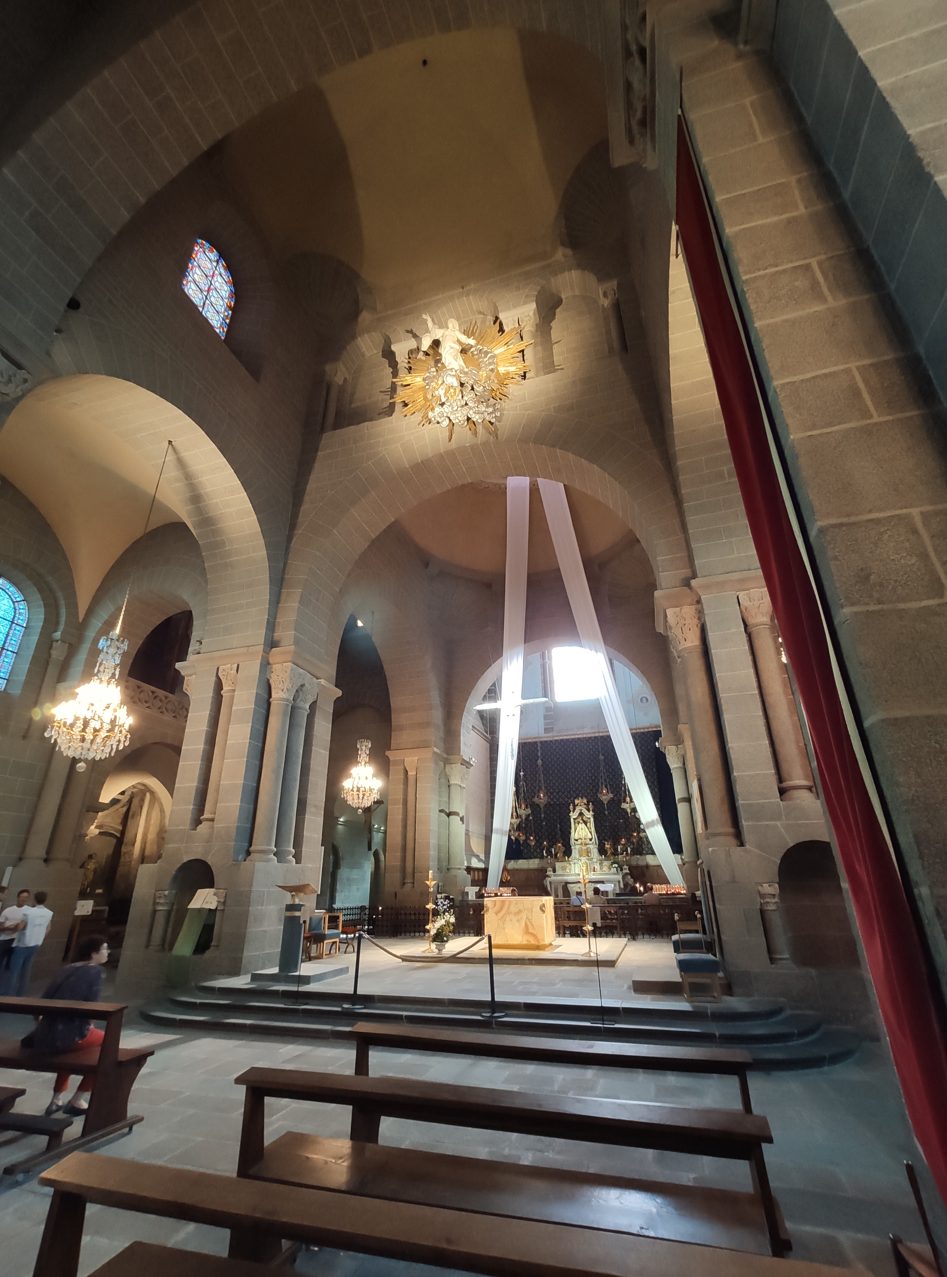 La cathédrale du puy est un lieu qu'il faut avoir vu une fois dans sa vie. Une nef absolument magnifique et le fait d'entrer ds la cathédrale par son coeur est incroyable. Ce lieu rempli d'histoire et de reliques est un incontournable pour tous les pèlerins du monde. Toutefois les sons et lumières qui étaient projetées dénaturaient la grandeur et la beauté du bâtiment