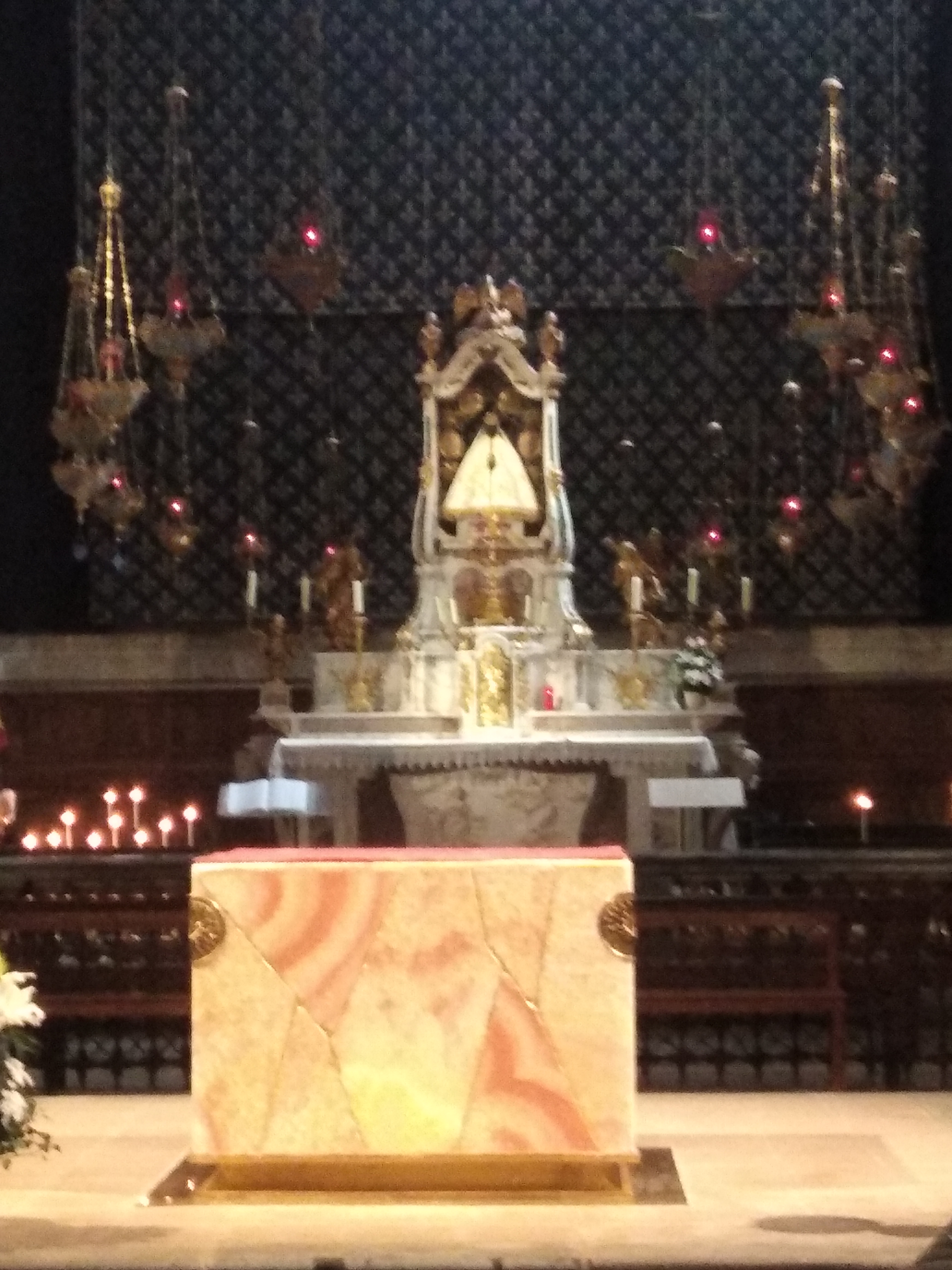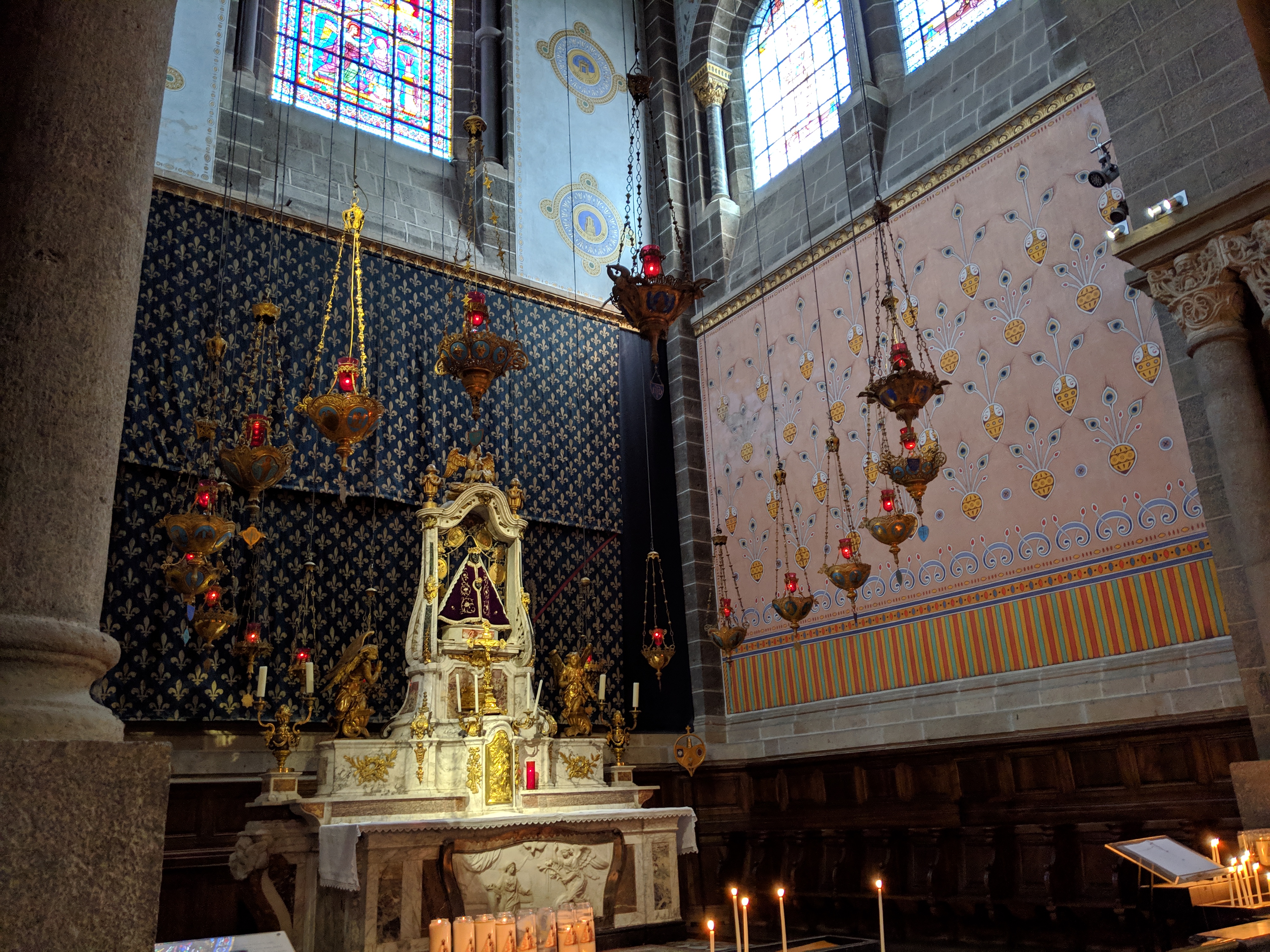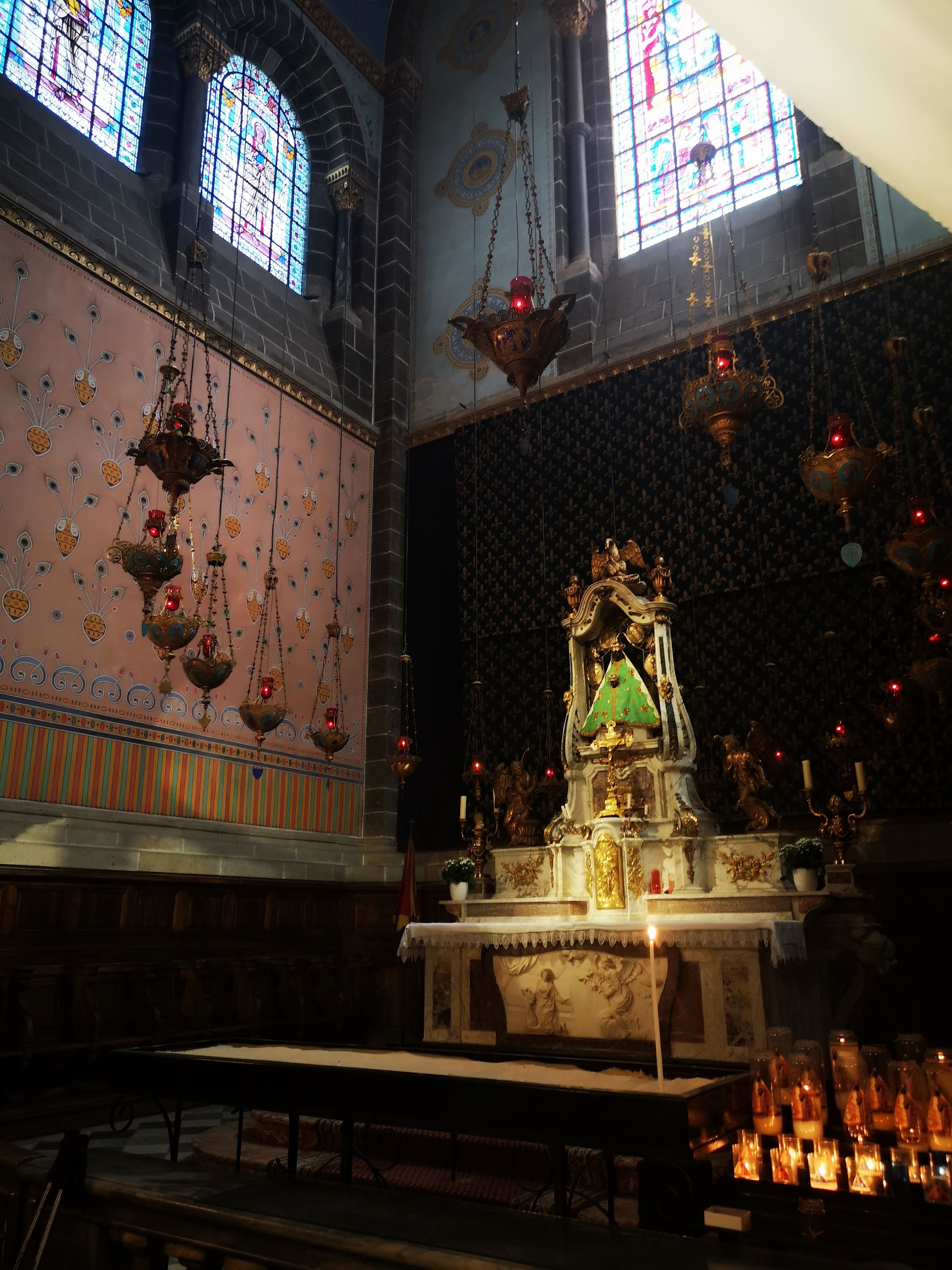Magnifique, grandiose rempli de statue, vitraux, orgue gigantesque mais aussi d’un cœur splendide dédié à la vierge noir. La messe des pèlerins est un moment important pour tous les pèlerins et celle-ci est fort sympathique.