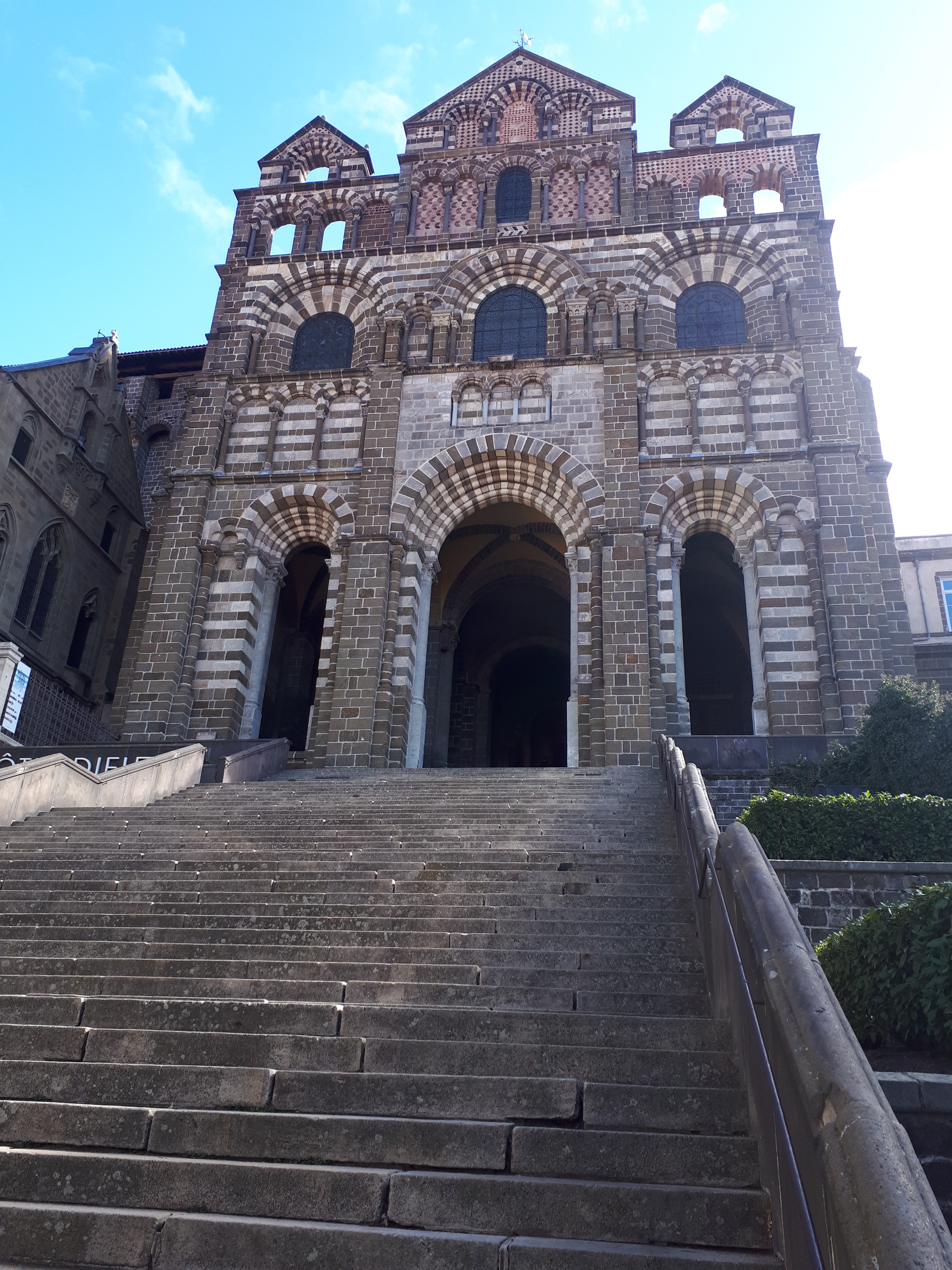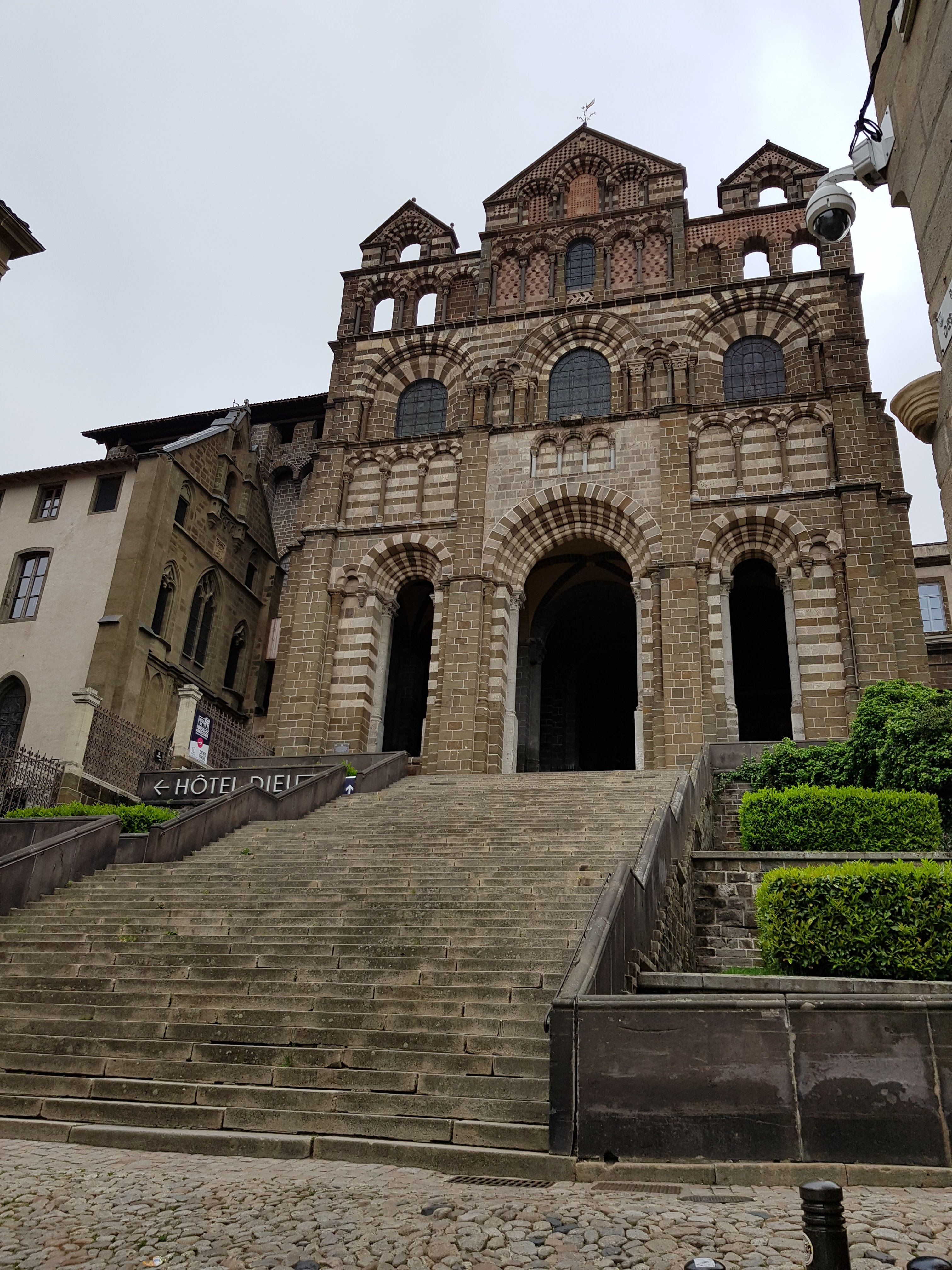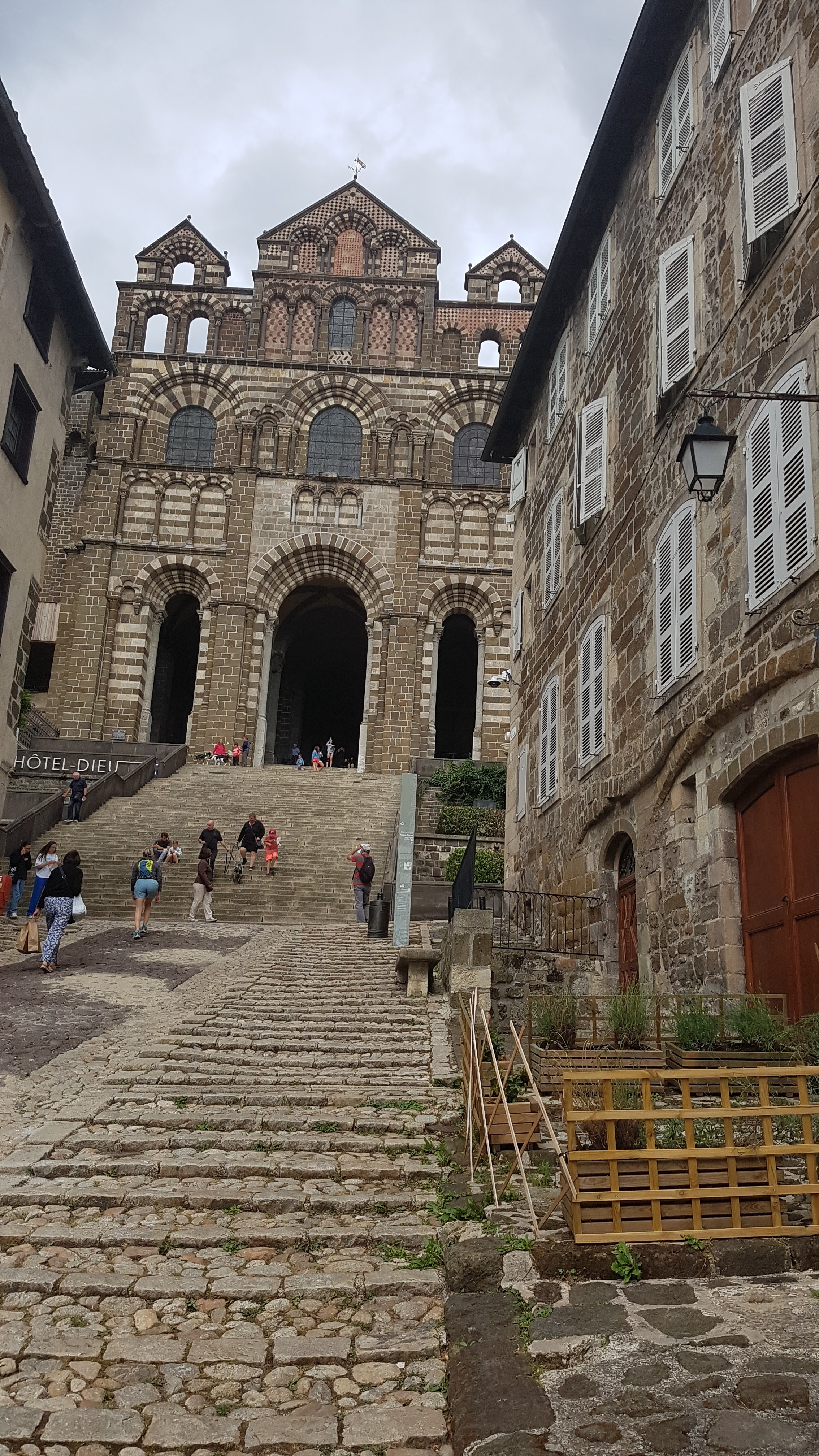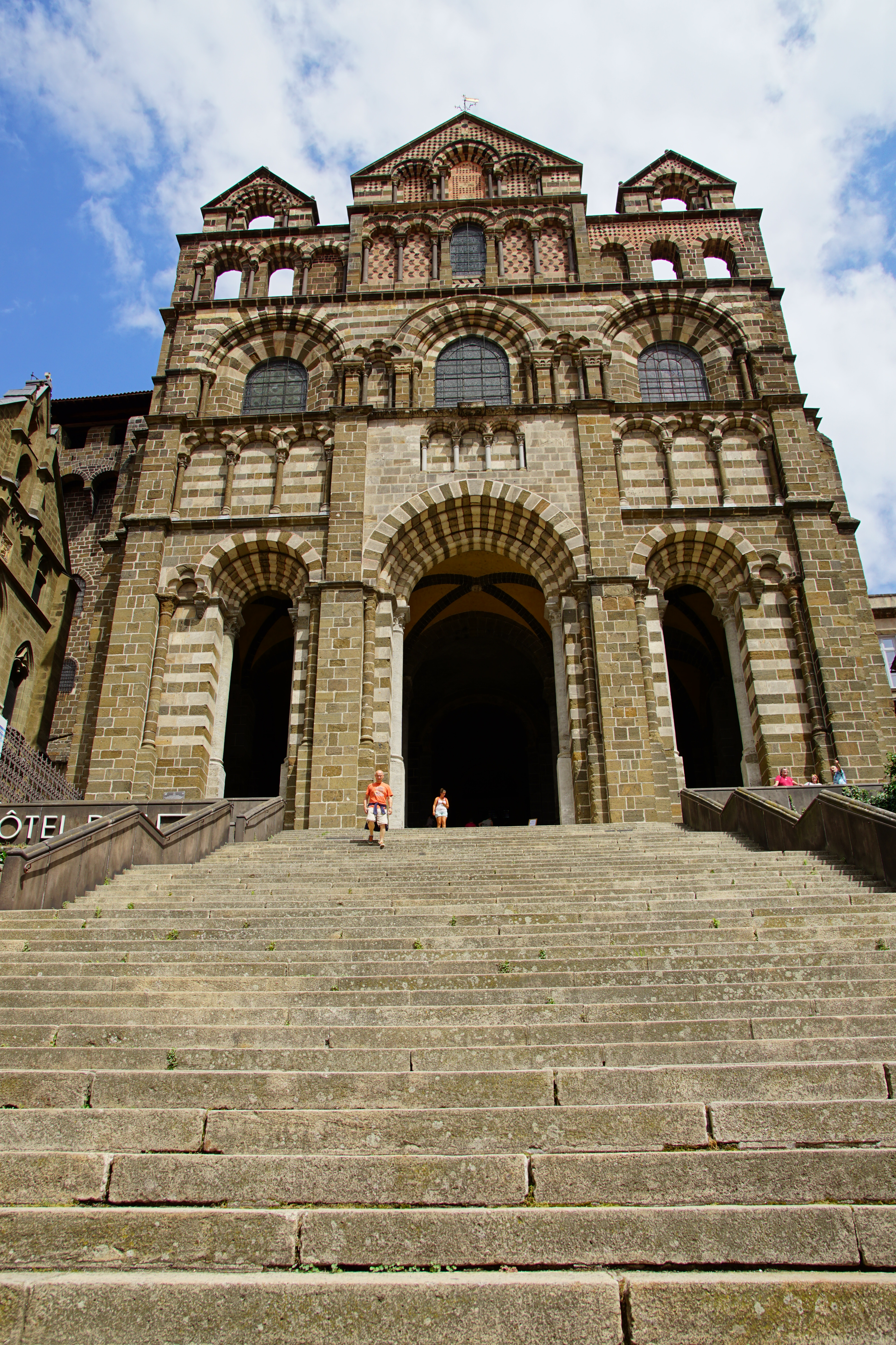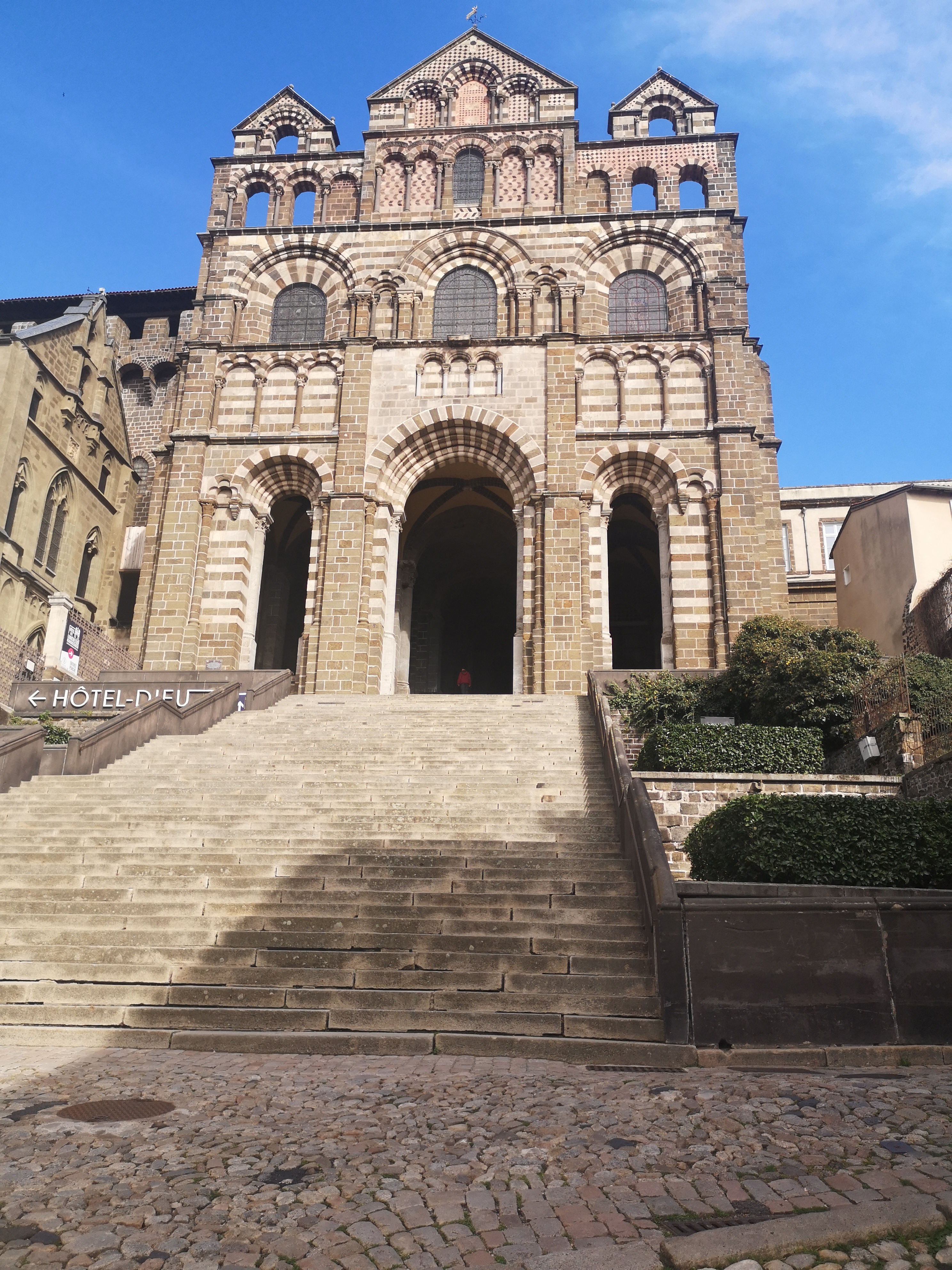 La Cathédrale Notre-Dame du Puy est une construction vraiment étonnante et incroyable, totalement invisible depuis la ville basse, elle apparait soudain au coin d'une rue de la ville haute. Ou alors, elle apparait au bout d'un escalier de 134 marches qui relie la ville basse à la ville haute. C'est un monument magnifique, différent des autres cathédrales, qu'il faut savoir apprécier.