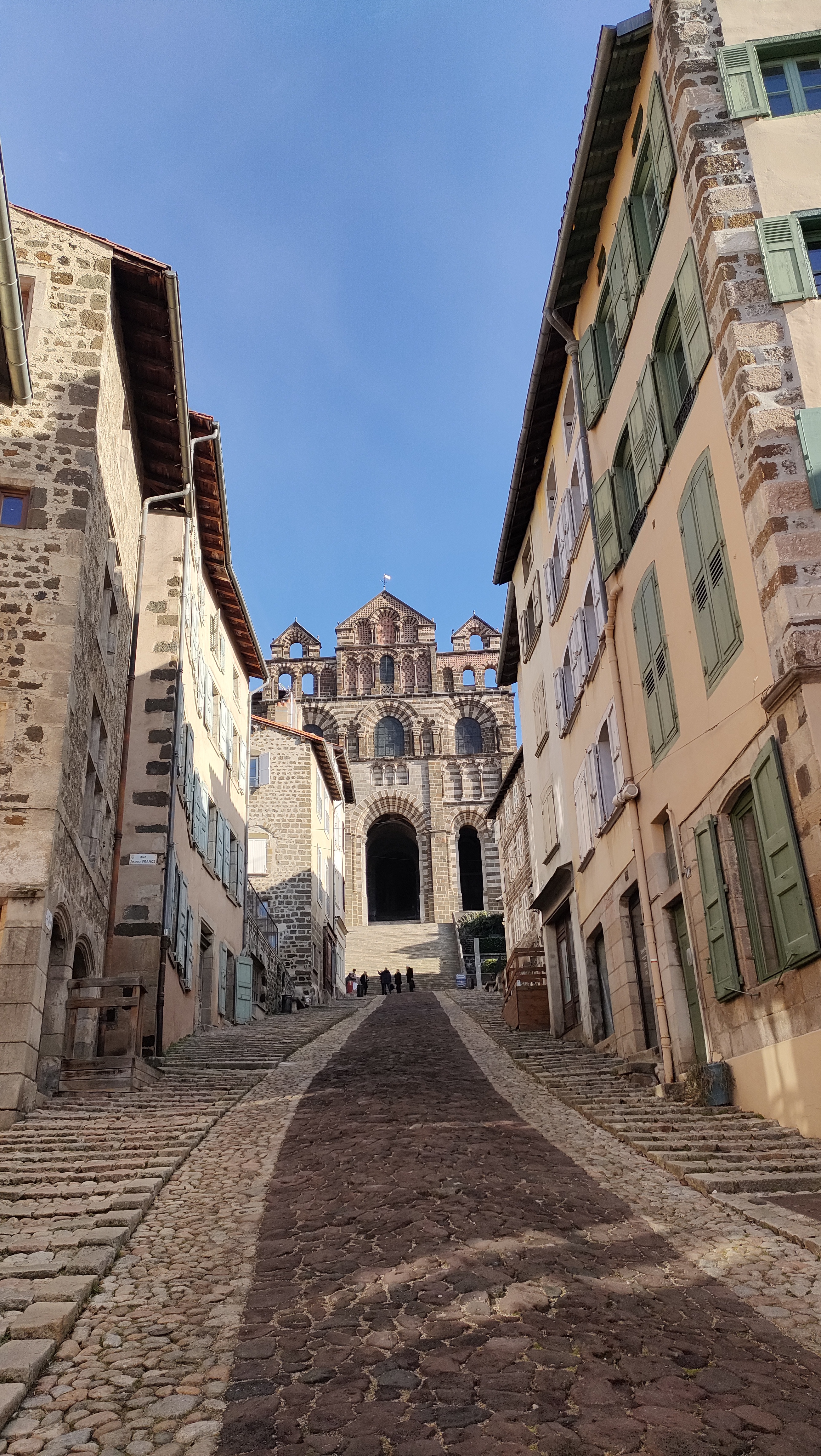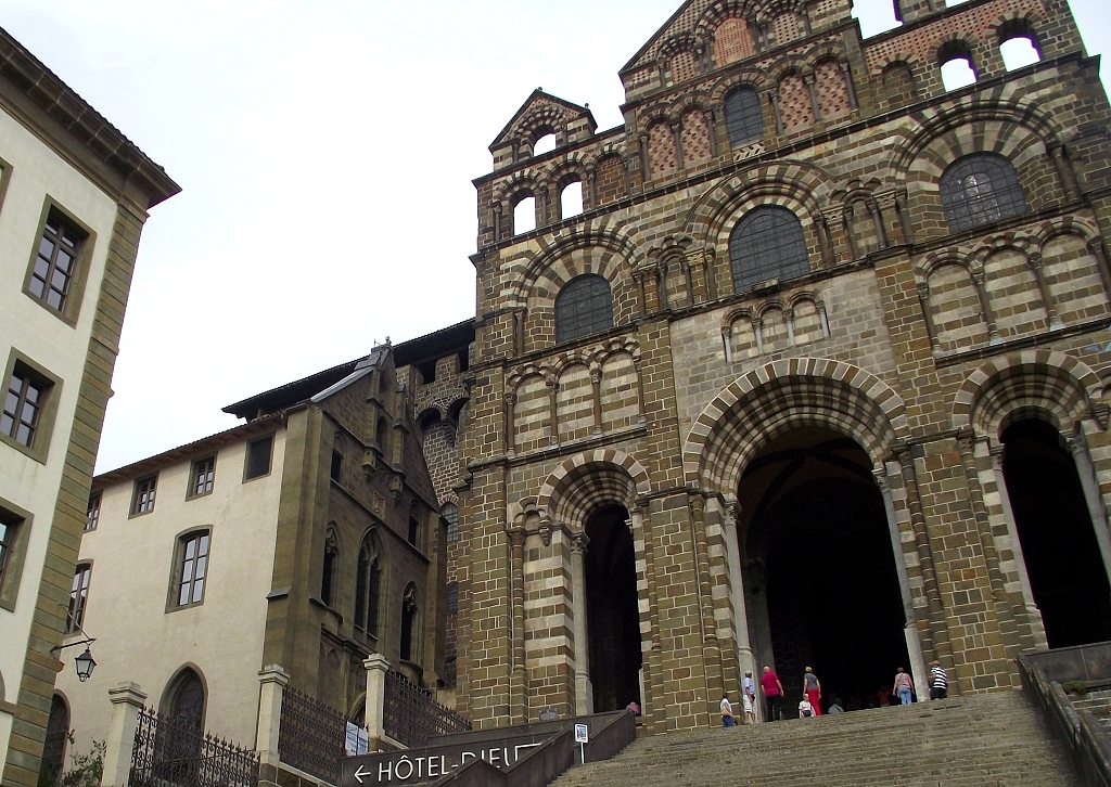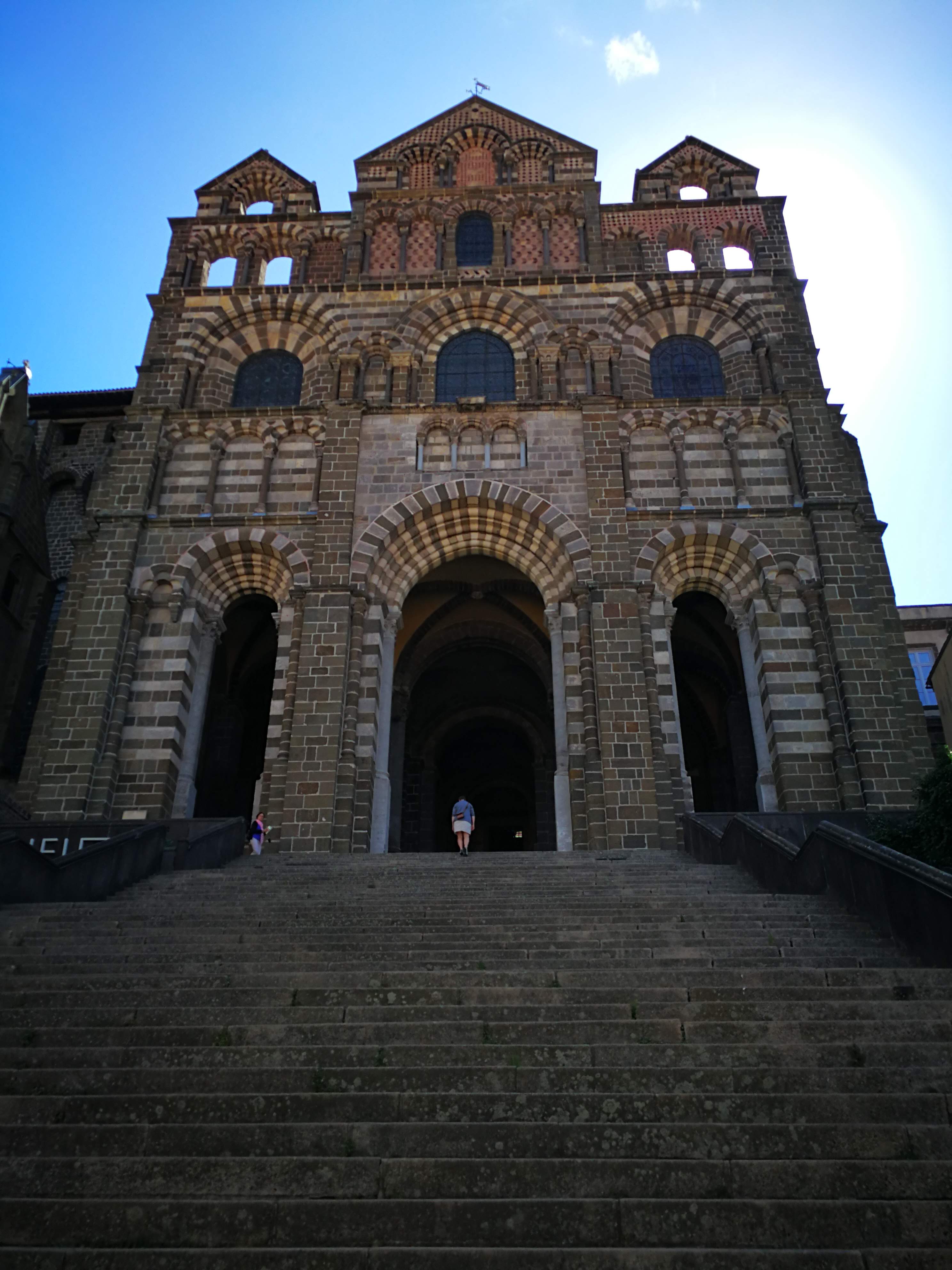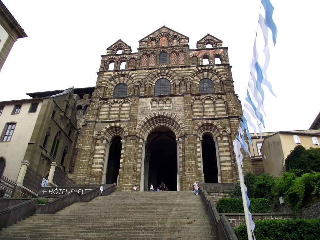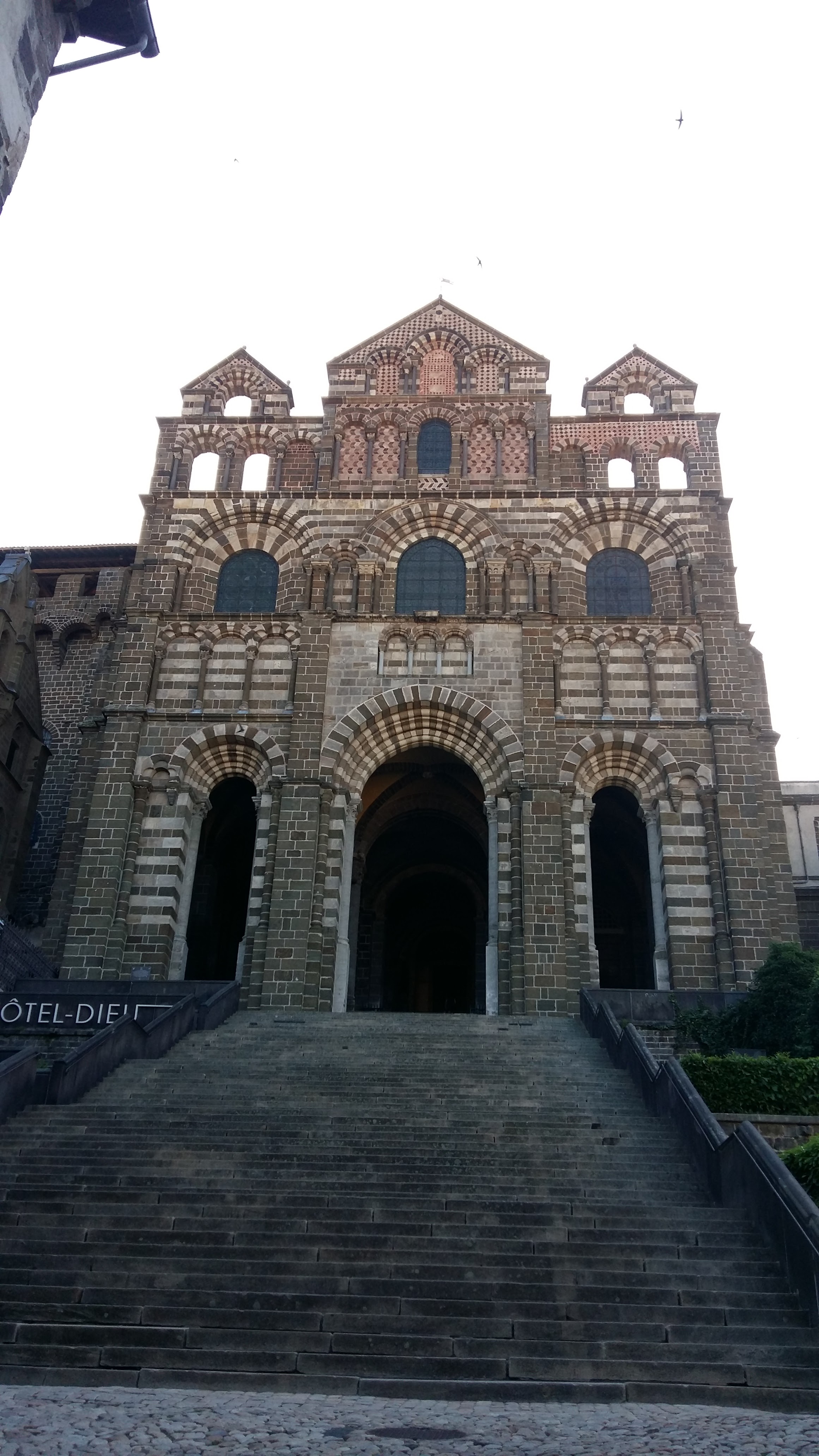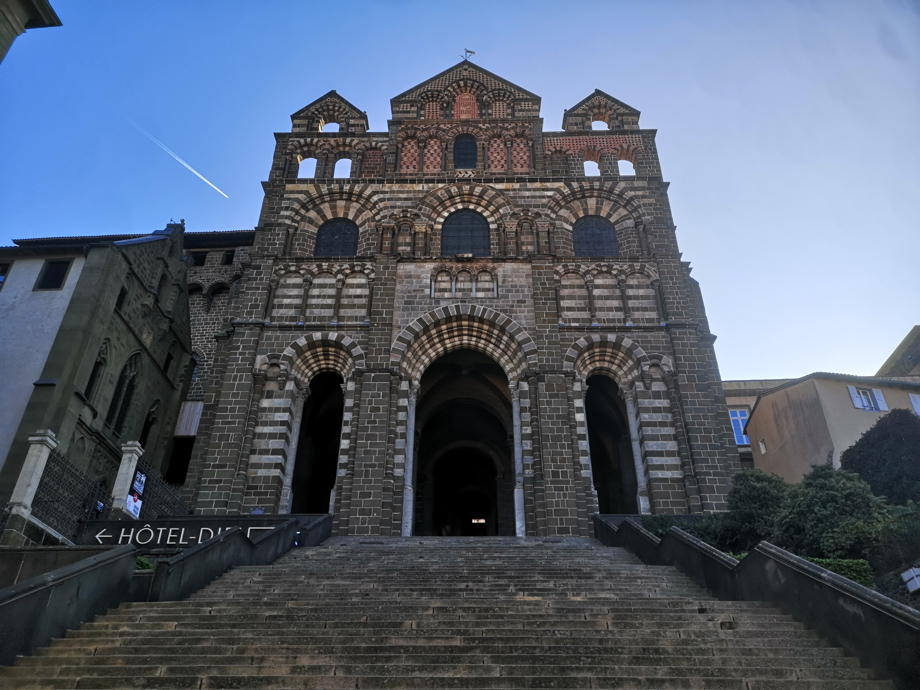 La Cathédrale Notre-Dame du Puy est une construction vraiment étonnante et incroyable, totalement invisible depuis la ville basse, elle apparait soudain au coin d'une rue de la ville haute. Ou alors, elle apparait au bout d'un escalier de 134 marches qui relie la ville basse à la ville haute. C'est un monument magnifique, différent des autres cathédrales, qu'il faut savoir apprécier.