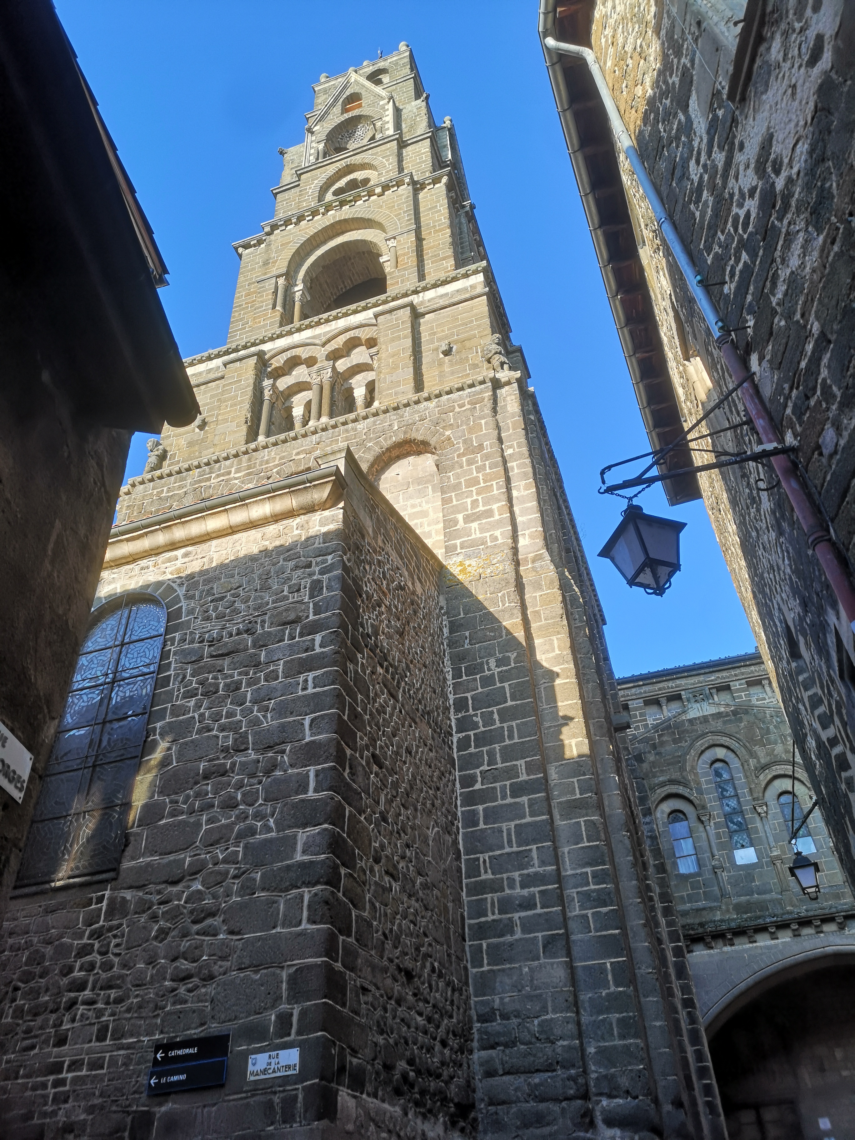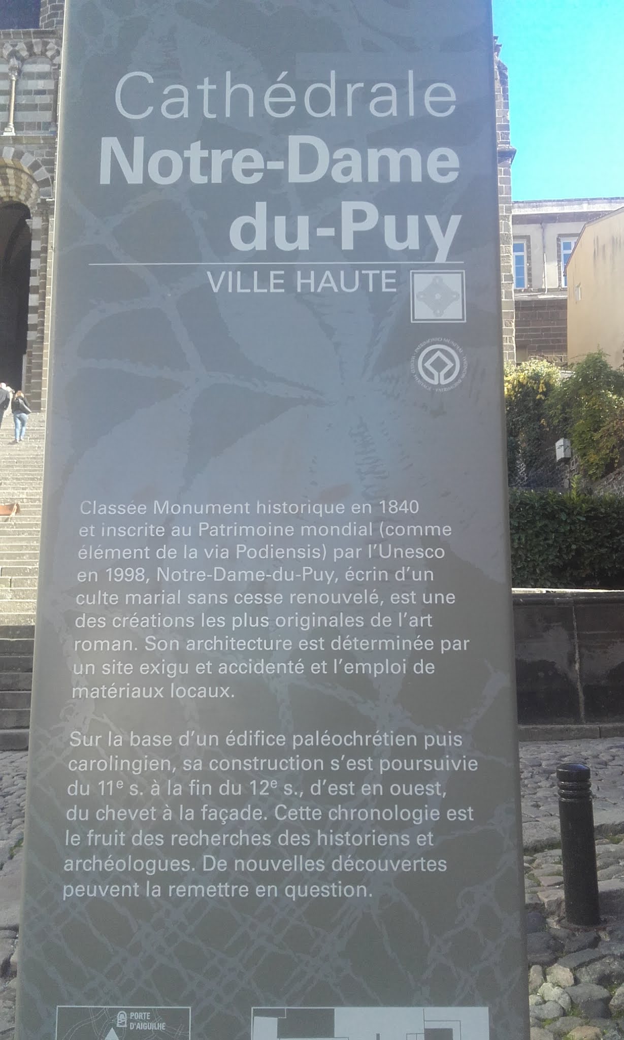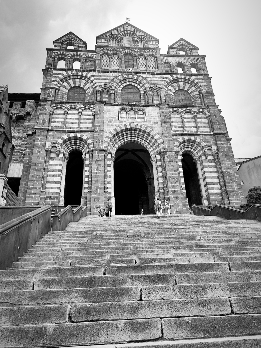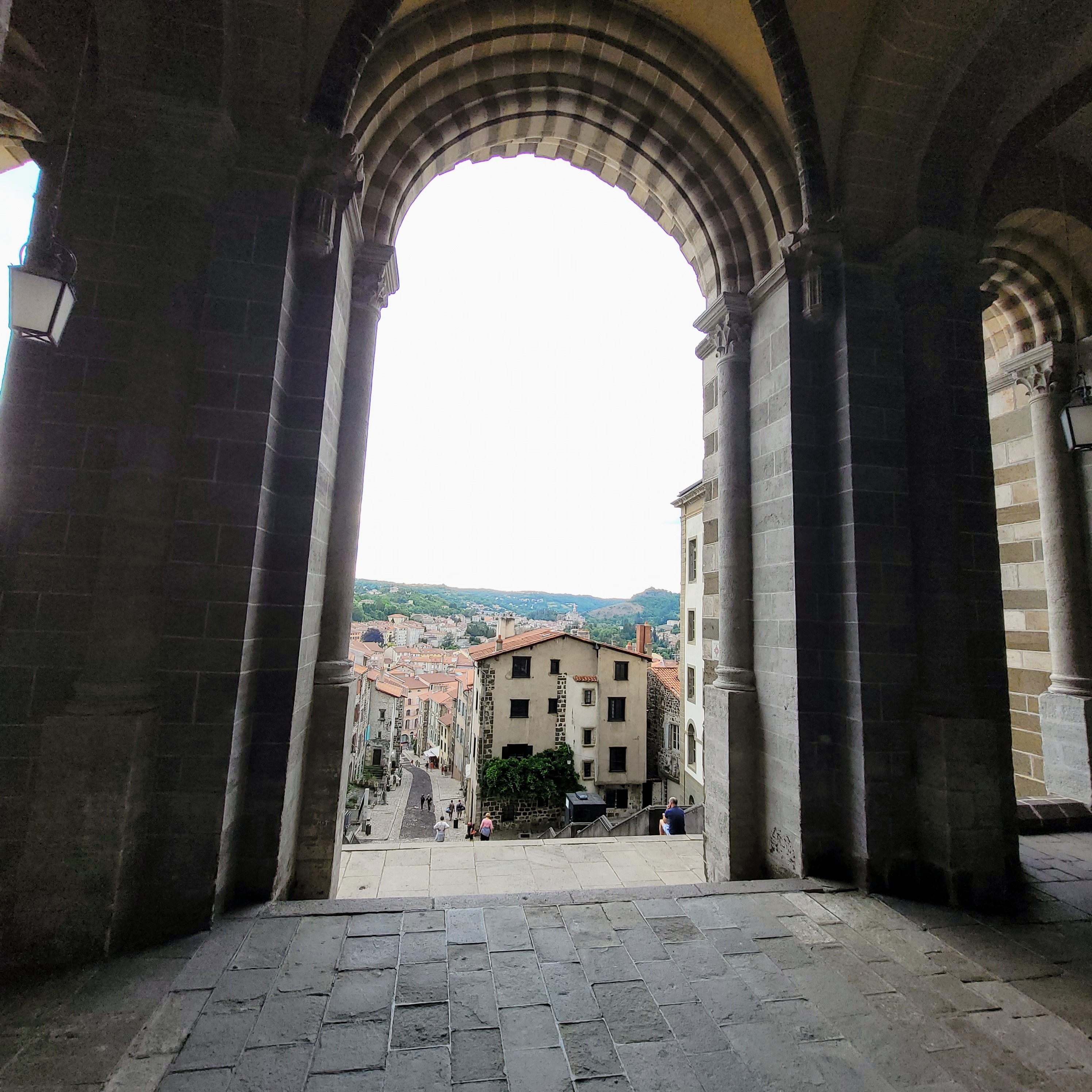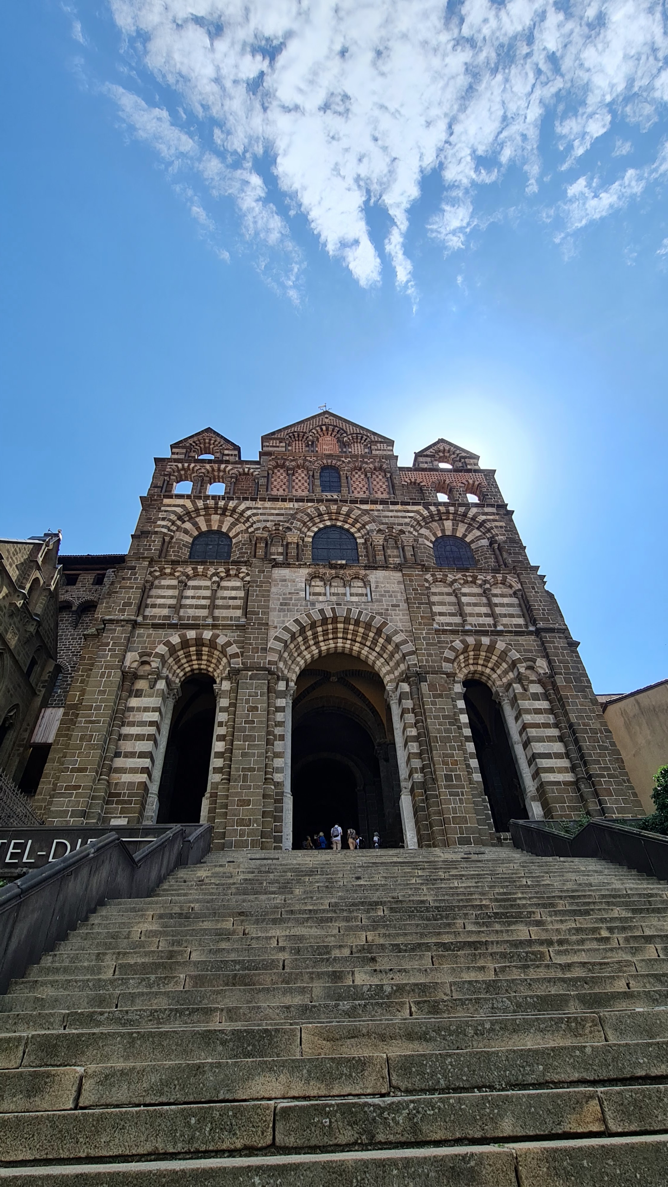 La Cathédrale Notre-Dame du Puy est une construction vraiment étonnante et incroyable, totalement invisible depuis la ville basse, elle apparait soudain au coin d'une rue de la ville haute. Ou alors, elle apparait au bout d'un escalier de 134 marches qui relie la ville basse à la ville haute. C'est un monument magnifique, différent des autres cathédrales, qu'il faut savoir apprécier.