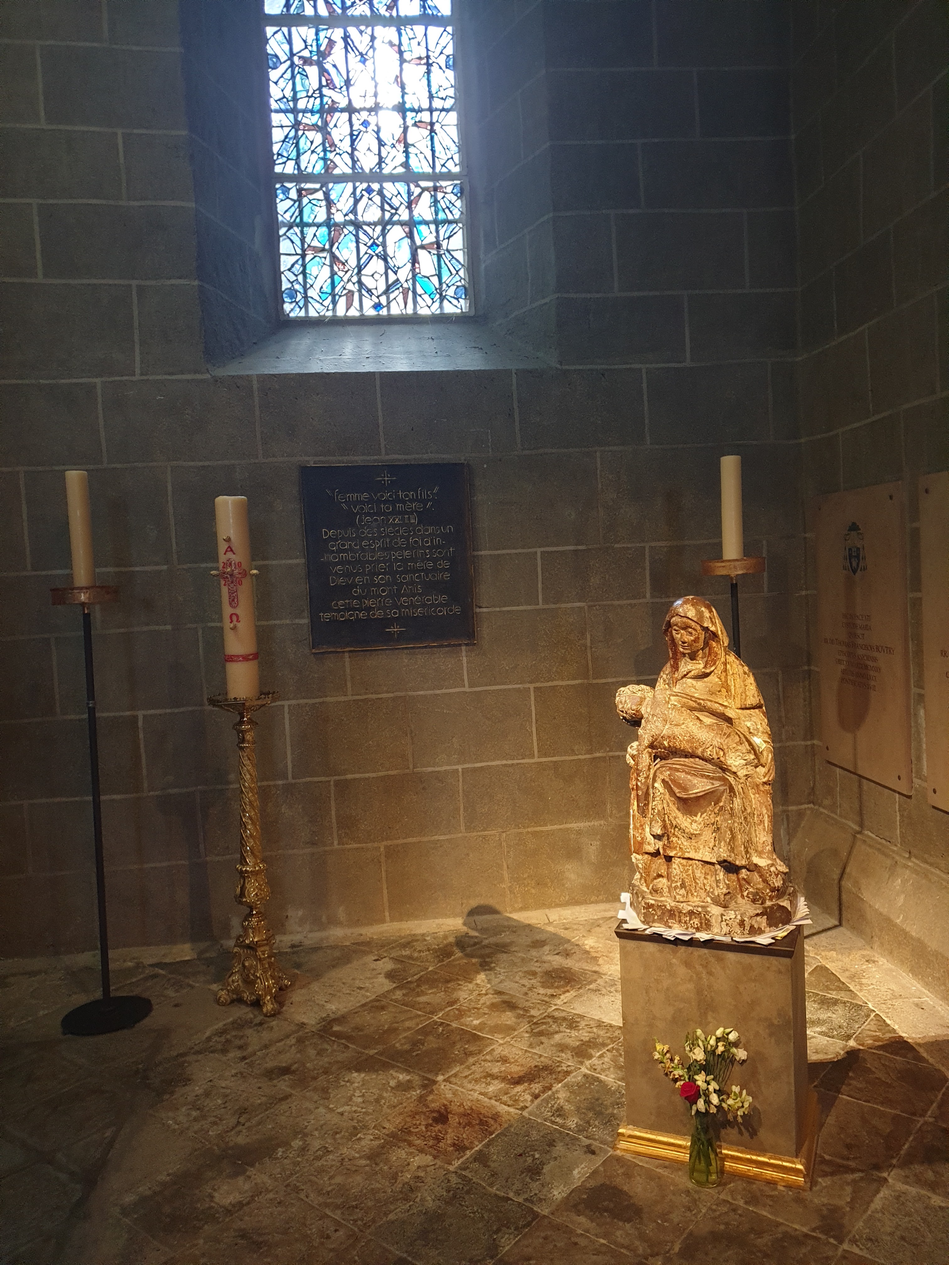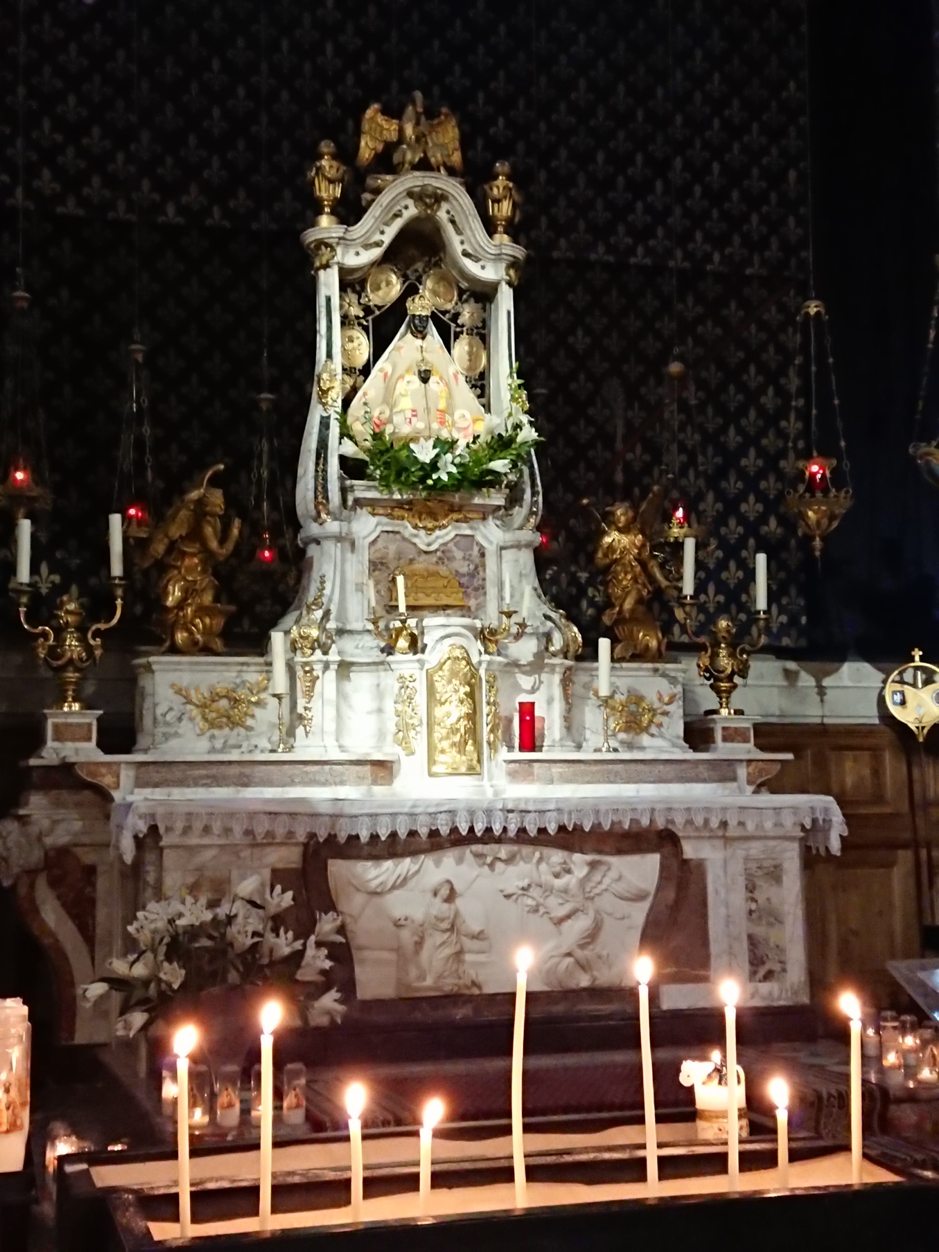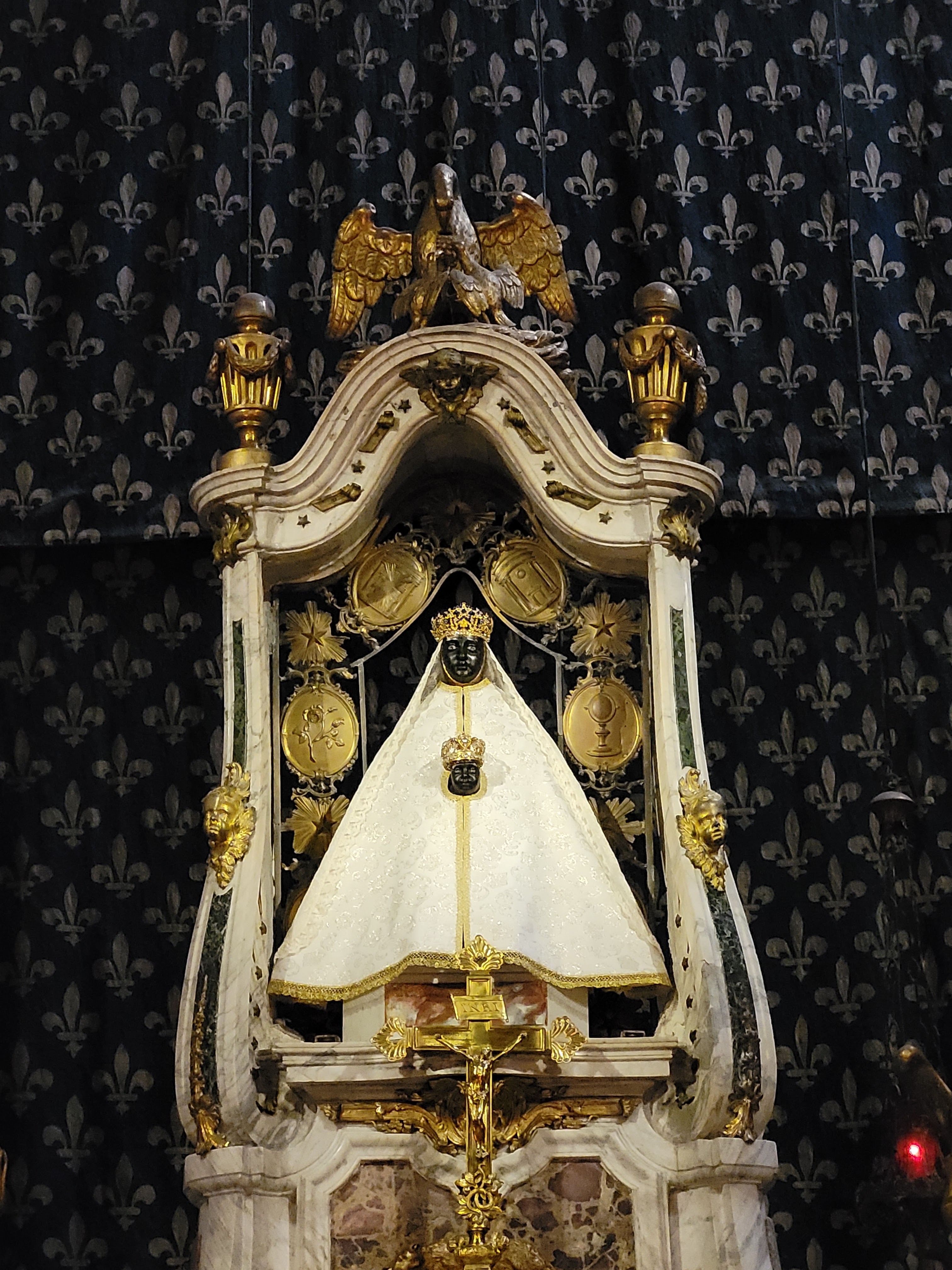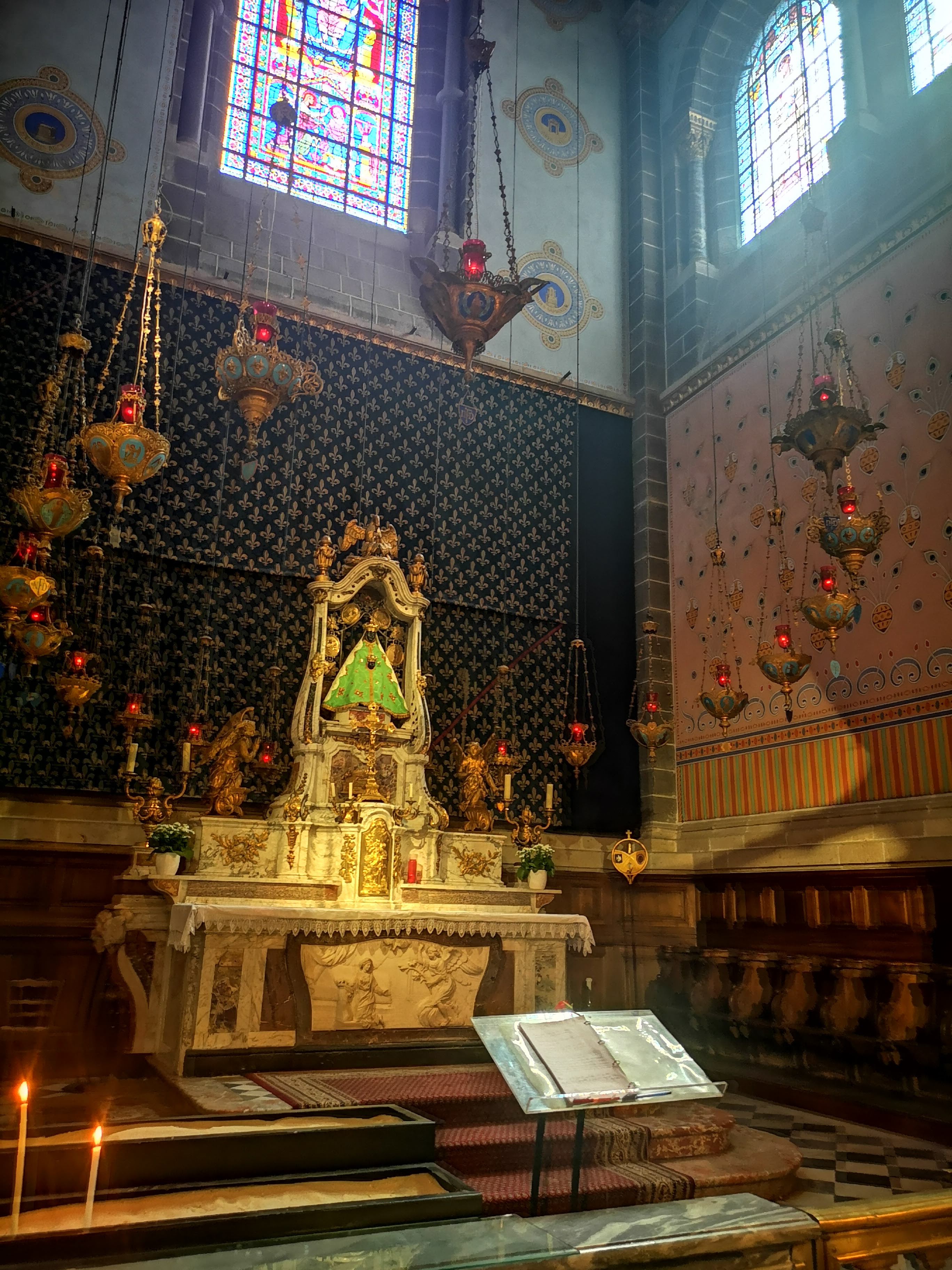 L 'arrivée par la ventre de la Cathédrale est extraordinaire. Magnifique, la vierge noire dans sa robe de dentelle blanche. Les orgues sublimes.