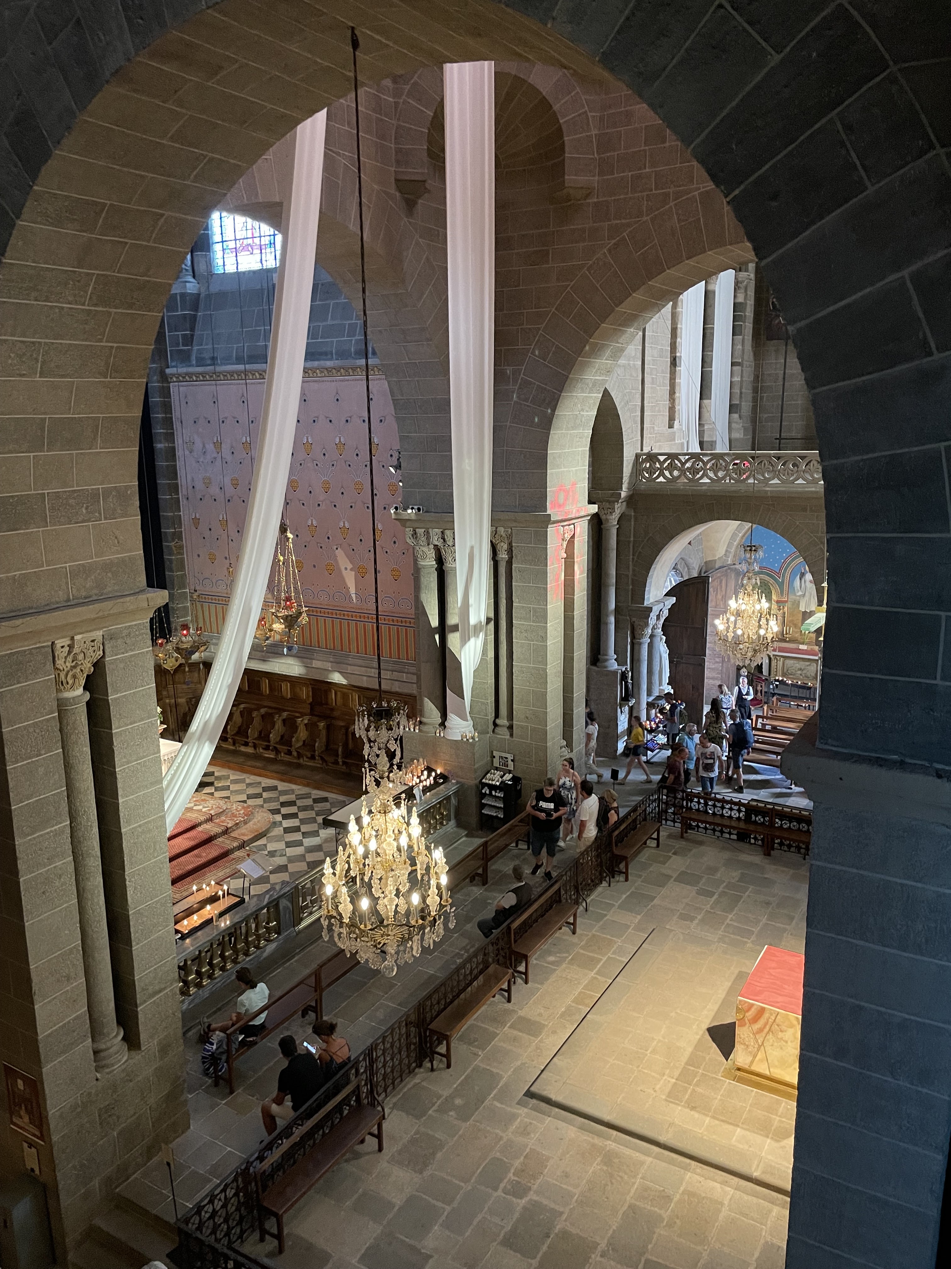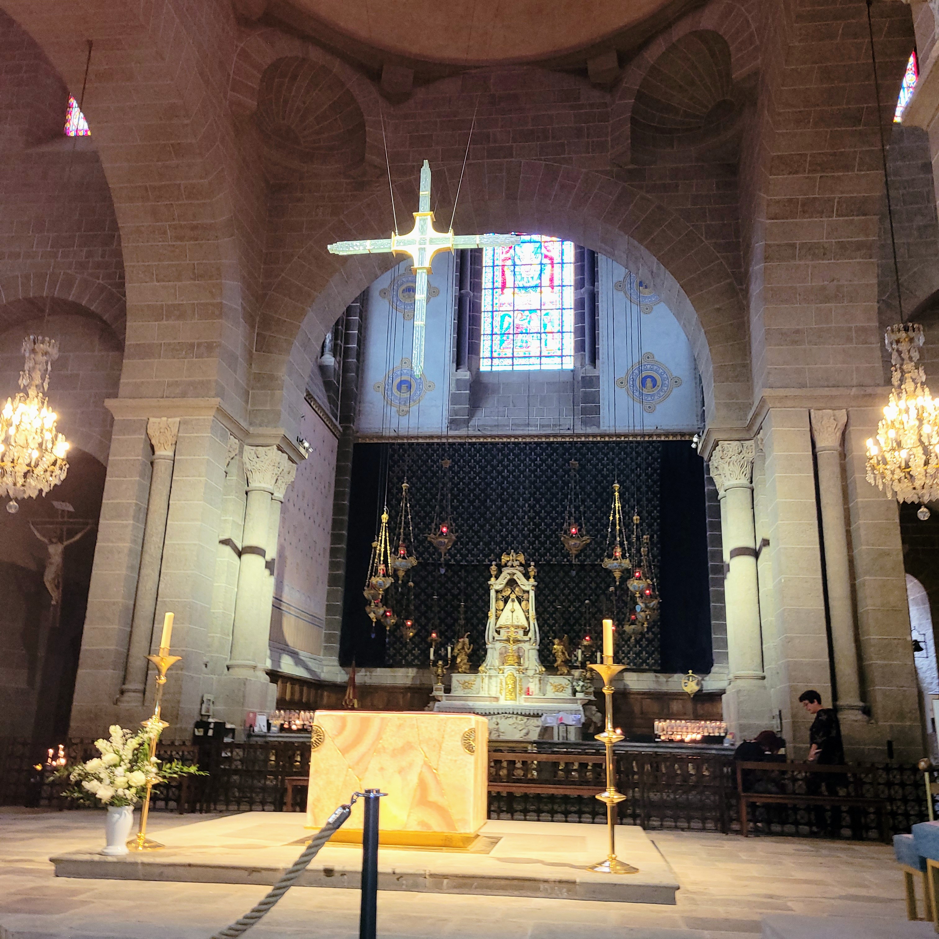 J'ai rarement été autant impressionnée par une cathédrale, je trouve sincèrement qu'elle est dans mon top 1 des plus belles cathédrales de loin ! J'ai eu la chance de la découvrir à l'envers, car certe vous pouvez arriver par l'entrée principale et la plus connue Mais aussi par l'arrière, ce sens la était plus sympa à faire je trouve Le matin lorsque les gens parlent au loin dans la rue principal on a l'impression d'entendre quelqu'un nous chuchoter à l'oreille Très très impressionnante je le répète 😊 ma plus belle visite à le puy