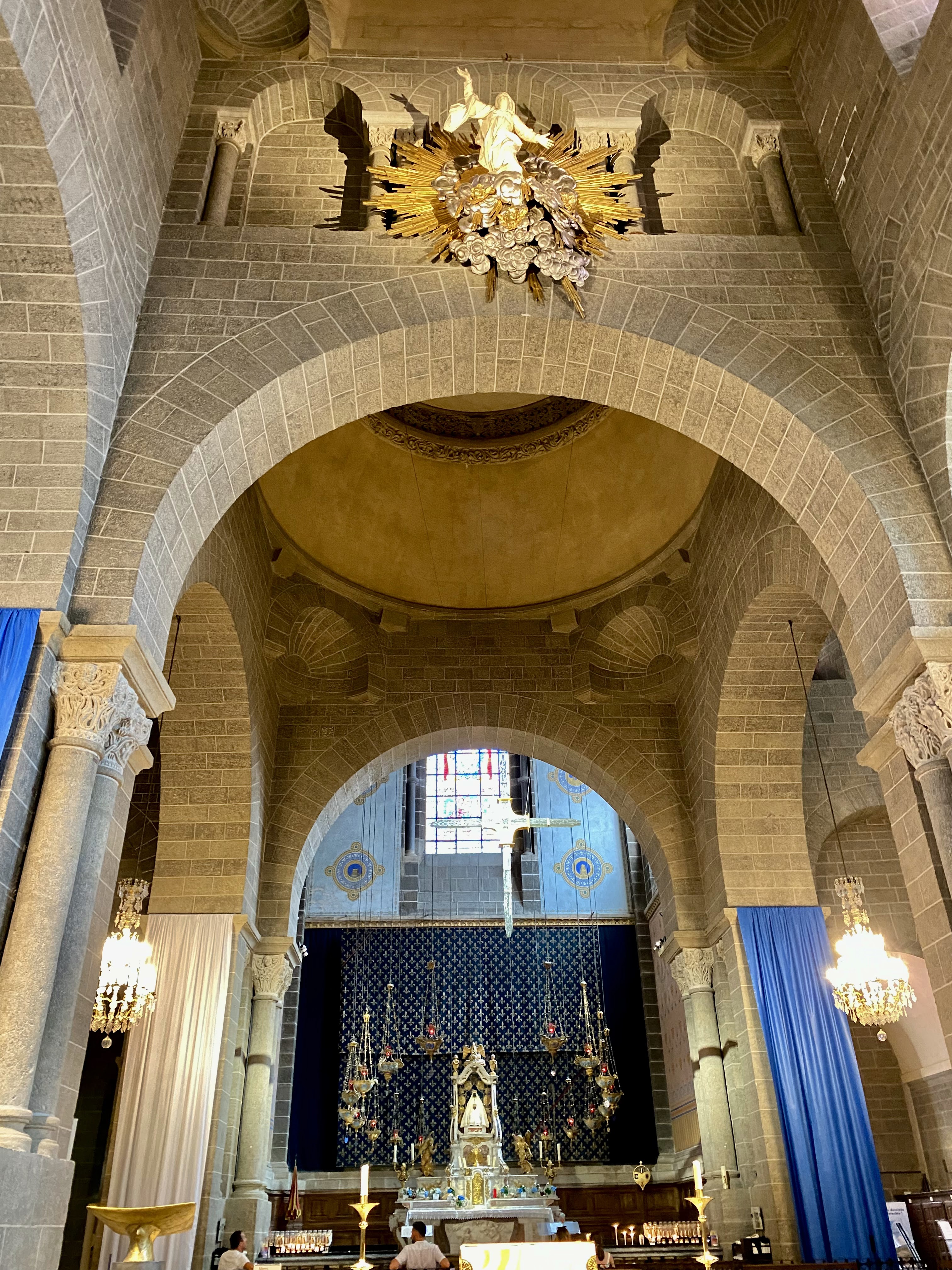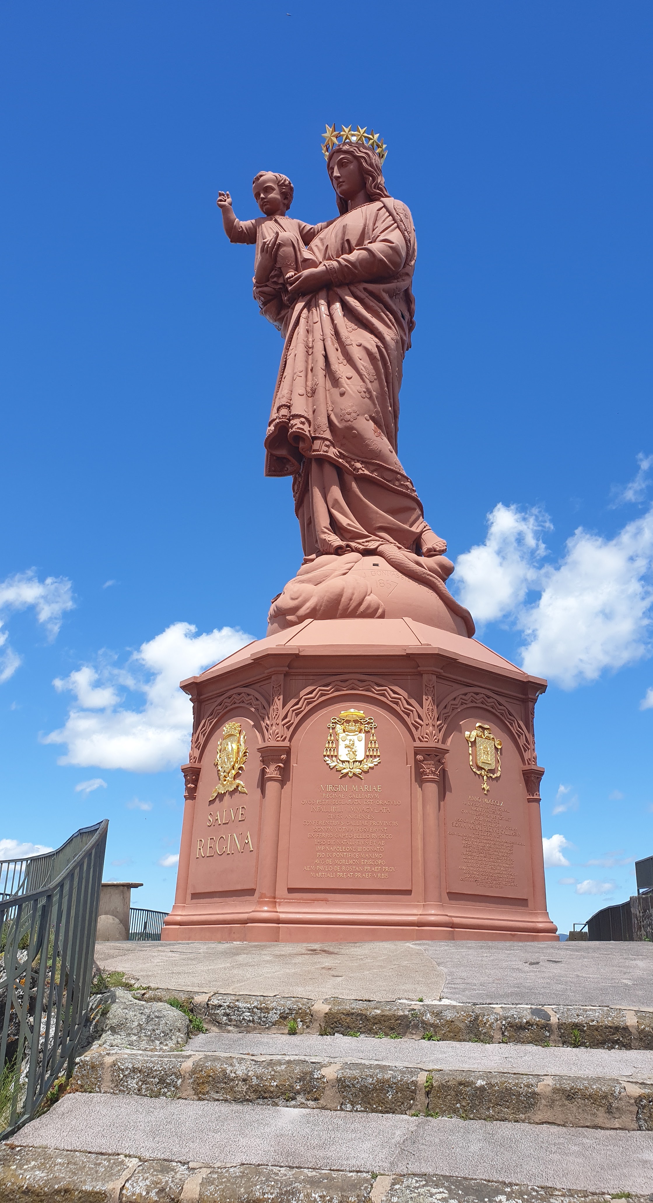 Quel monument imposant ! Érigée à la fin du XIe siècle, la cathédrale Romane se tient sur un rocher d’origine volcanique et est surmontée par la la statue de Notre-Dame de France.