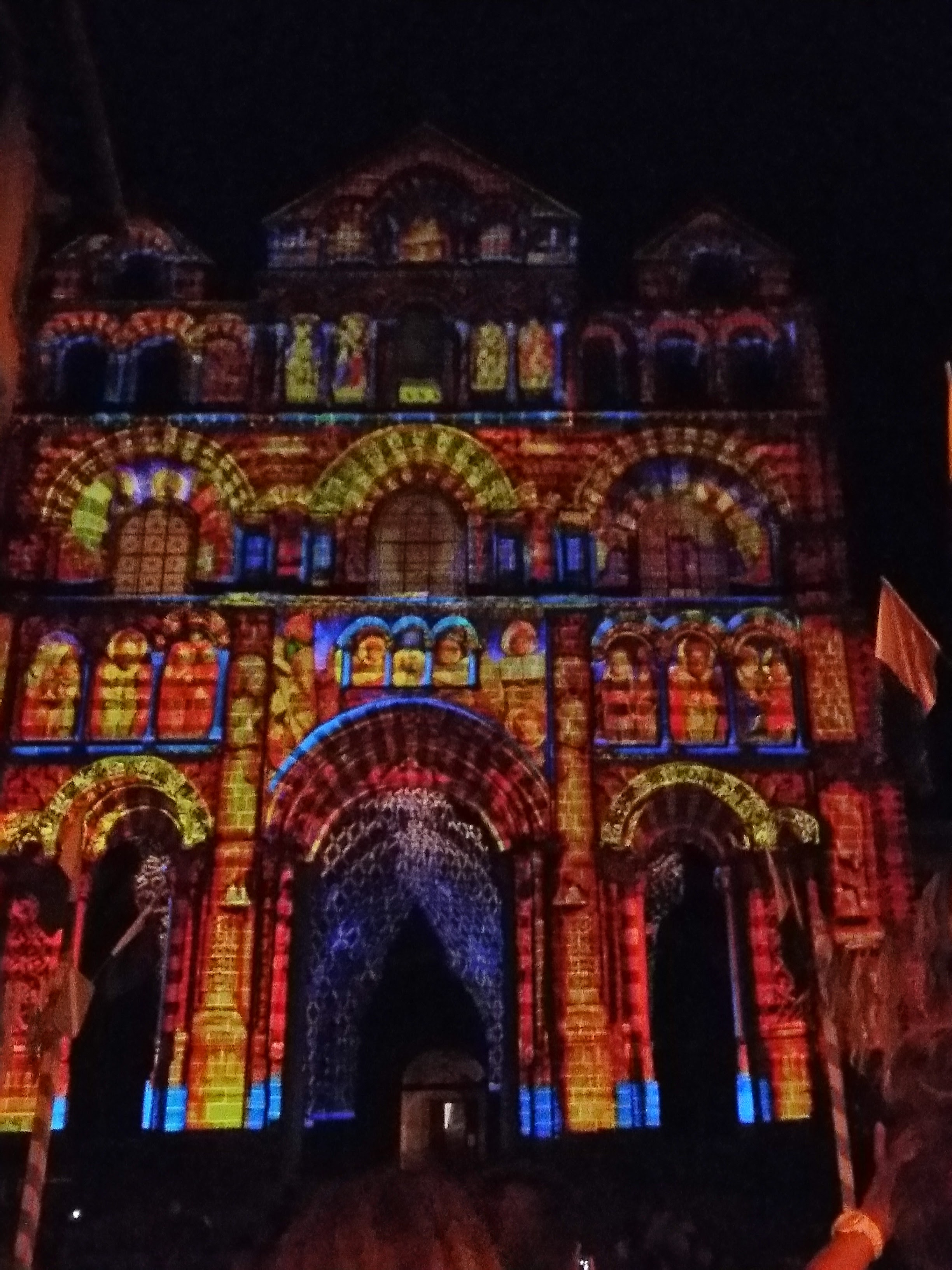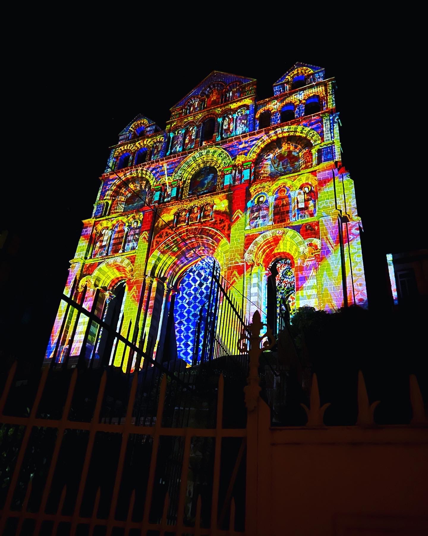 Magnifique cathédrale mise sous les projecteurs pendant le puy en lumière très beau son et lumieres