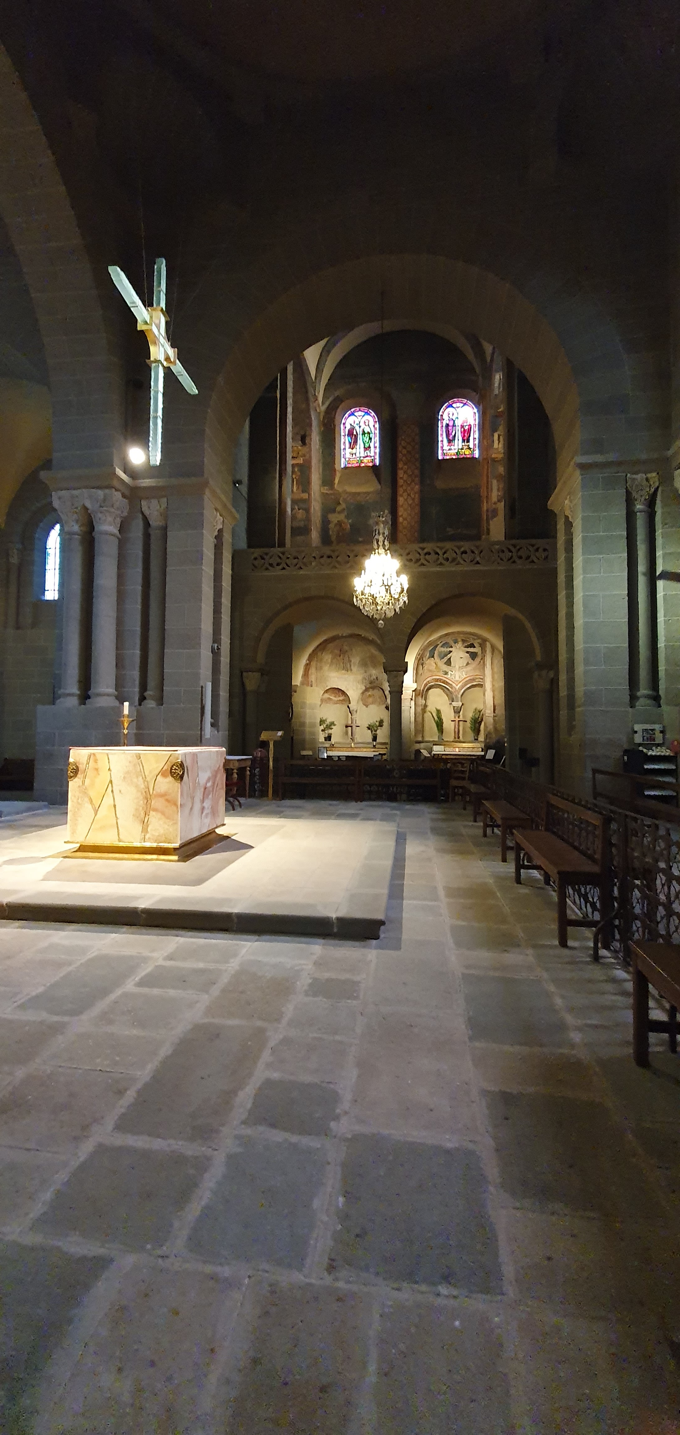 Jolie cathédrale romane , Pour le départ deSt Jacques de Compostelle très différentes des cathédrales Gothiques beaucoup plus répandue en France, par contre pour y accéderbonjour les escaliers !!