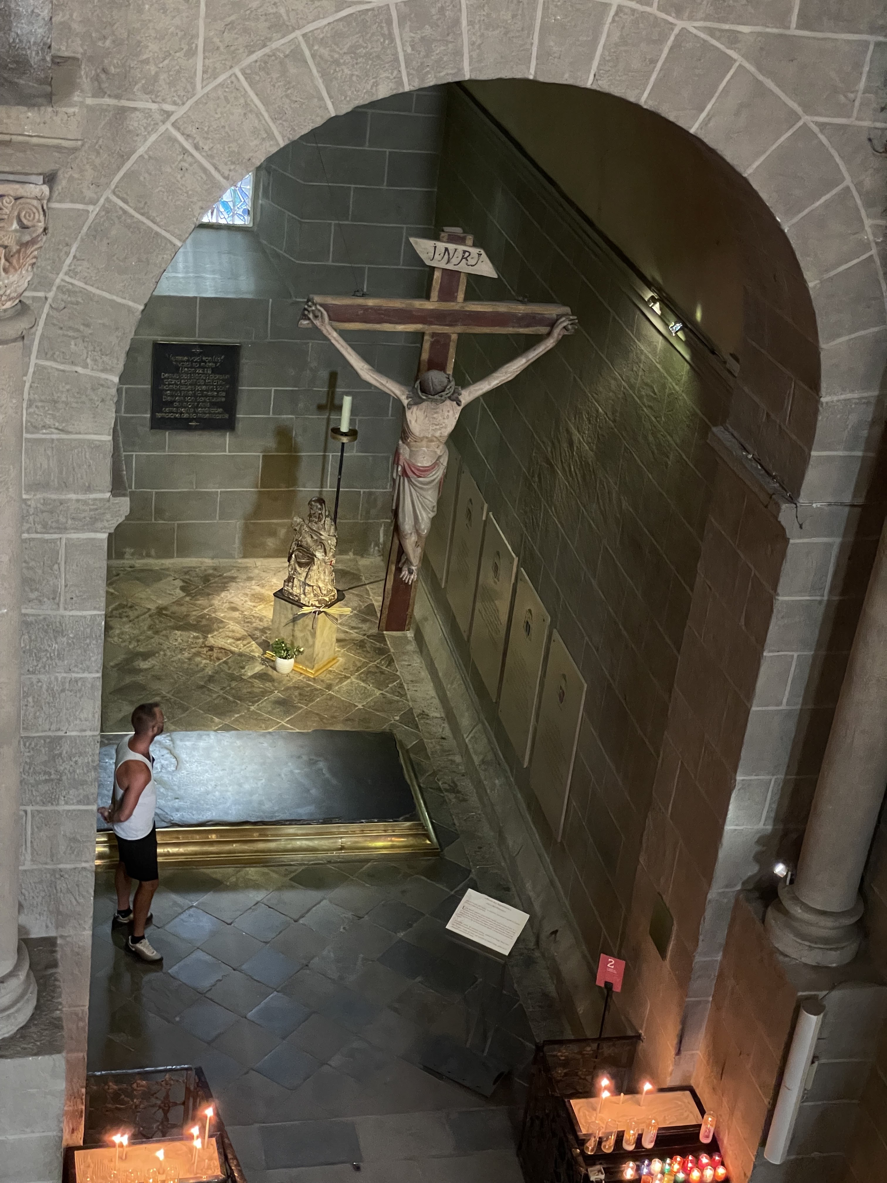 C'est très sombre et quelle volée de marches pour y arriver... mais la cathédrale vaut cet effort. Dommage qu'il y ai une petite partie des escaliers qui soient sans rampe d'accès car surtout après avoir déjà grimper plusieurs marches, c'est une zone difficile pour les personnes fatiguées. Conseil pour la descente, prendre par les rues depuis la sortie haute, à gauche du choeur (et qui permet de voir la vierge et d'autres bâtiments intéressants - cf photos)