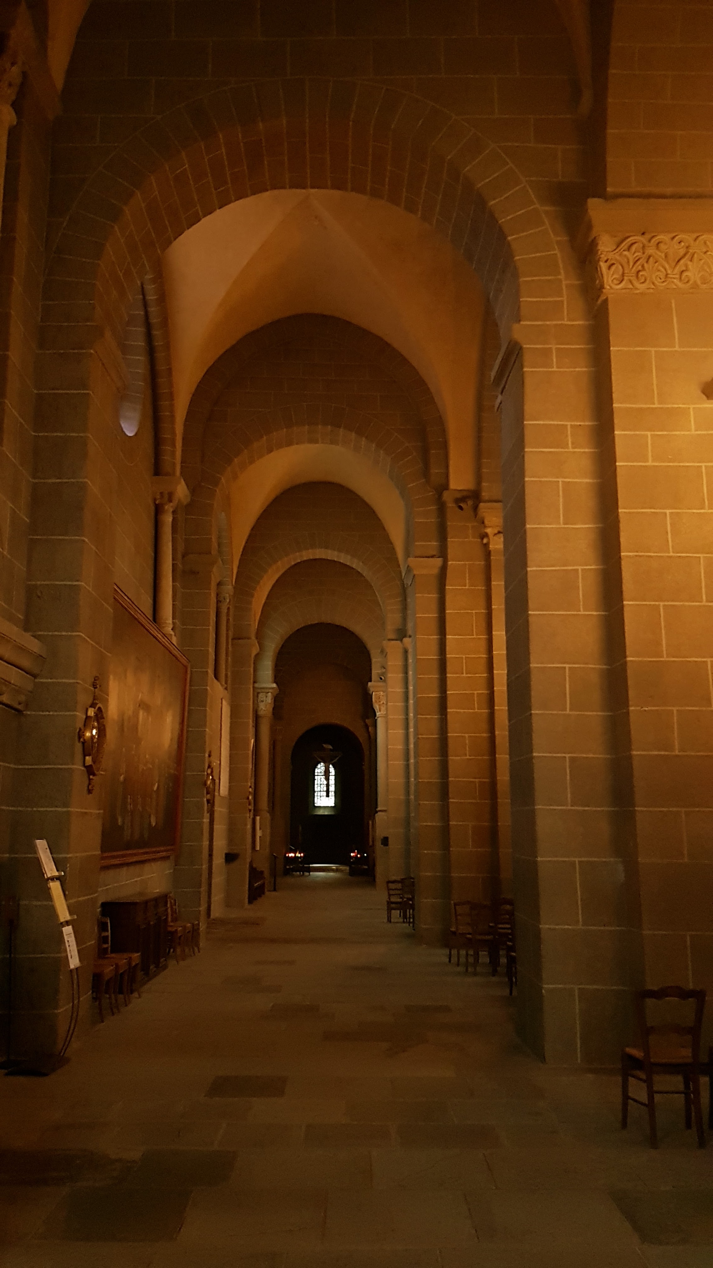 Unique en son genre, point de départ des pèlerins vers Compostelle, l’escalier central débouche en plein centre de l’édifice. Pour les personnes réceptives, la pierre des fièvres mérite que l’on se couche dessus…