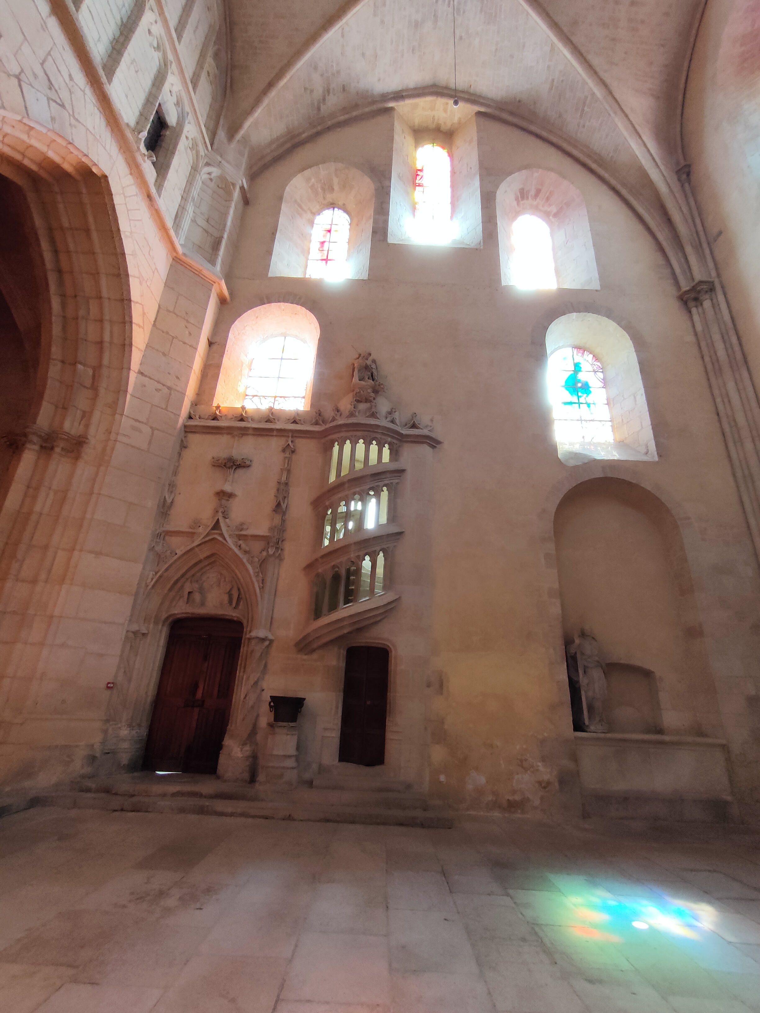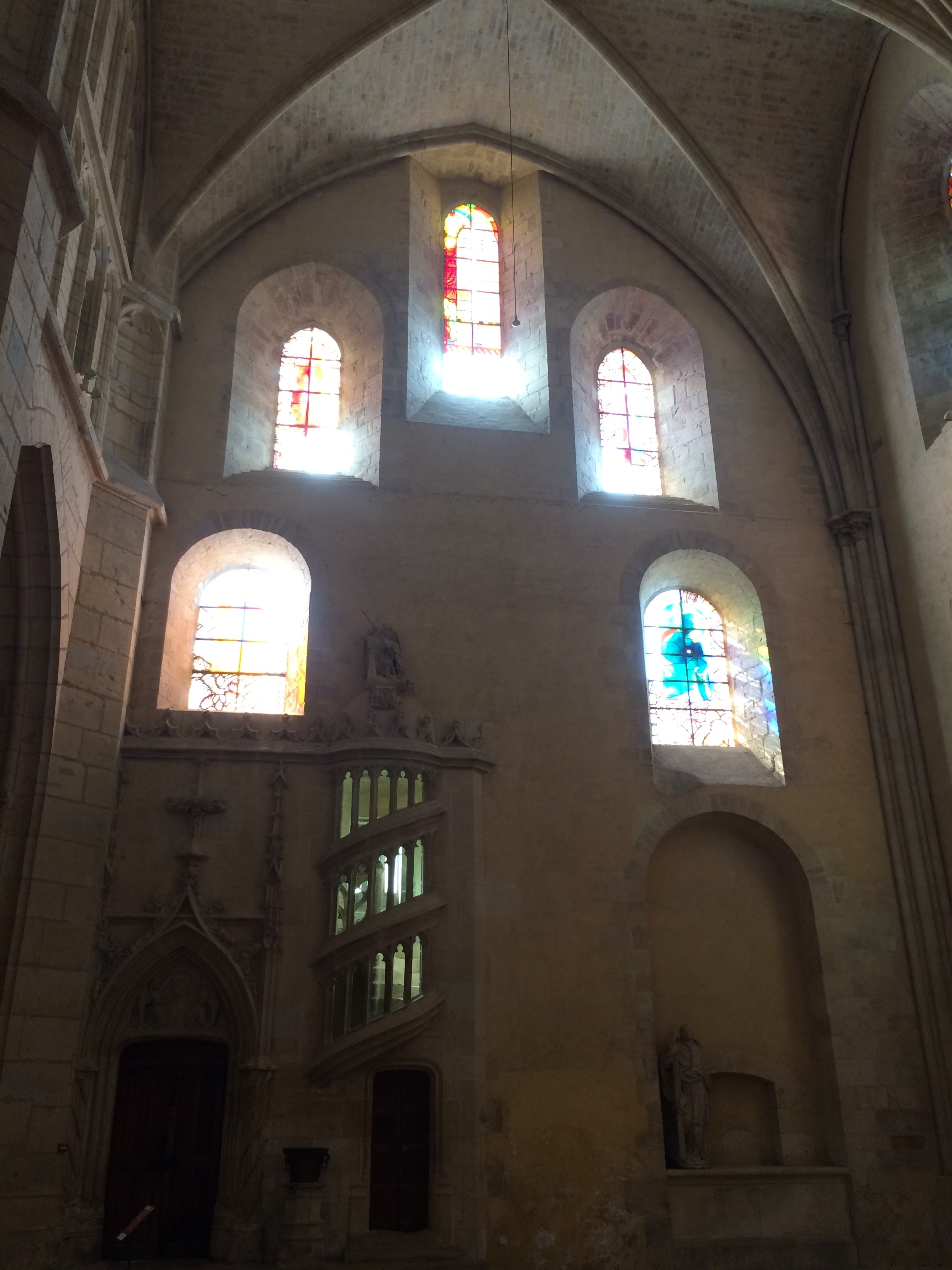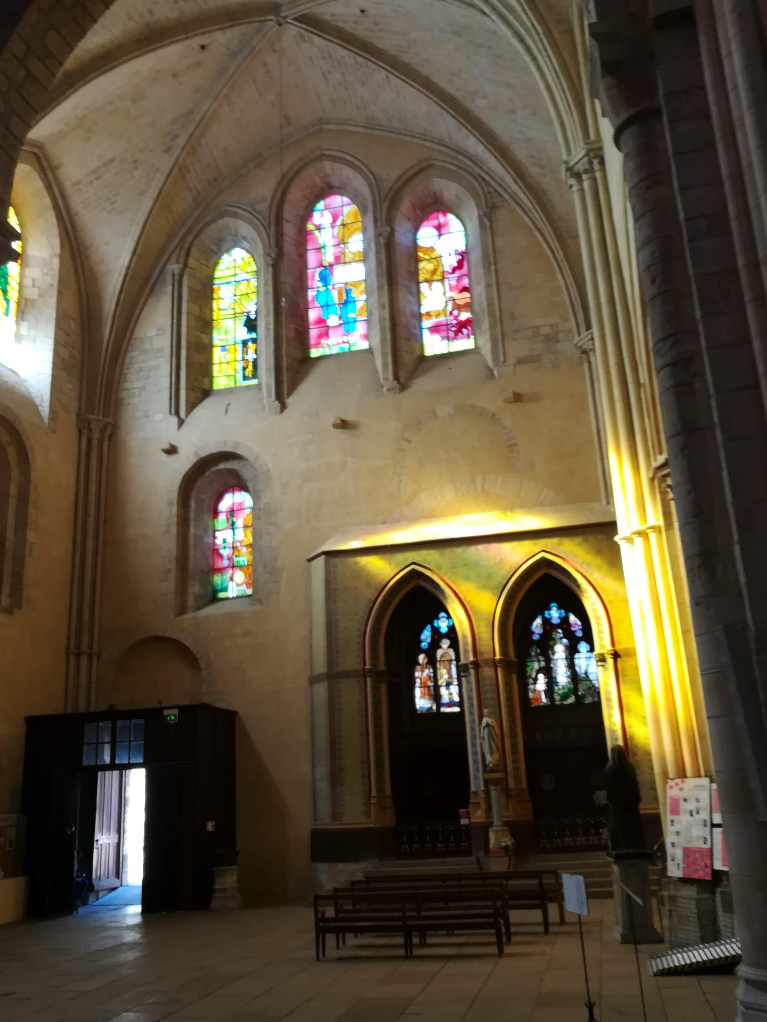 Edifice à la fois gothique et roman, la lumière est magnifique. Les vitraux y sont pour beaucoup ! A voir absolument.