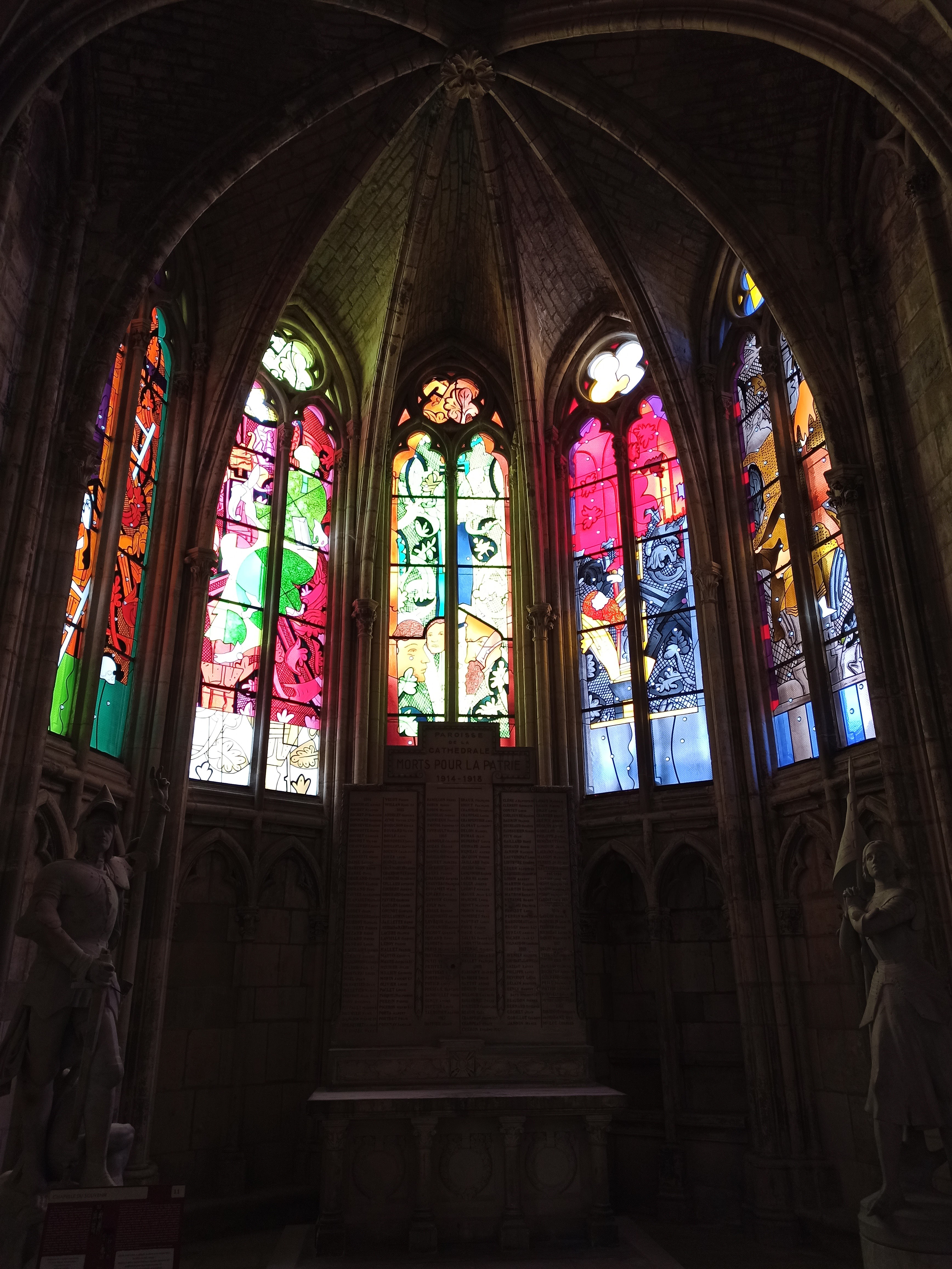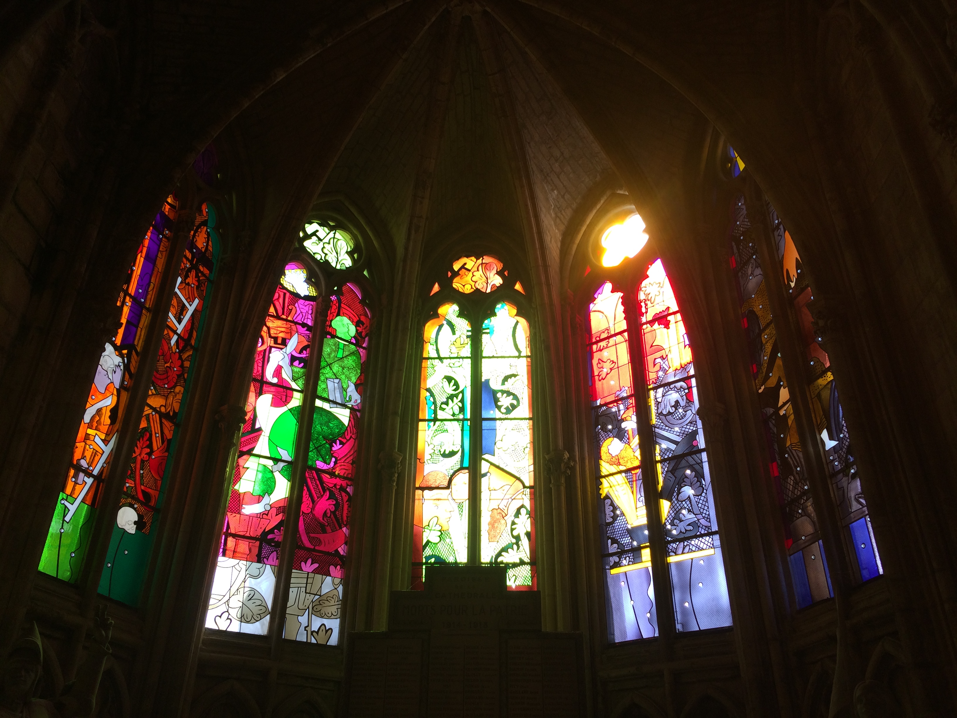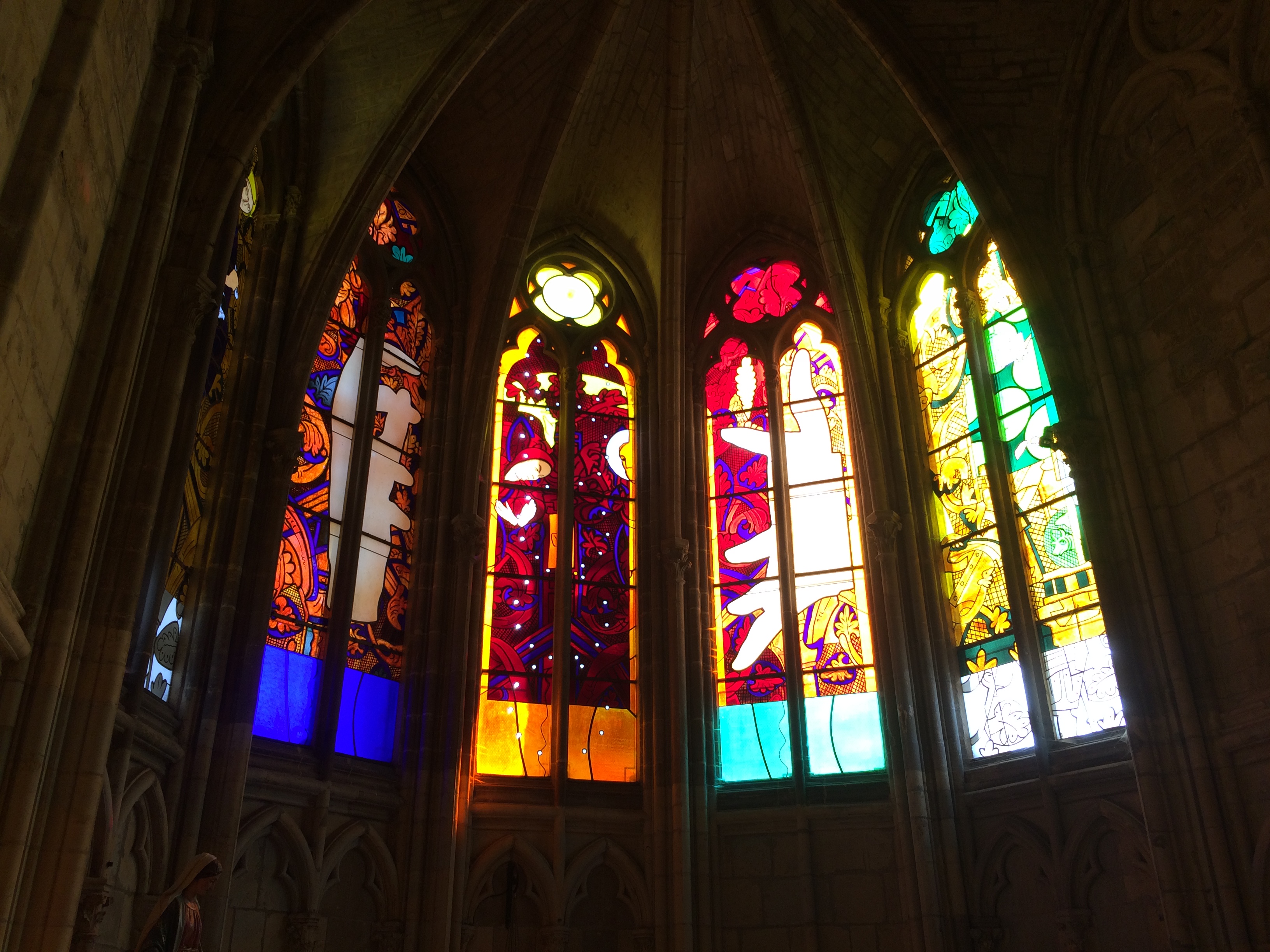 Belle Cathédrale, malgré les échafaudages qui voilent une bonne partie de sa façade. En revanche les vitraux réalisés par des artistes contemporains sont tout bonnement époustouflants. Cela vaut le détour.