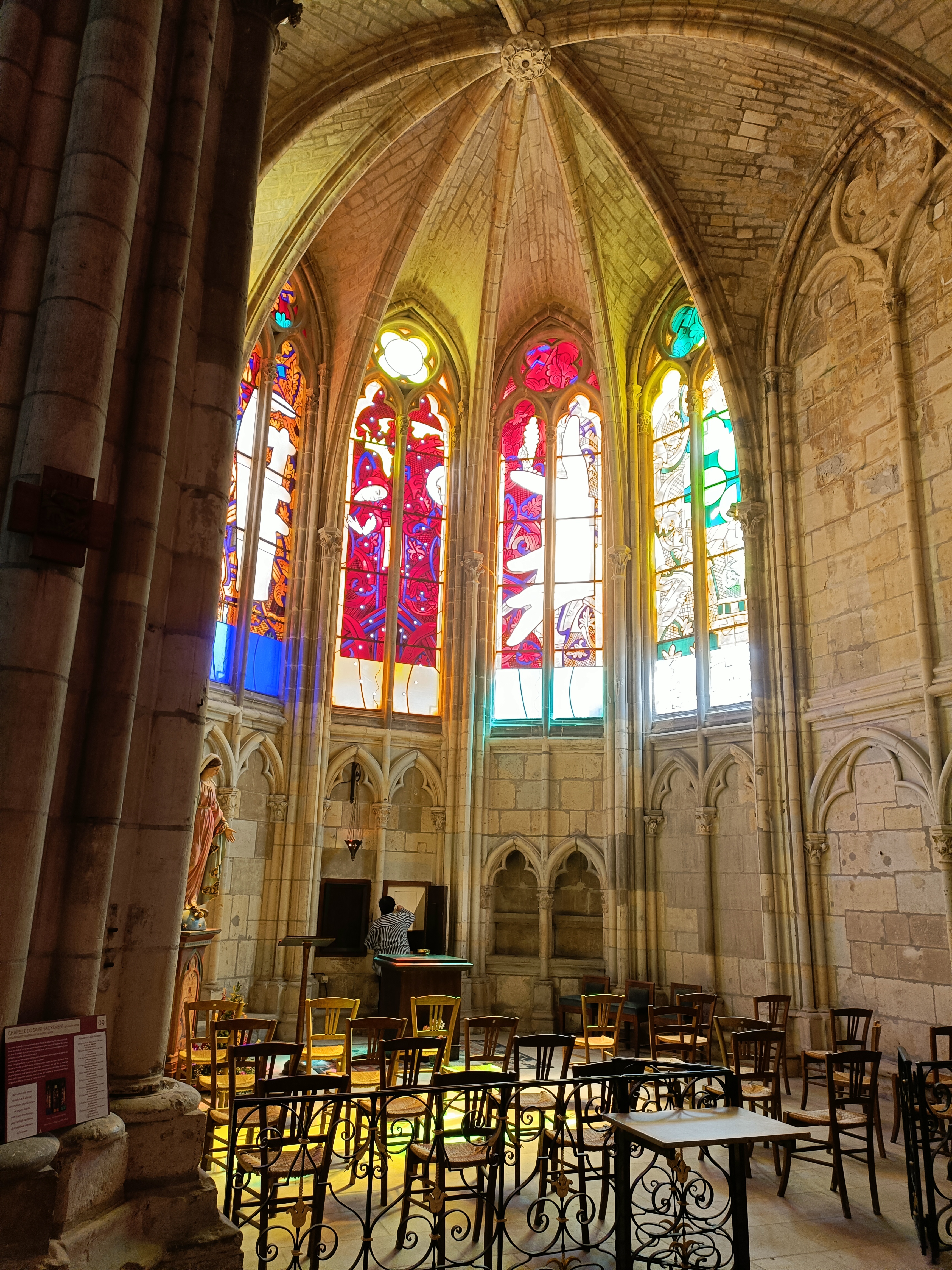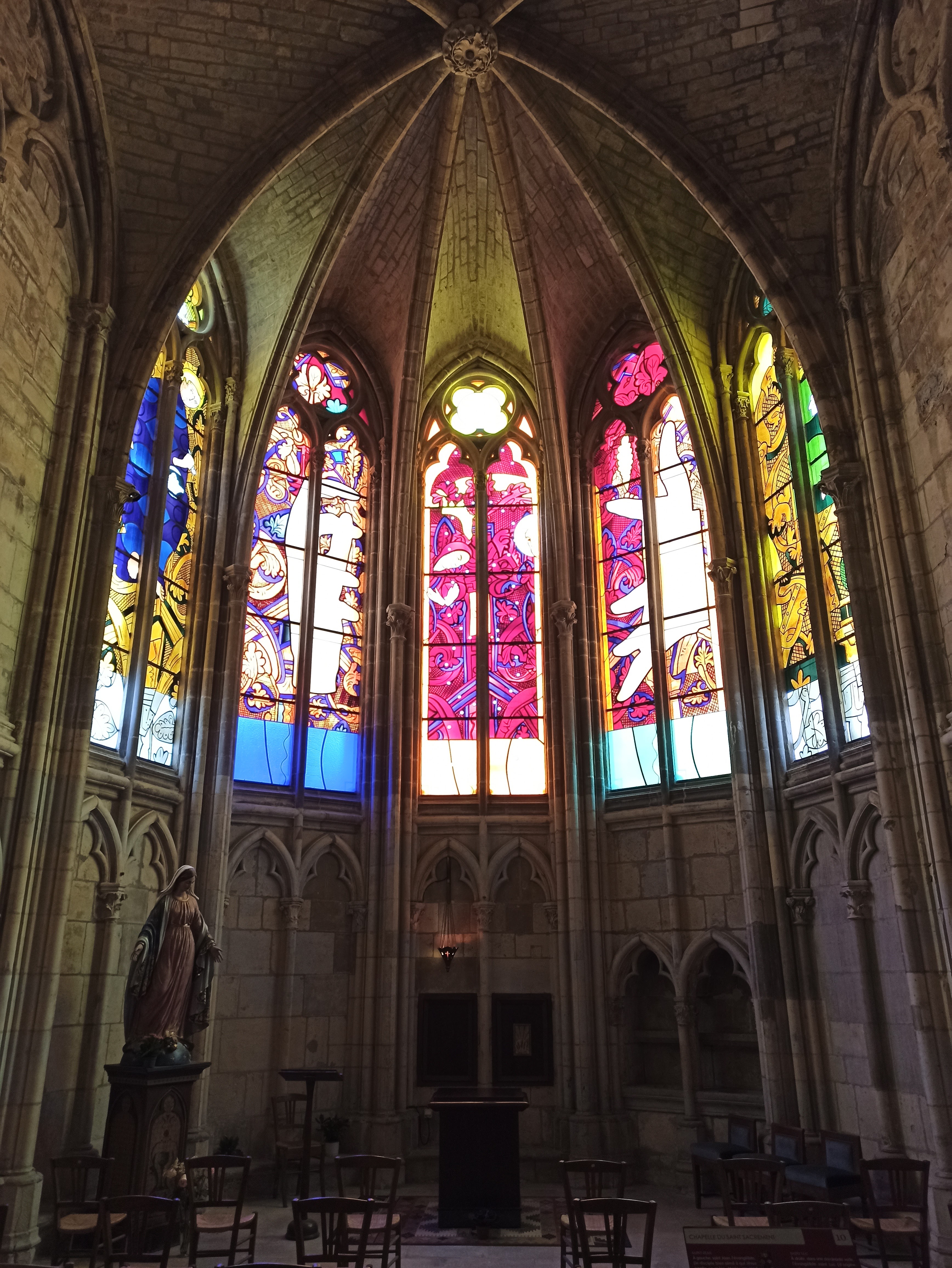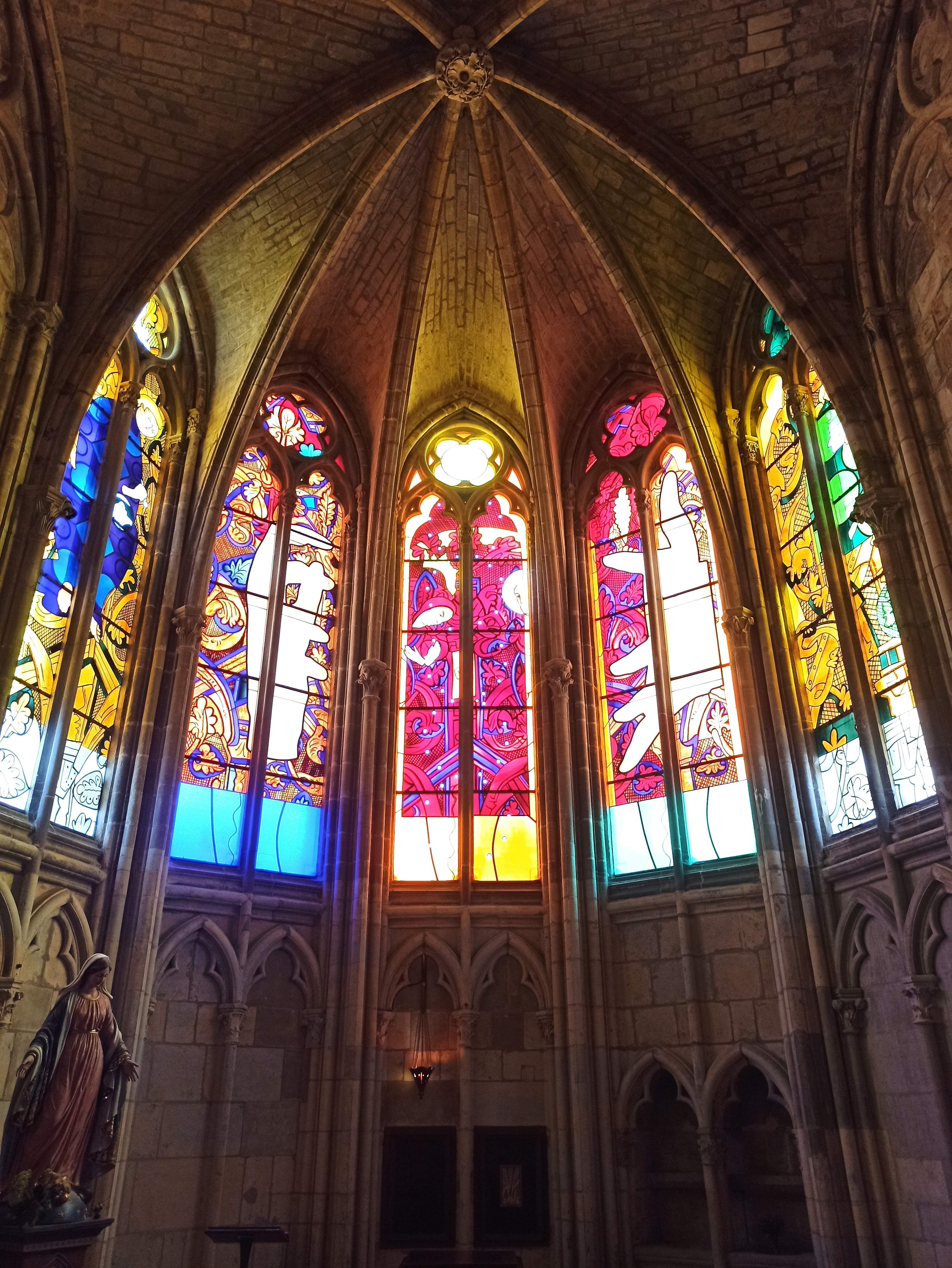 Belle Cathédrale, malgré les échafaudages qui voilent une bonne partie de sa façade. En revanche les vitraux réalisés par des artistes contemporains sont tout bonnement époustouflants. Cela vaut le détour.