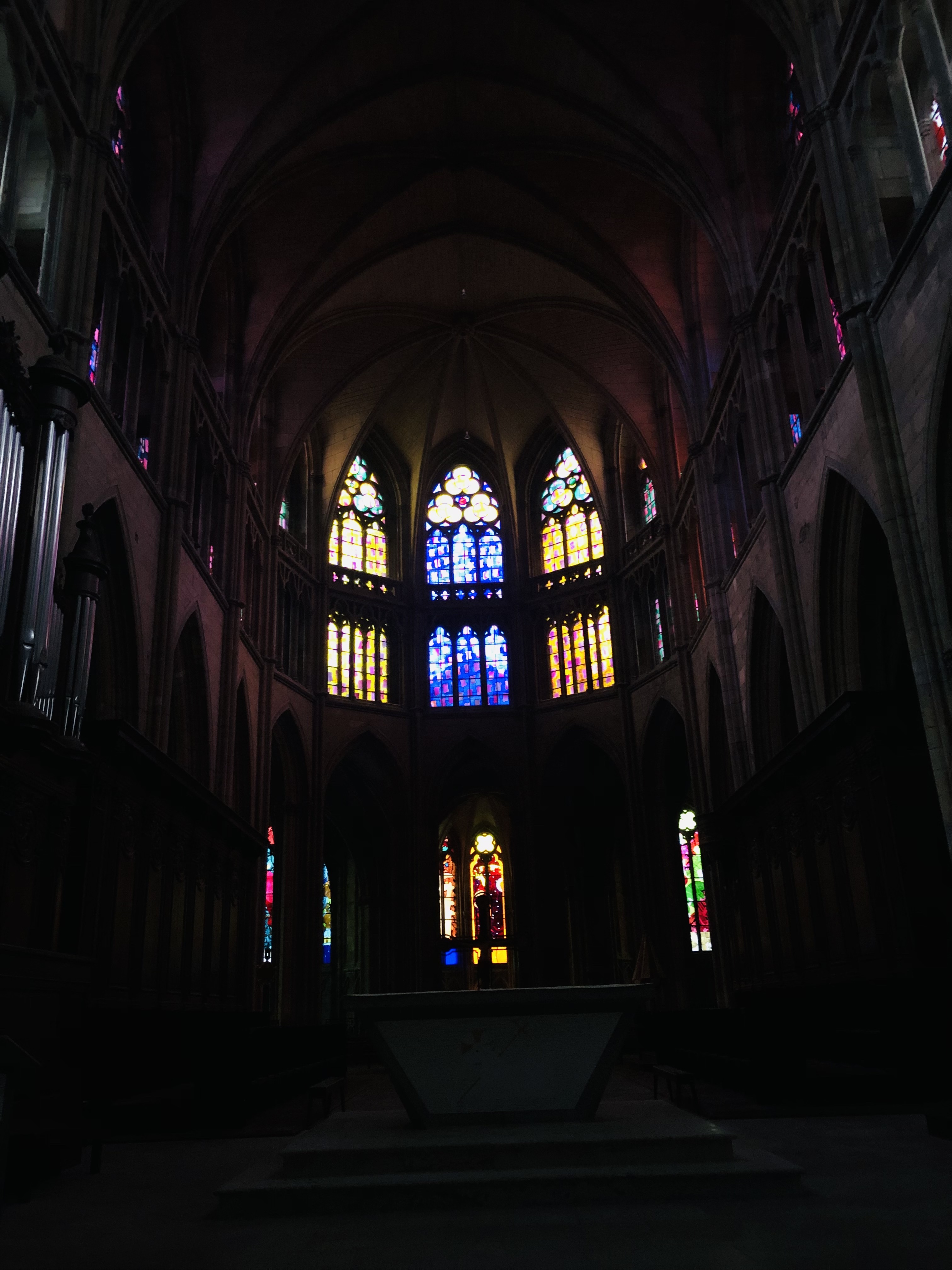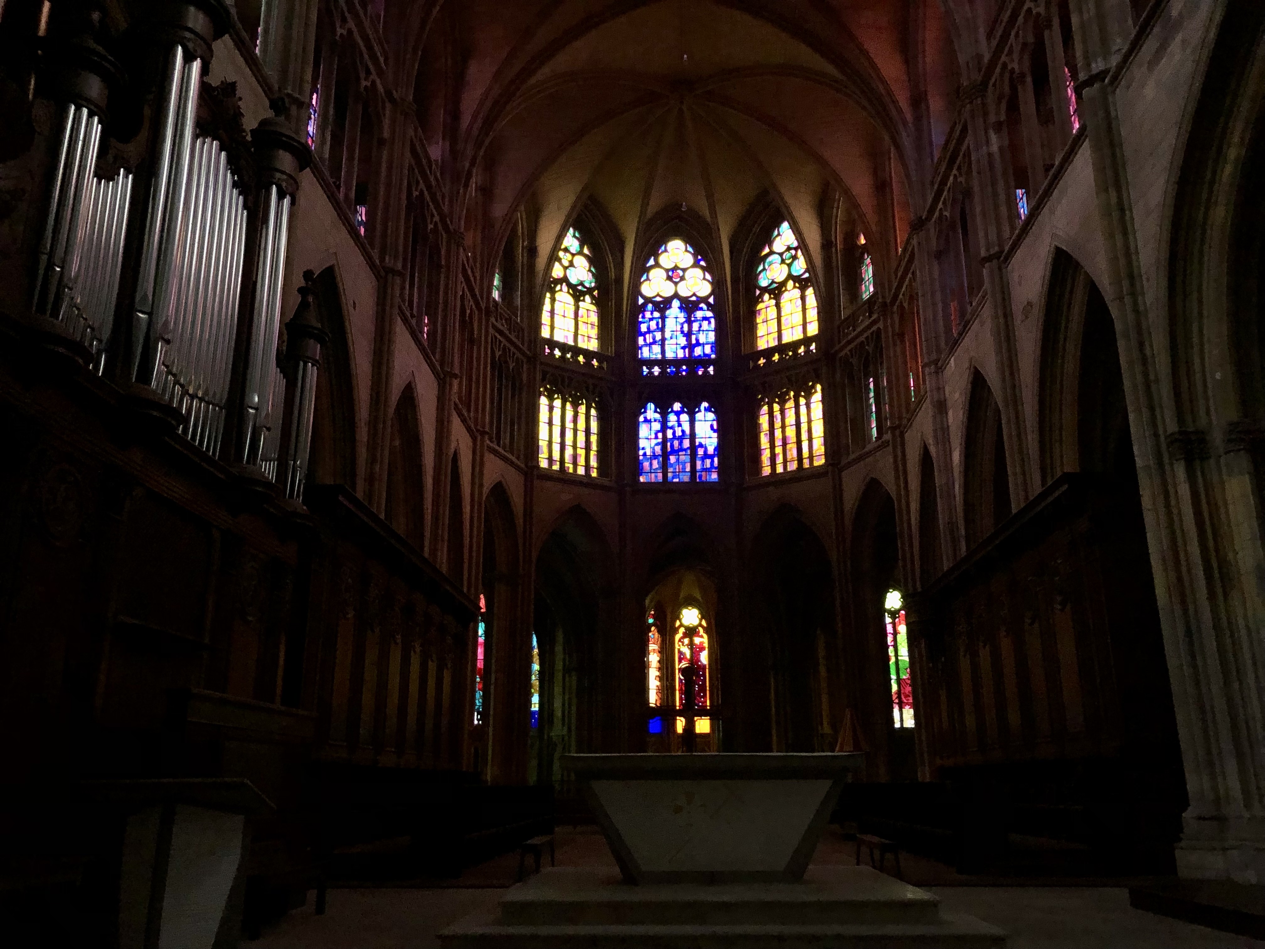 La lumière du soleil traverse les vitraux de la cathédrale c,est magnifique,le lieu est très apaisant,on y trouve la paix.