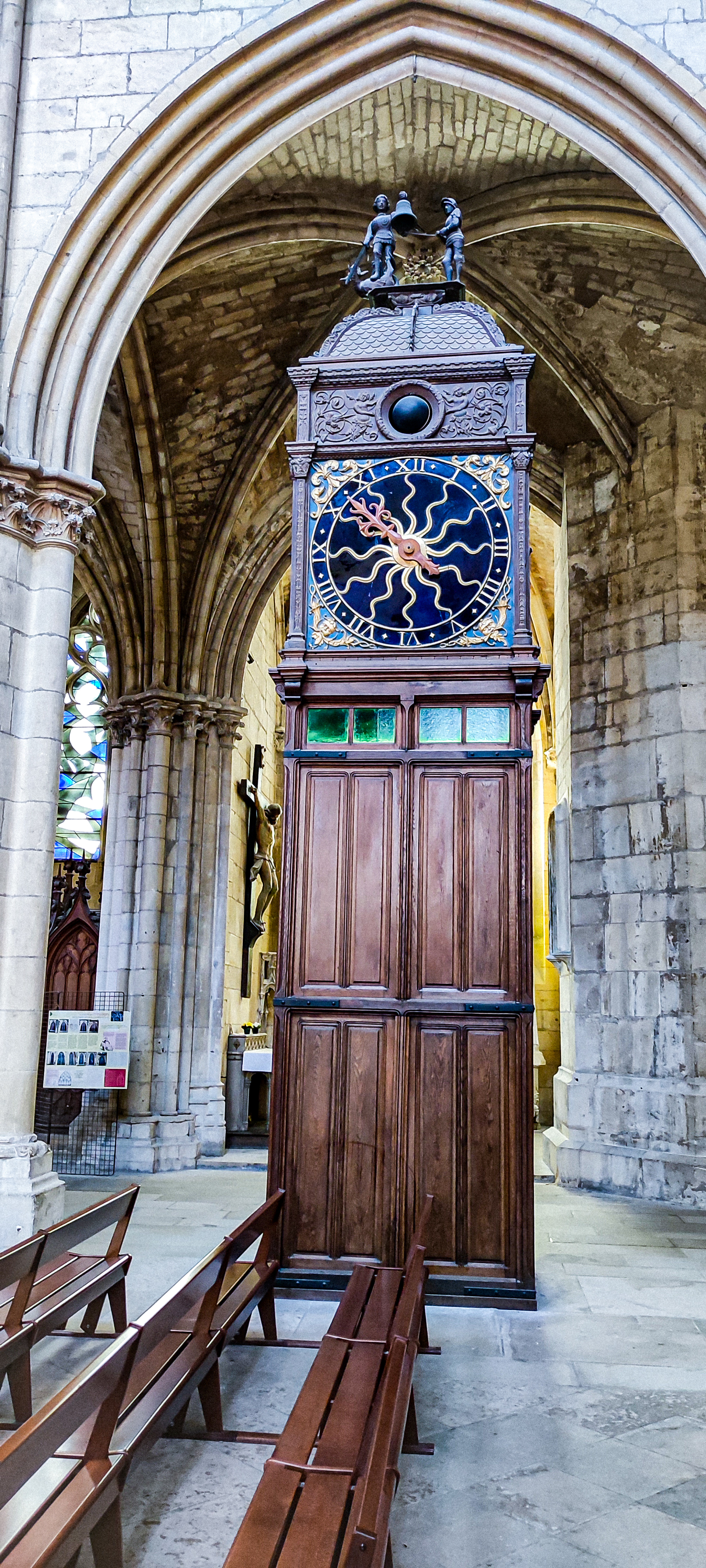 Superbes vitraux qui nimbent la Cathédrale de voiles de couleurs...mettant en valeur, Sainte Julitte et Saint Cyr ... L'Horloge de la Nef martèle l'heure grâce aux automates de la pendule ... mais ...C'est le son des cloches de la Tour de la Cathédrale qui indique l'heure à tous les Neversois ...