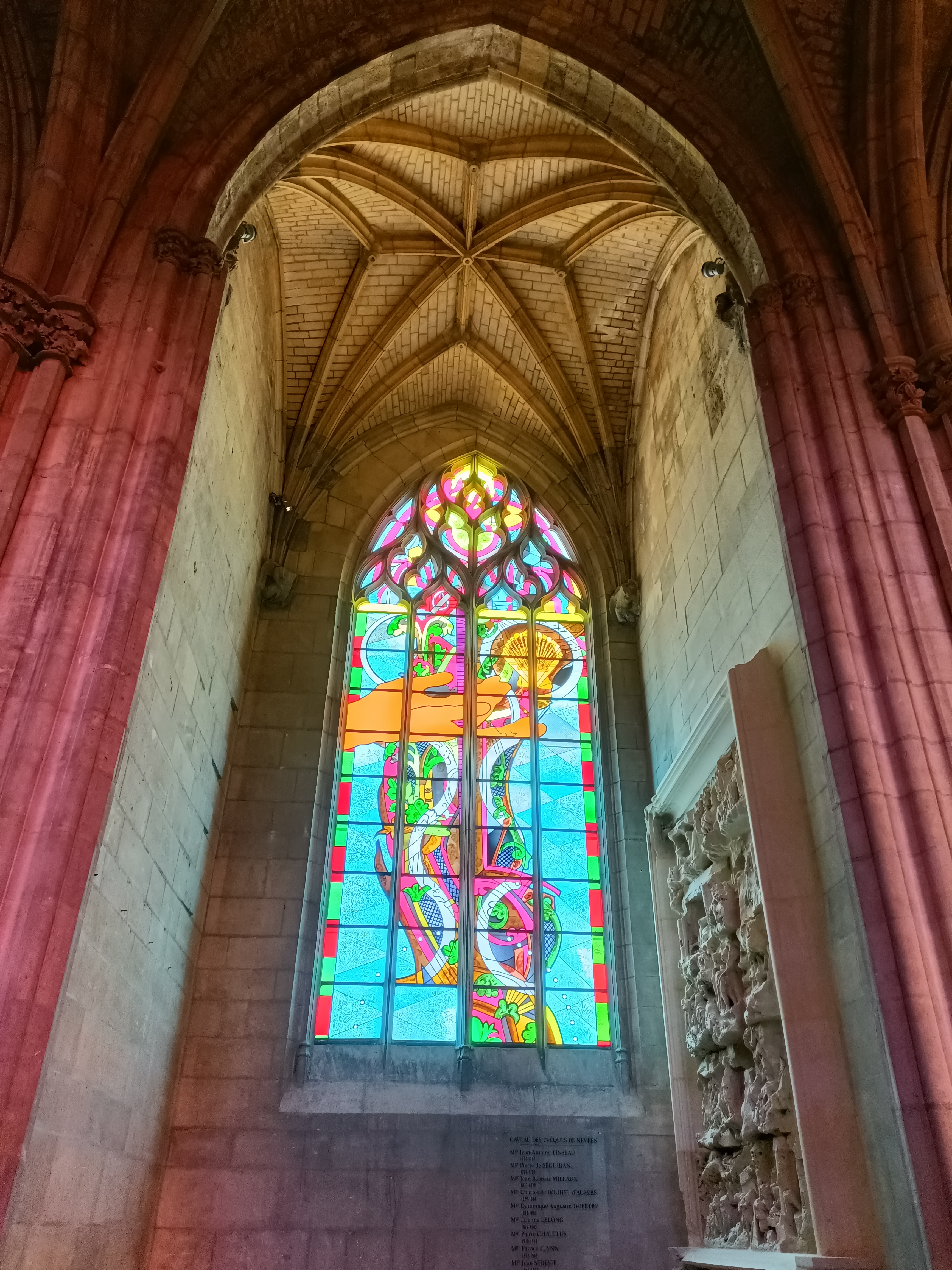 Mon lieu incontournable de ressourcement à chaque passage à Nevers. Les lumières passant au travers de ses vitraux contemporains sont justes magiques... La vue depuis la tour est à couper le souffle, baptistère incroyable. Bref allez y !