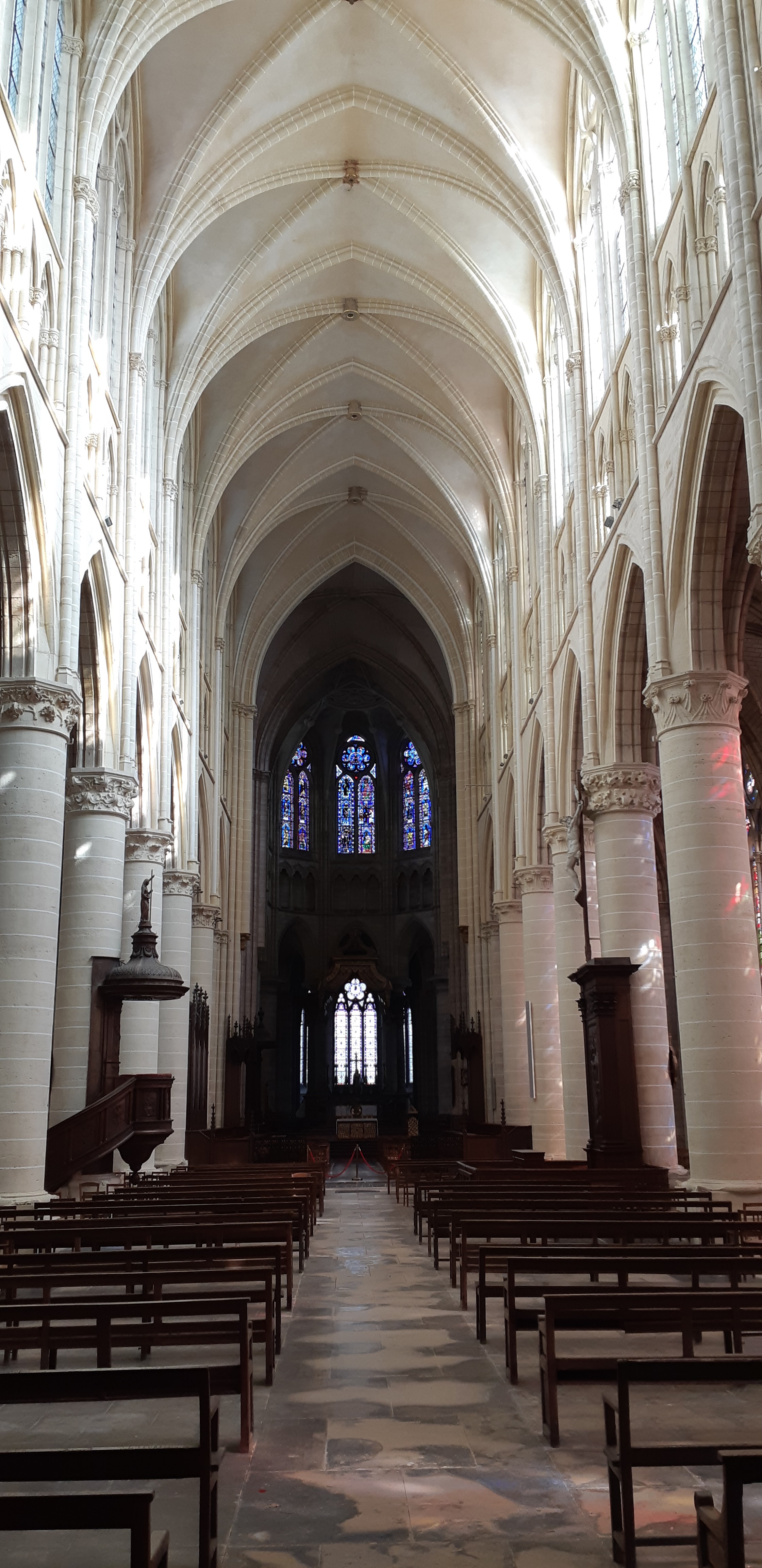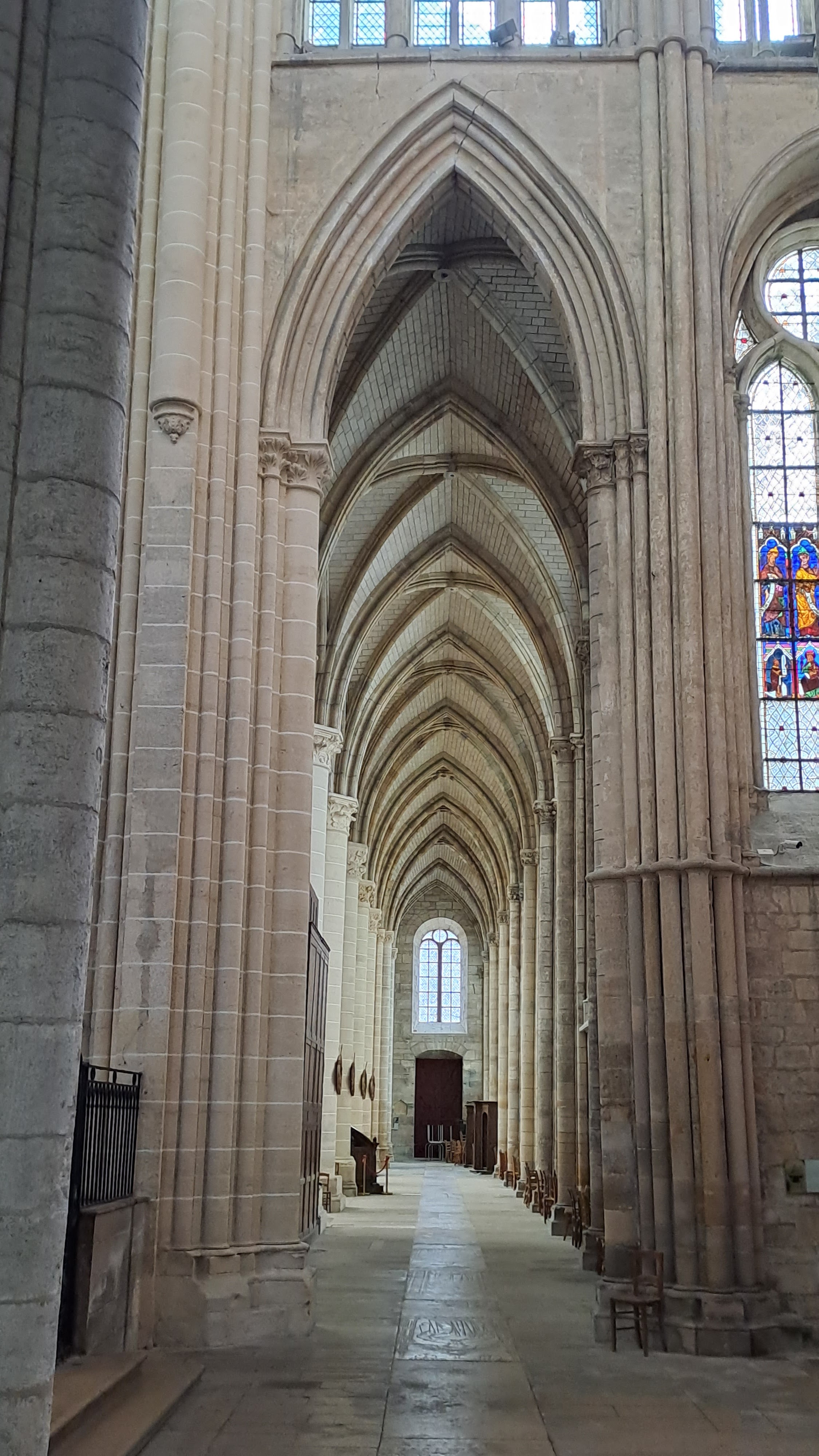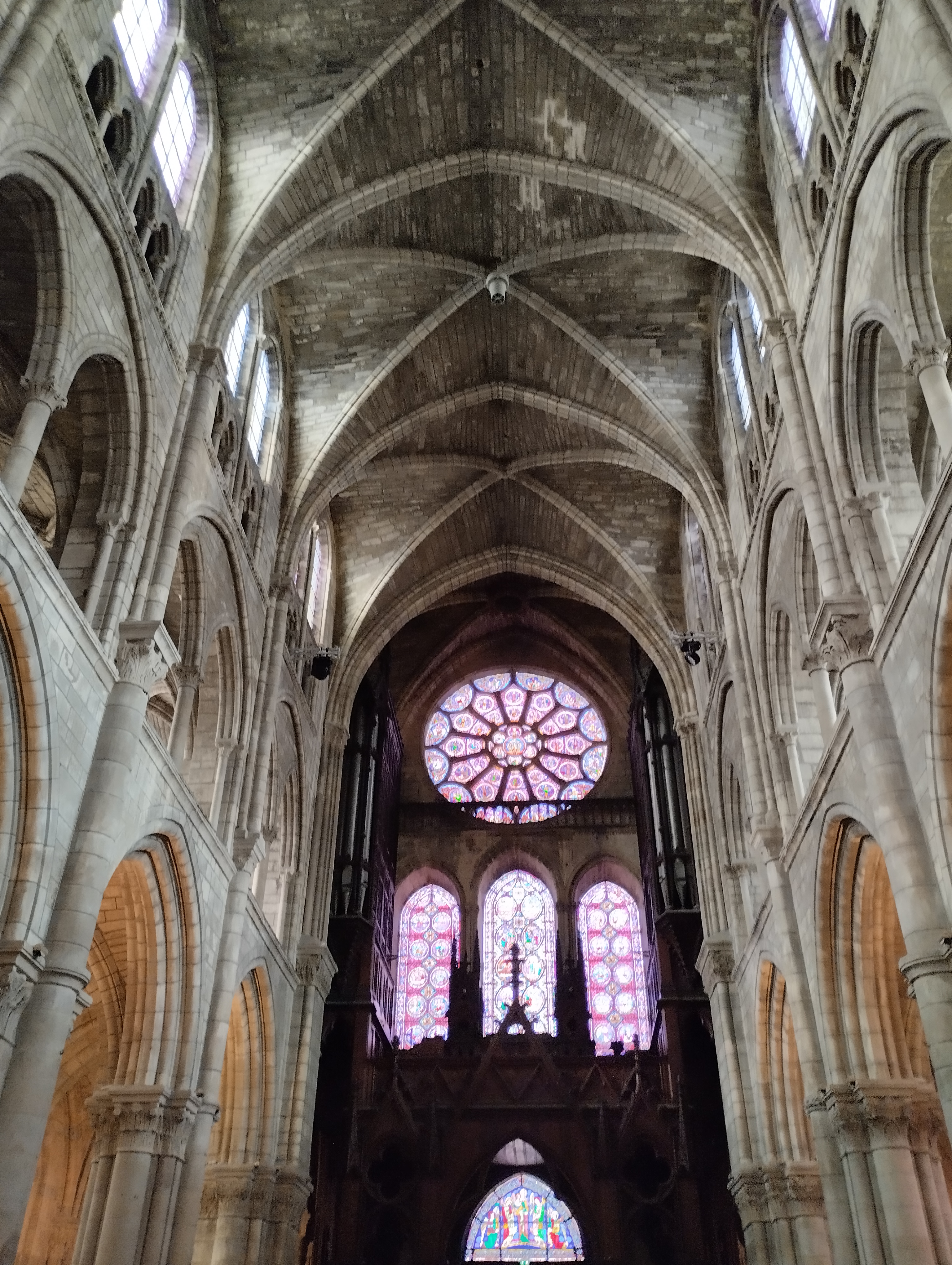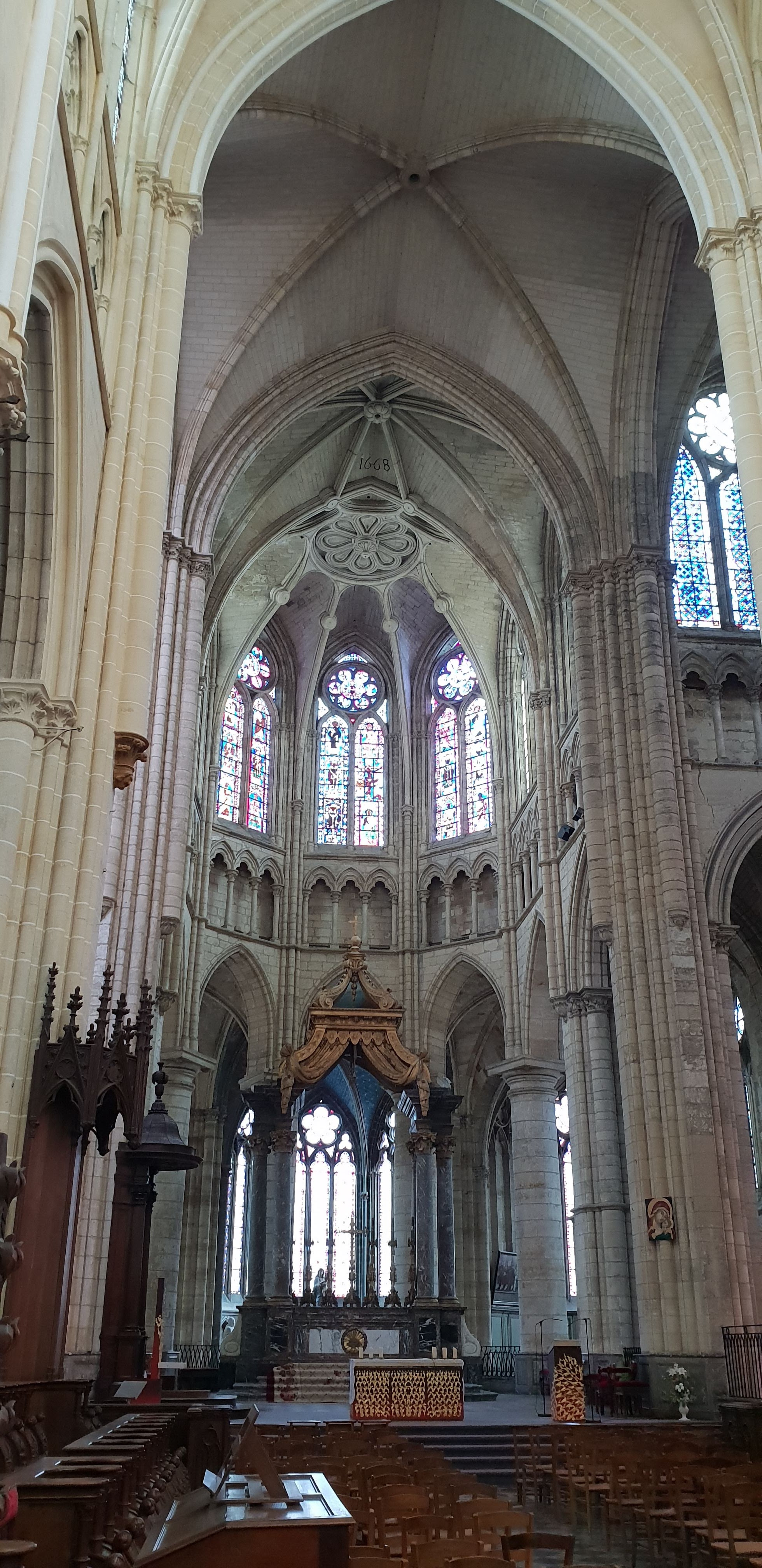 Entrez et la bouche se déforme d’étonnement. Nef incroyablement haute. Gothique pur. 1668 est gravé à côté d'une rosace simple mais artistique dans la voûte croisée du plafond. Pour nous, c'était une visite fortuite de passage. La France possède vraiment de nombreuses cathédrales gothiques bien conservées. Néanmoins, cela m'a particulièrement surpris et touché.