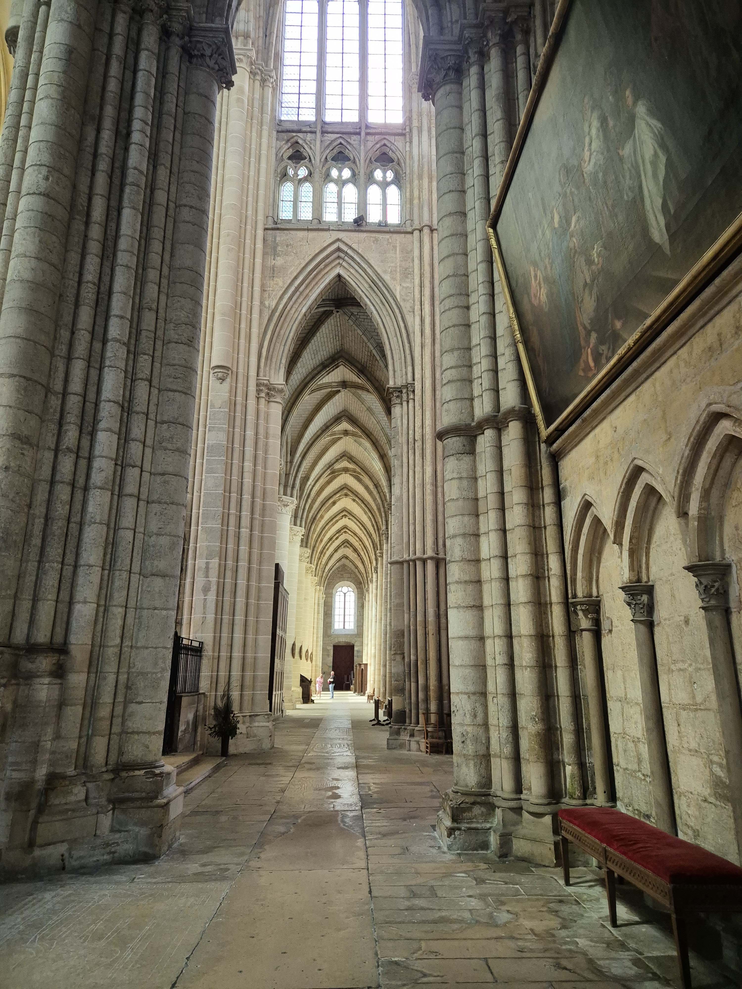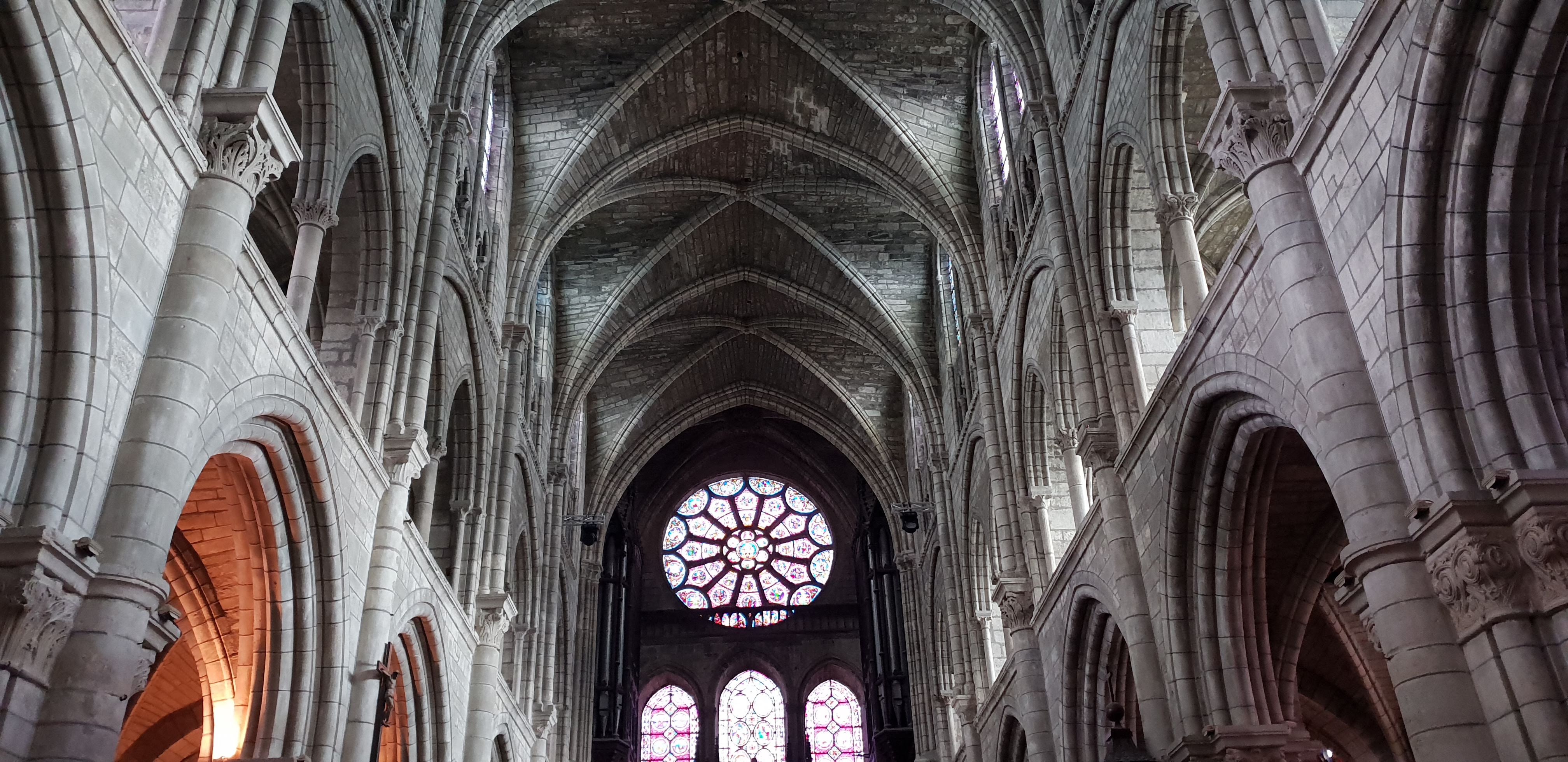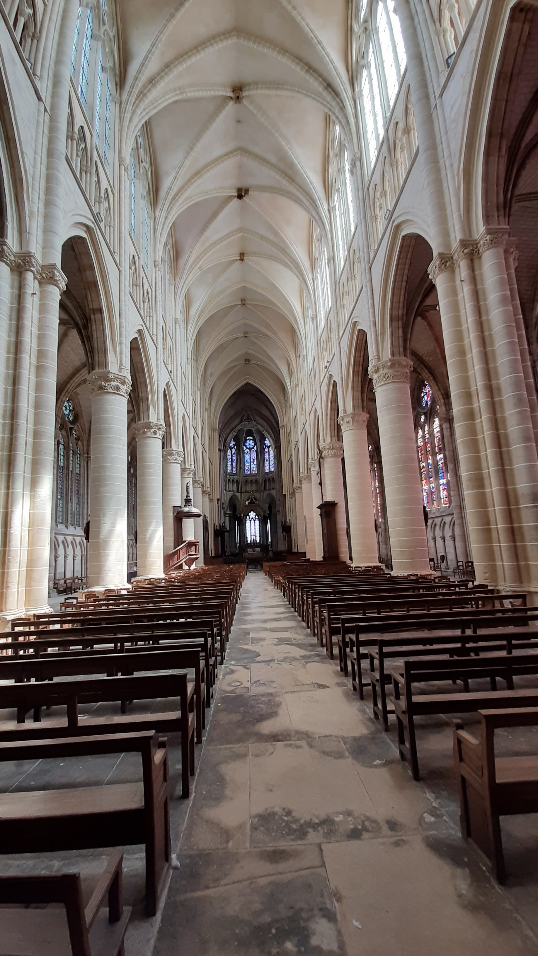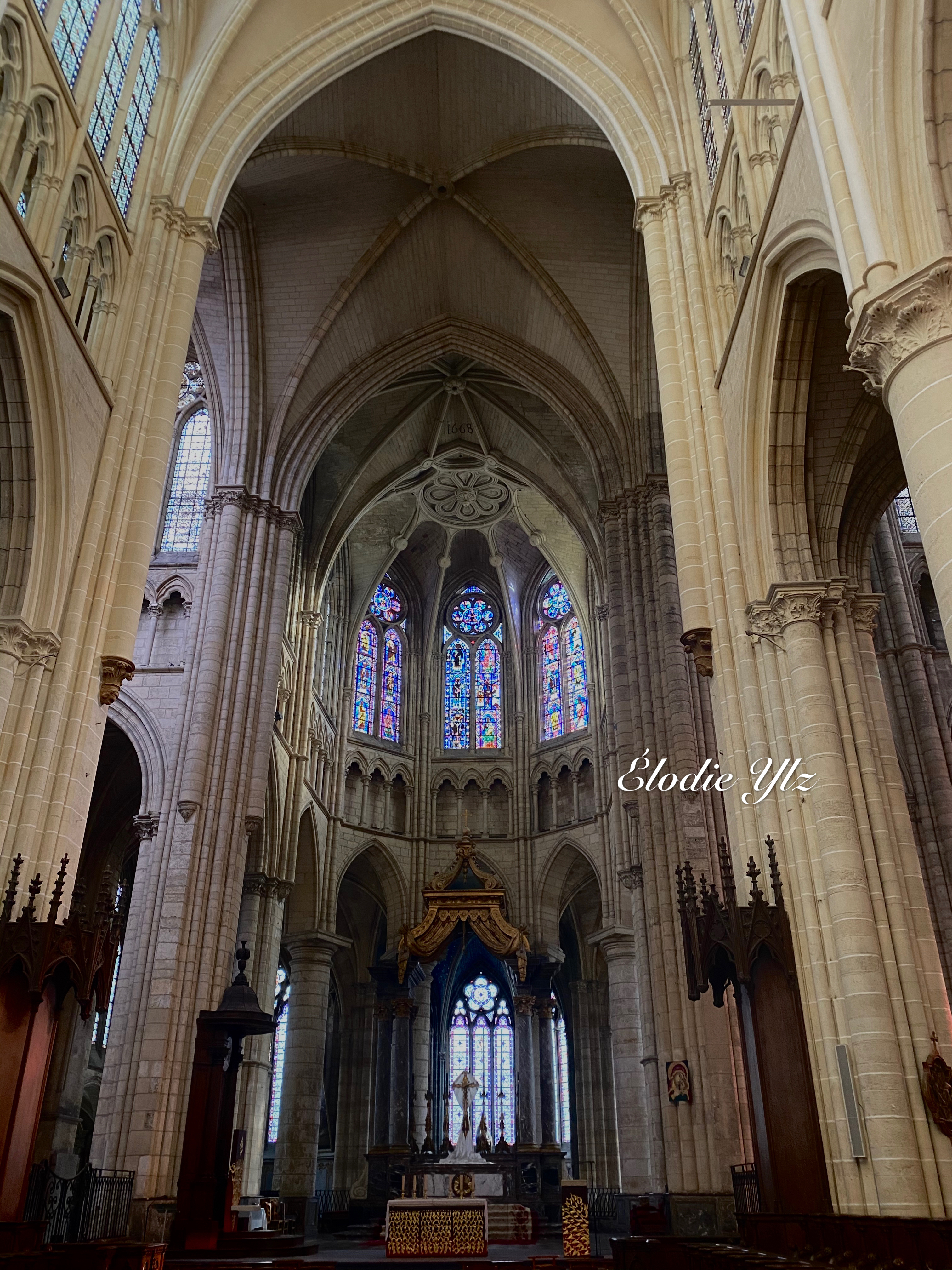 Entrez et la bouche se déforme d’étonnement. Nef incroyablement haute. Gothique pur. 1668 est gravé à côté d'une rosace simple mais artistique dans la voûte croisée du plafond. Pour nous, c'était une visite fortuite de passage. La France possède vraiment de nombreuses cathédrales gothiques bien conservées. Néanmoins, cela m'a particulièrement surpris et touché.
