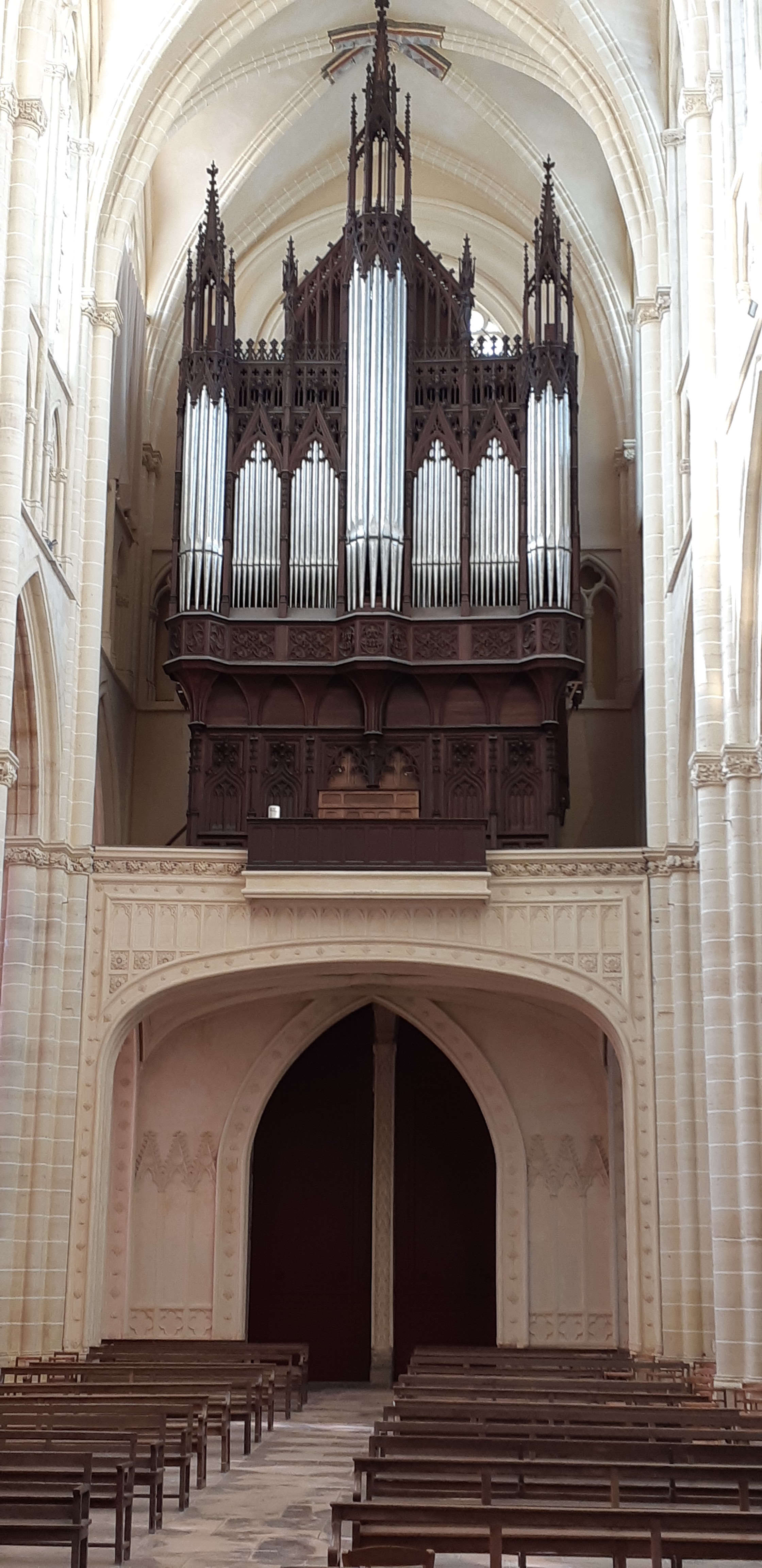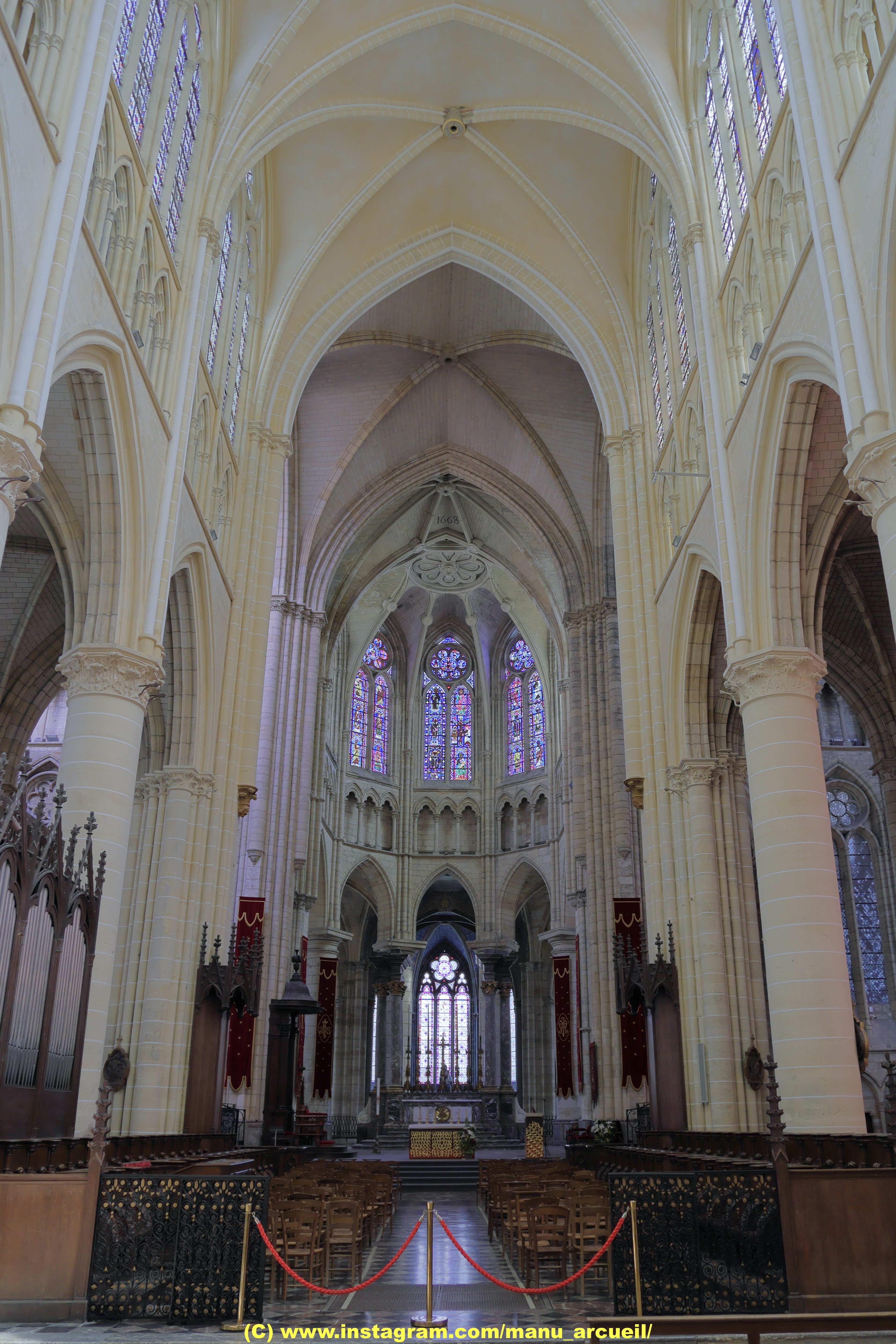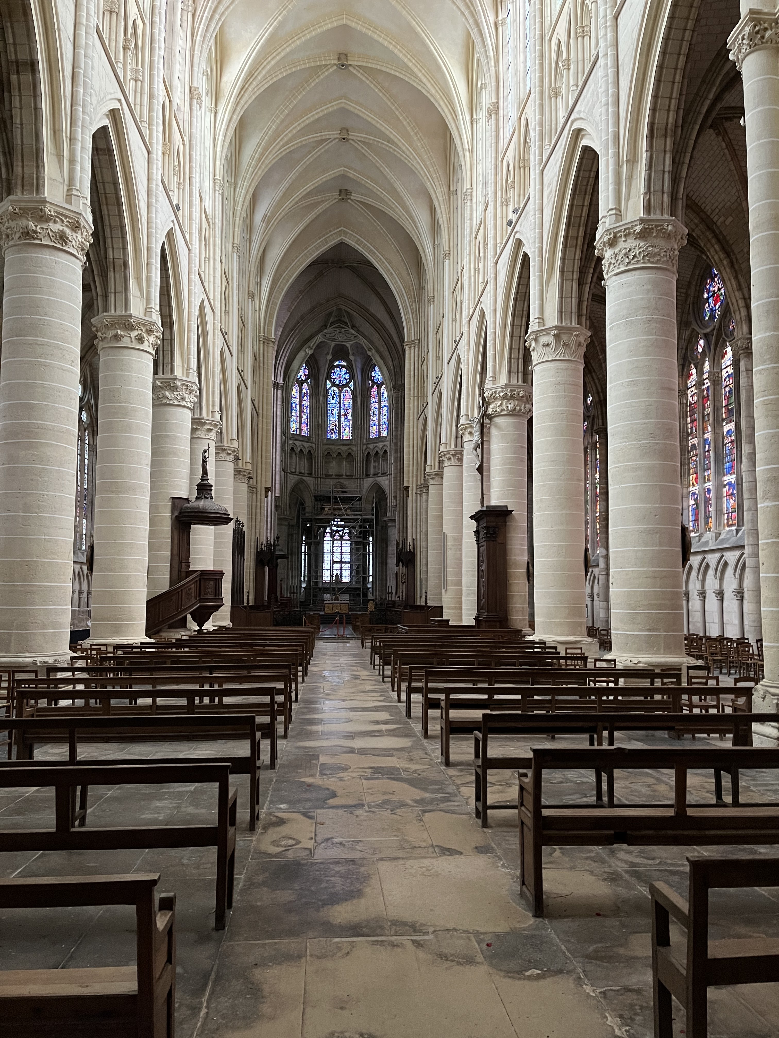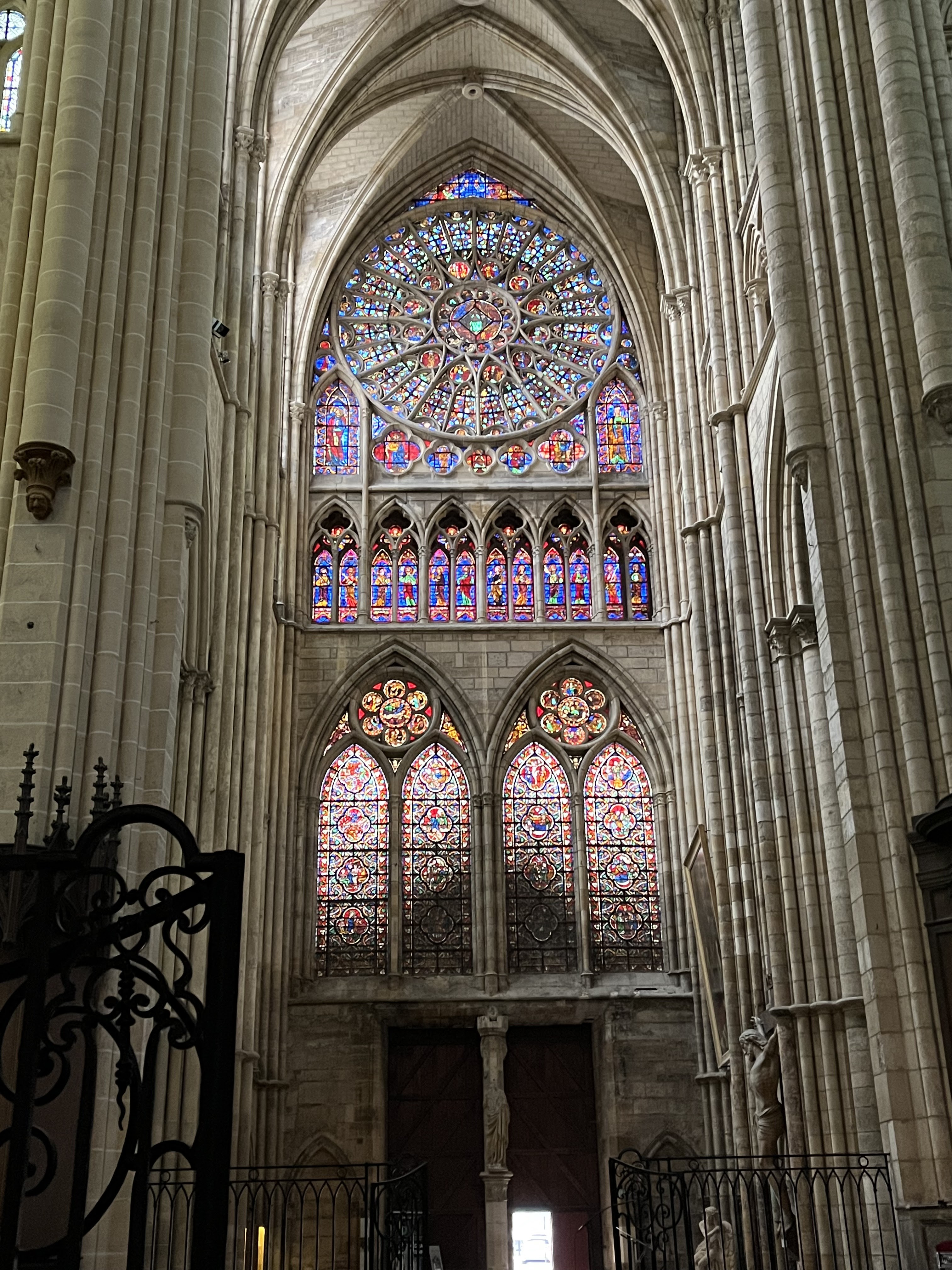 Entrez et la bouche se déforme d’étonnement. Nef incroyablement haute. Gothique pur. 1668 est gravé à côté d'une rosace simple mais artistique dans la voûte croisée du plafond. Pour nous, c'était une visite fortuite de passage. La France possède vraiment de nombreuses cathédrales gothiques bien conservées. Néanmoins, cela m'a particulièrement surpris et touché.