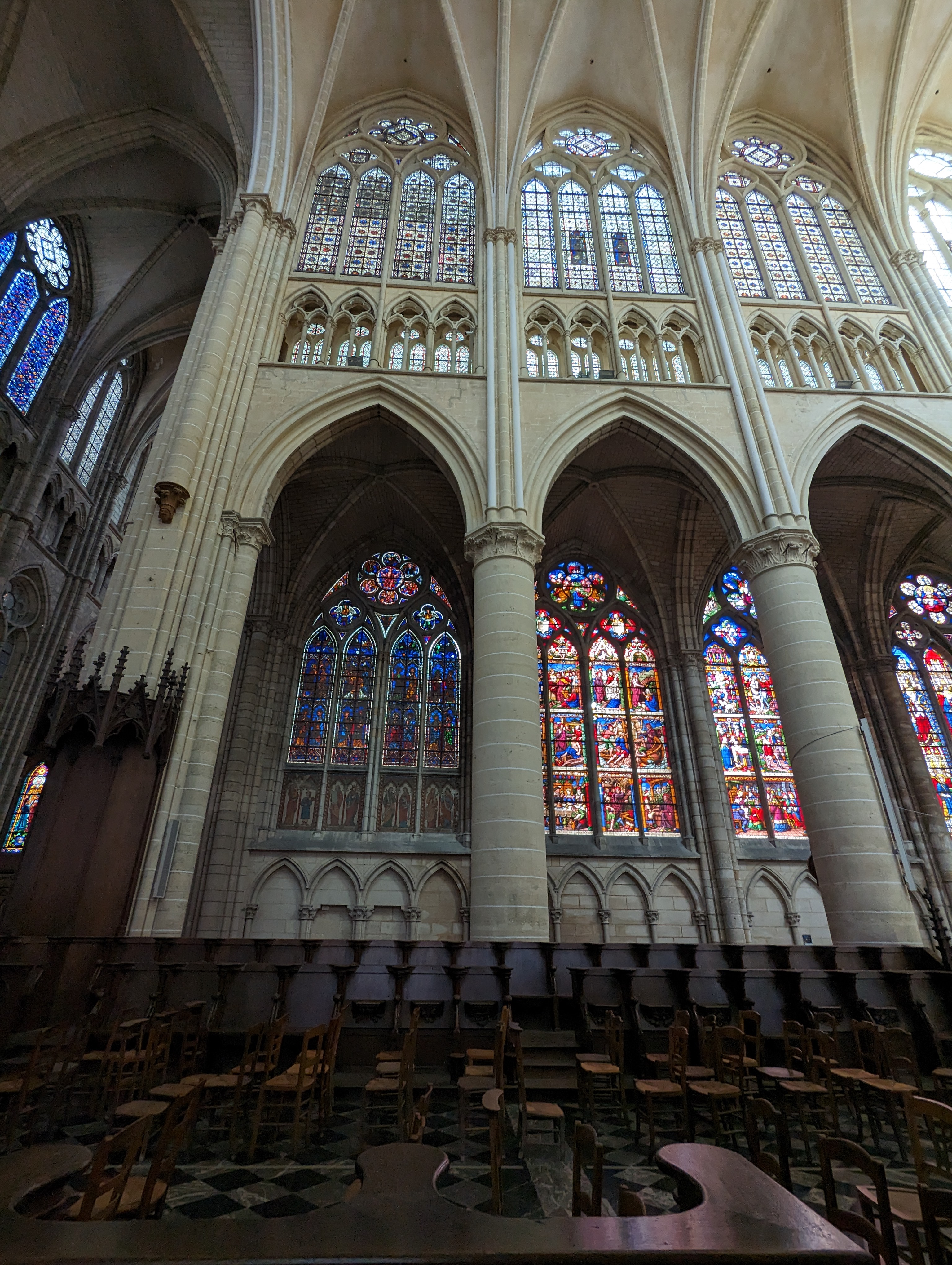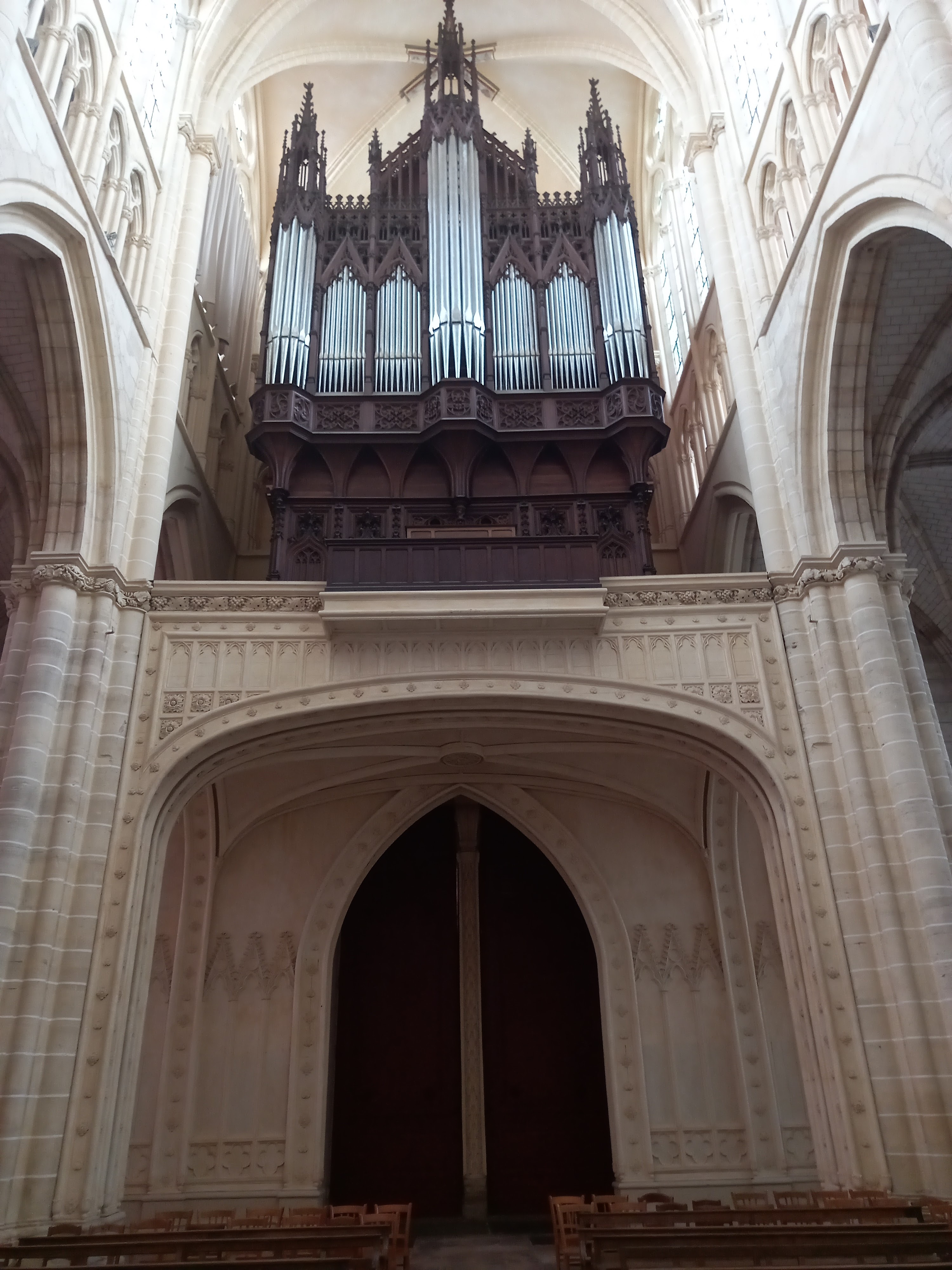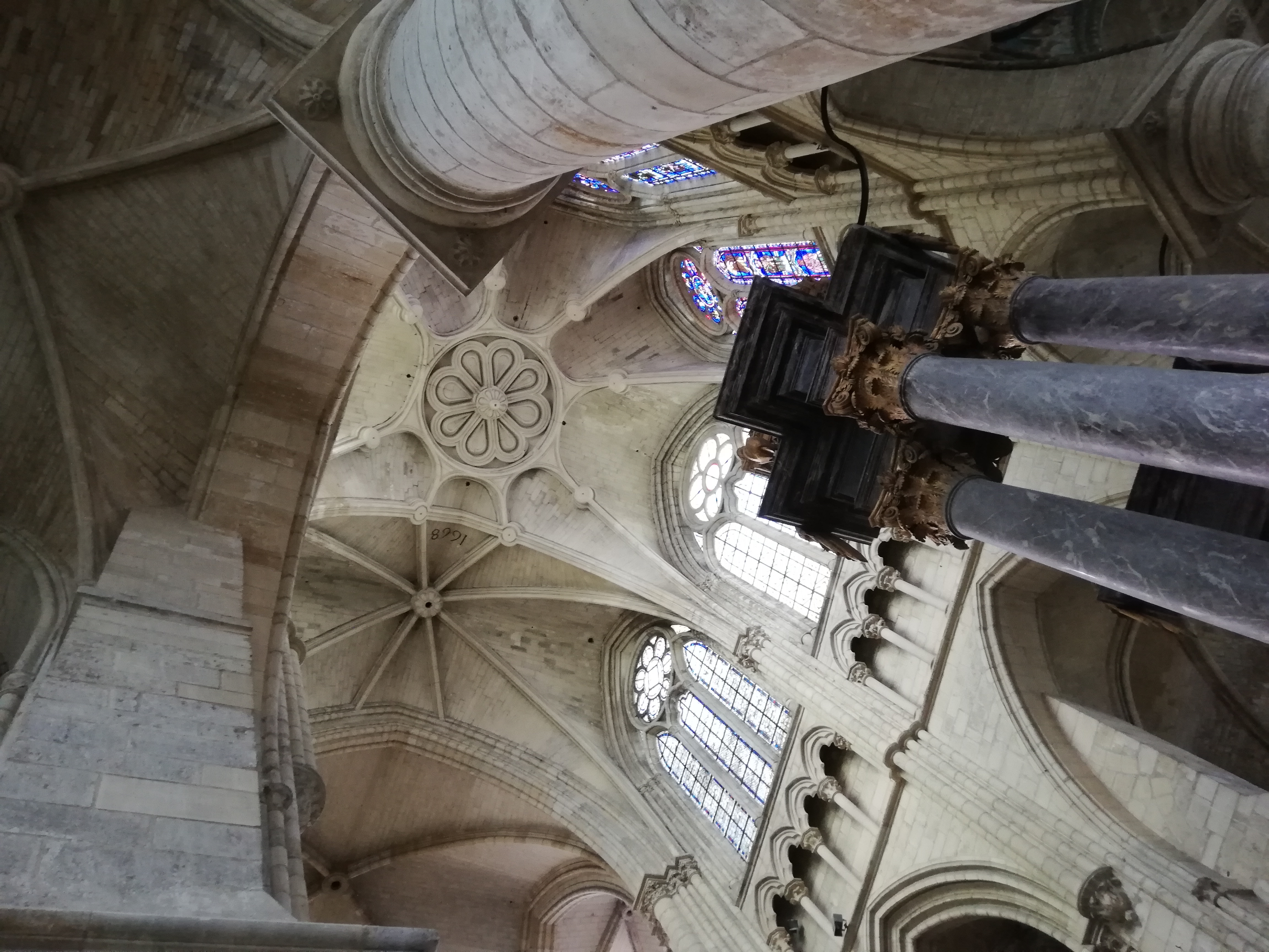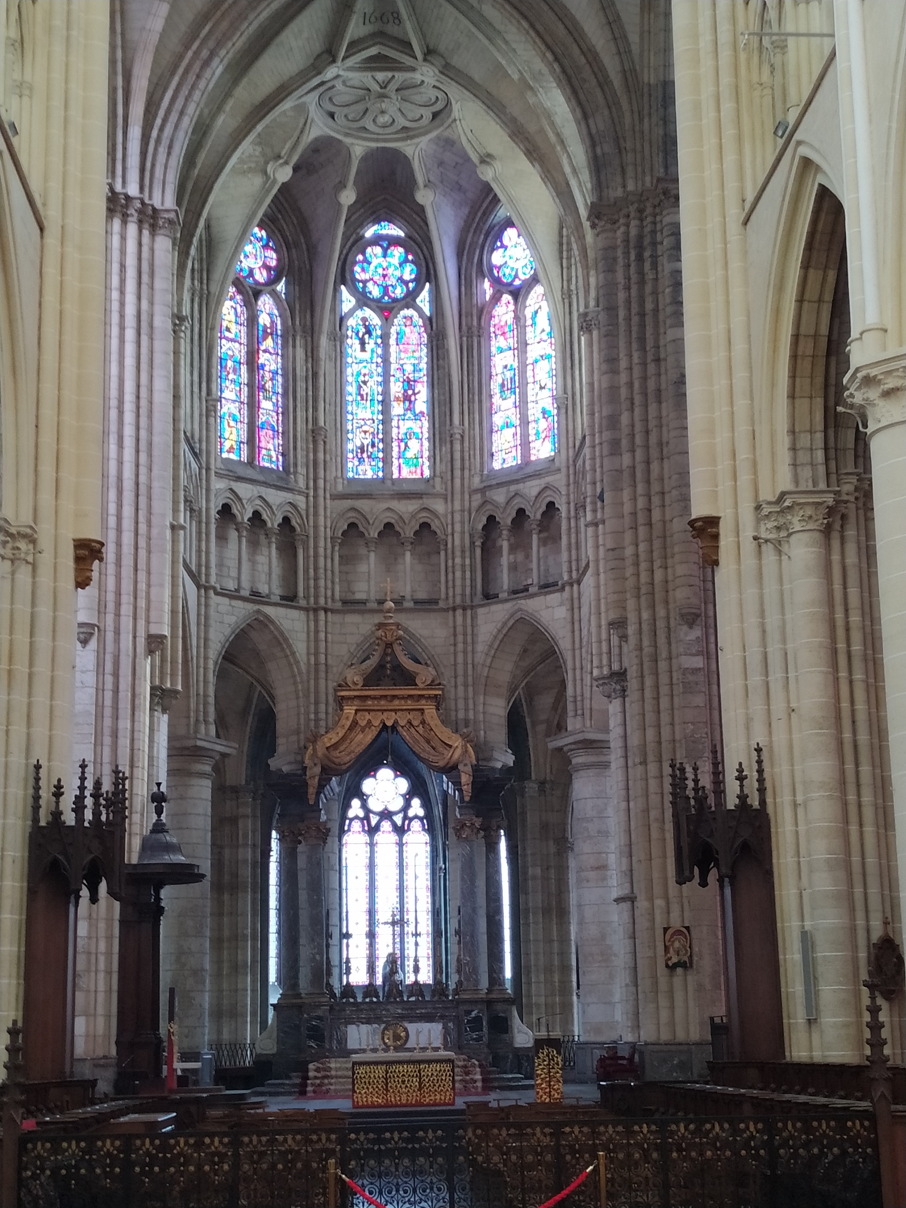 Entrez et la bouche se déforme d’étonnement. Nef incroyablement haute. Gothique pur. 1668 est gravé à côté d'une rosace simple mais artistique dans la voûte croisée du plafond. Pour nous, c'était une visite fortuite de passage. La France possède vraiment de nombreuses cathédrales gothiques bien conservées. Néanmoins, cela m'a particulièrement surpris et touché.