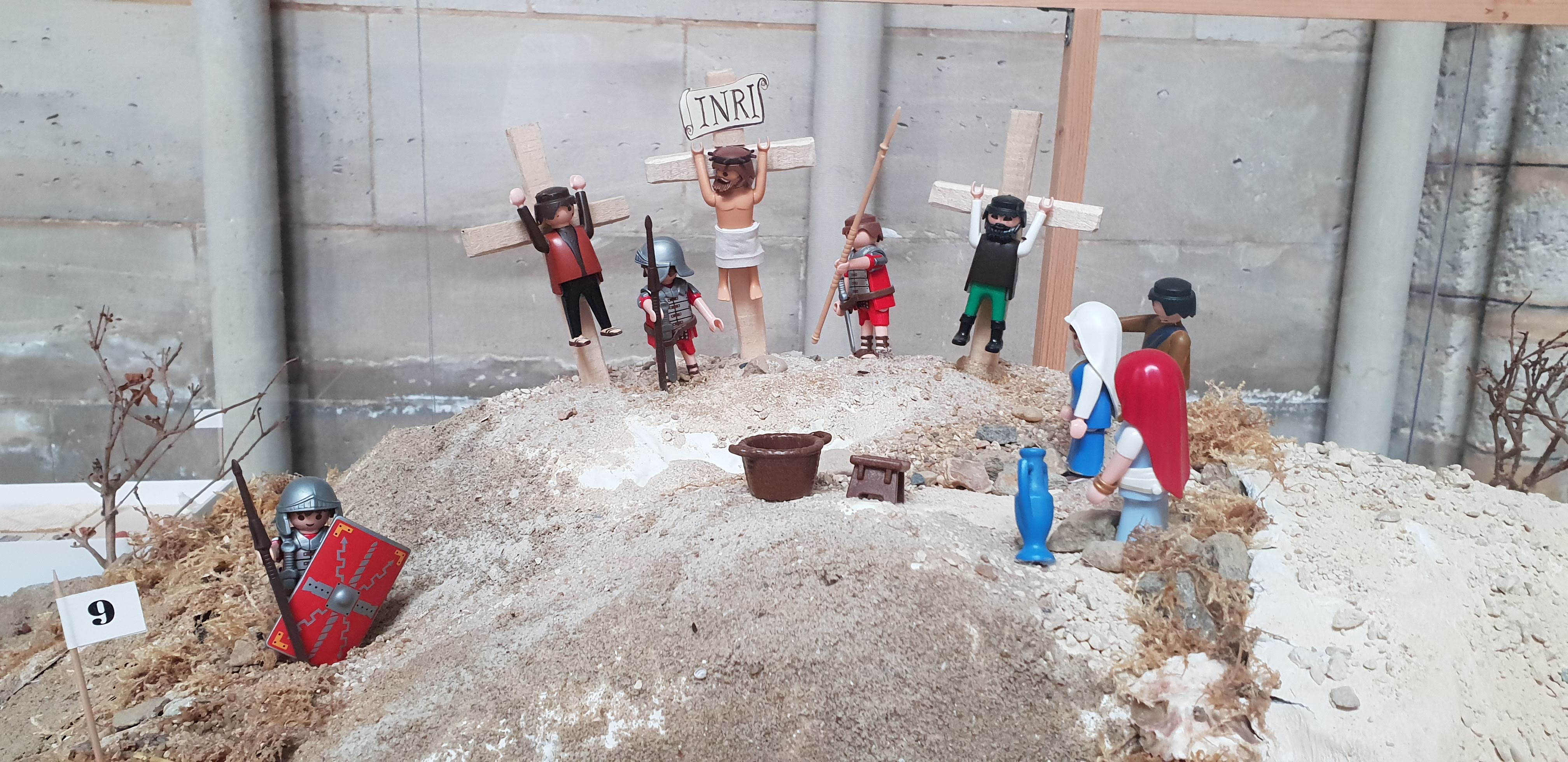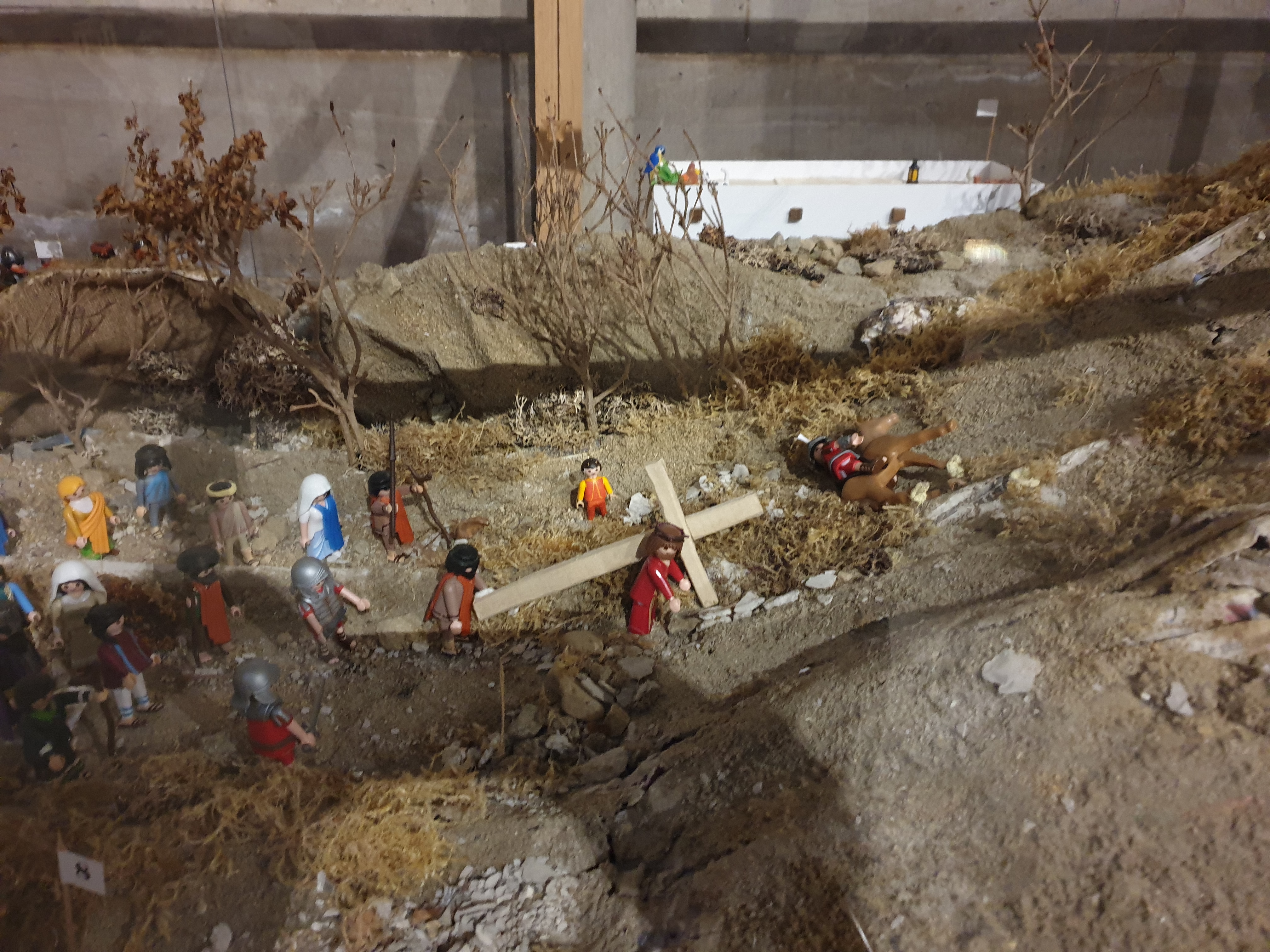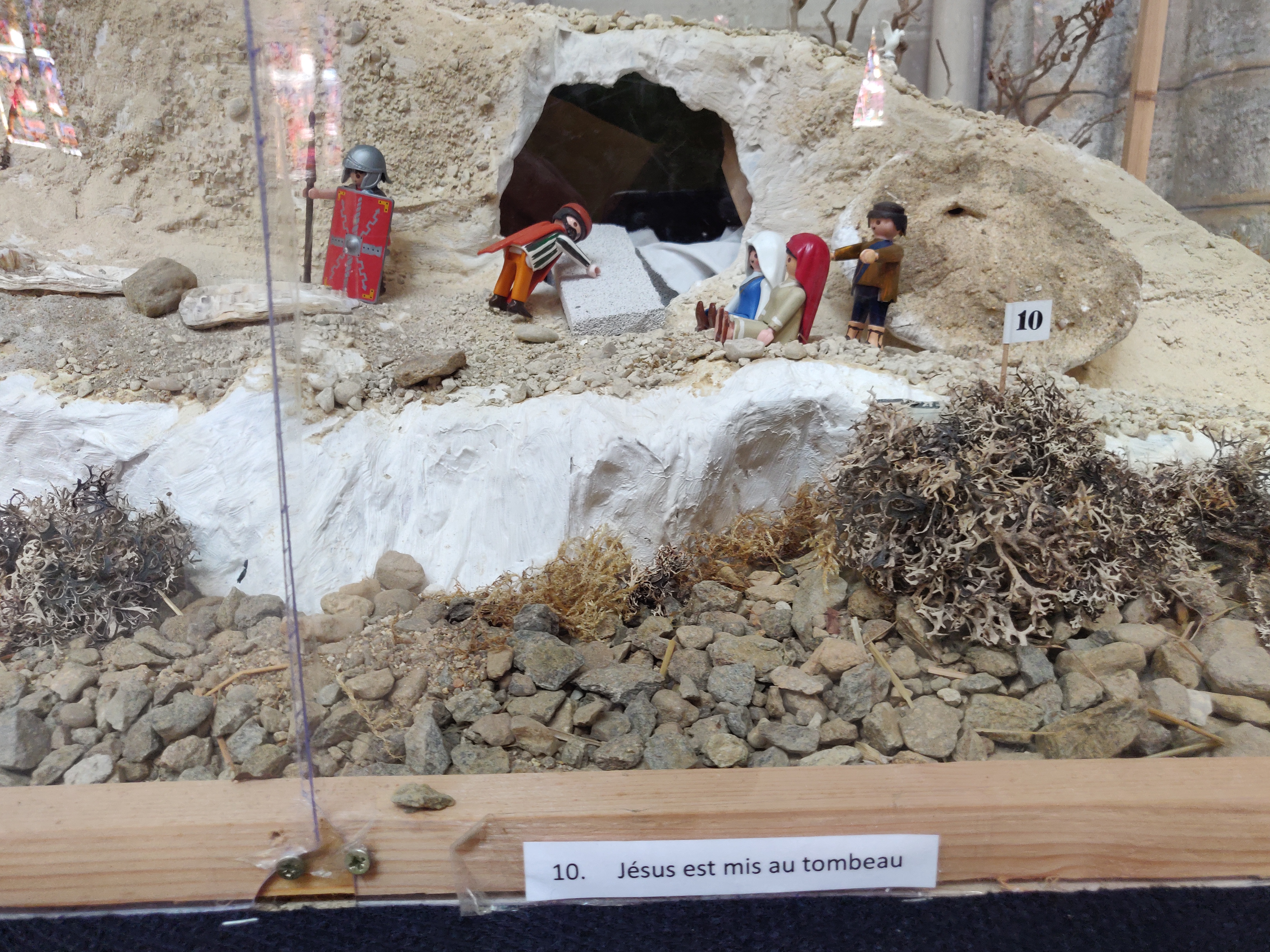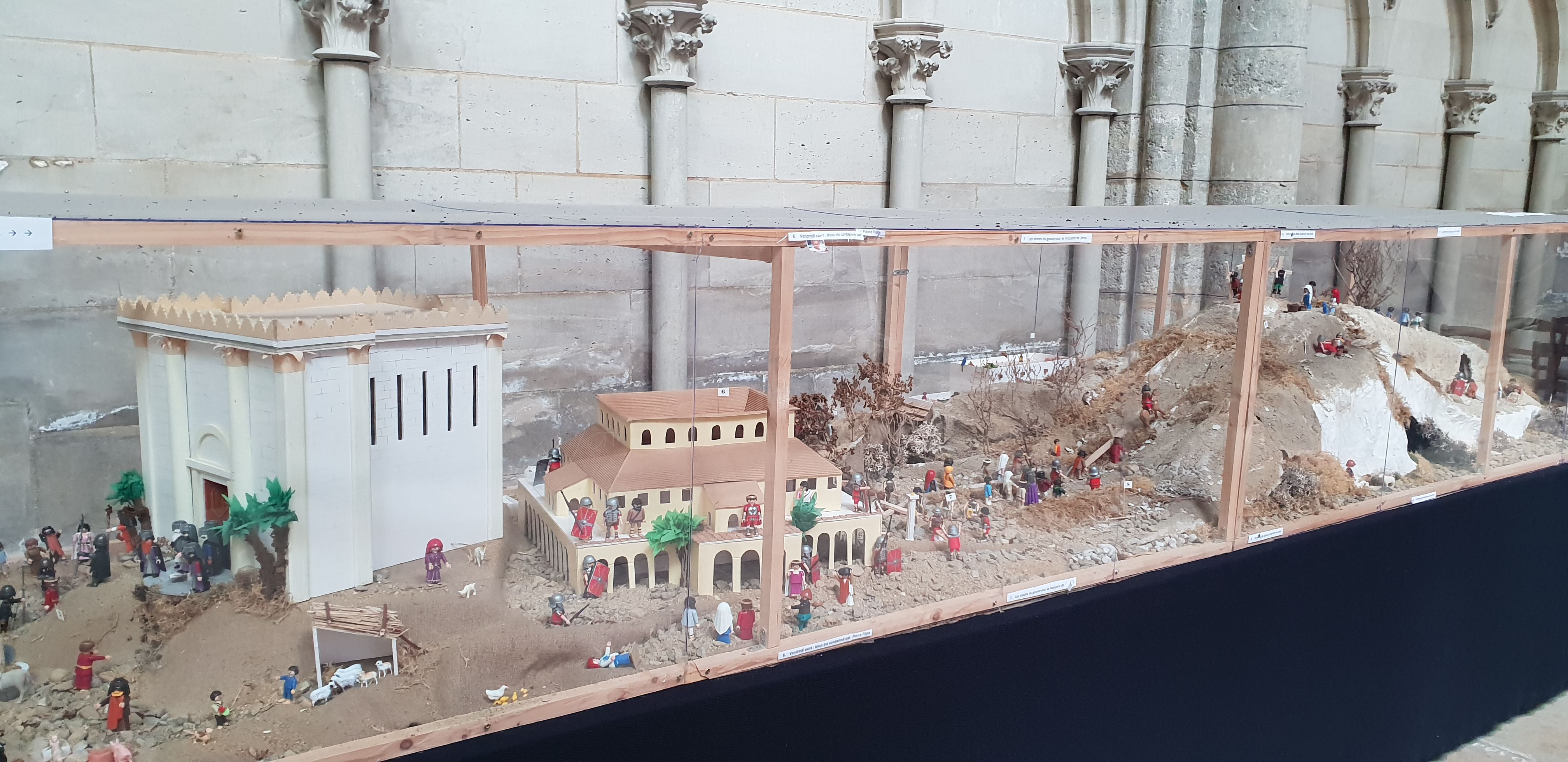 Une des deux grandes églises de cette ville. Ici aussi de beaux vitraux et fenêtres en plomb. Histoire des dernières heures du Christ représentée avec des figurines Playmobile.