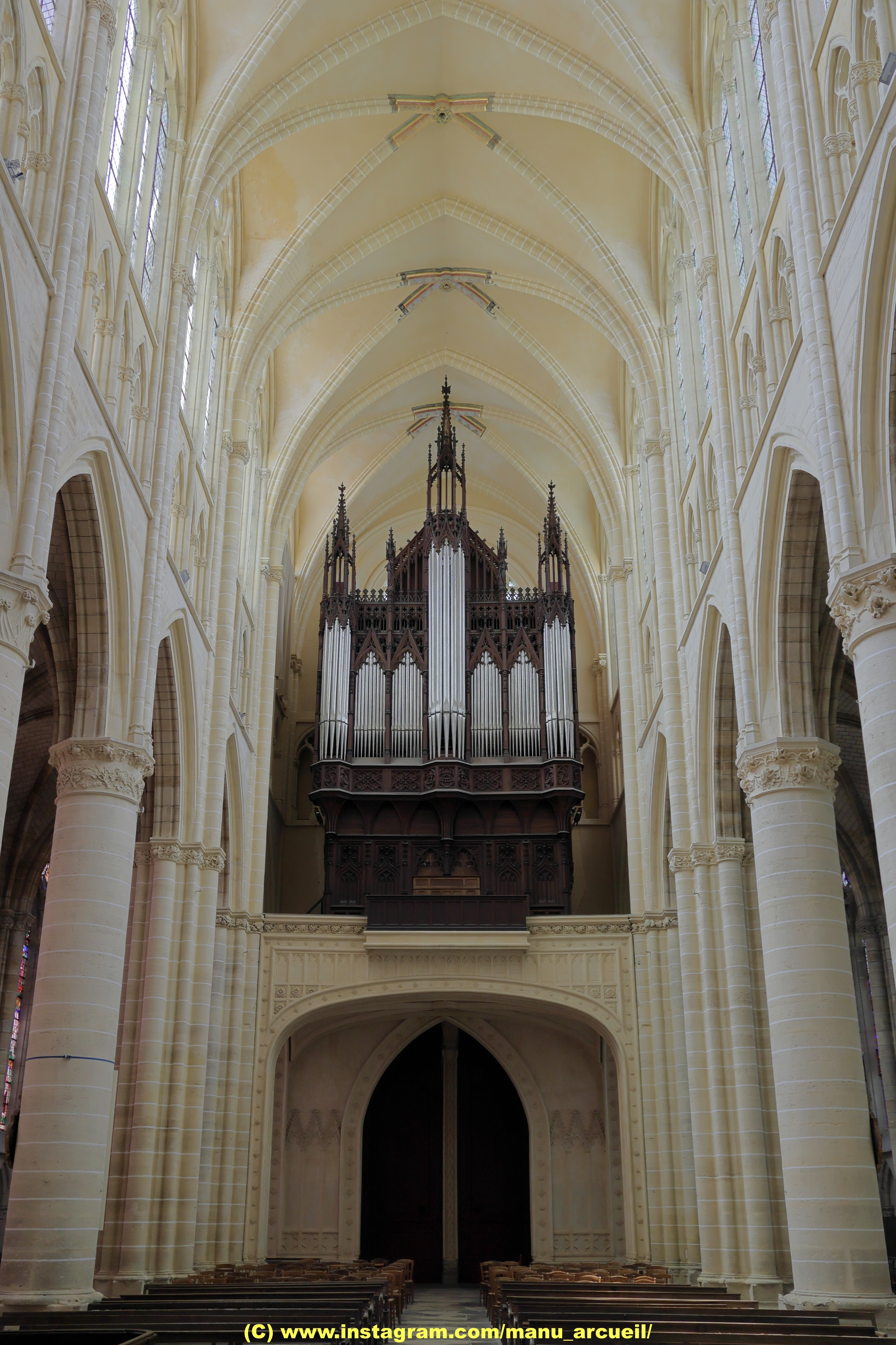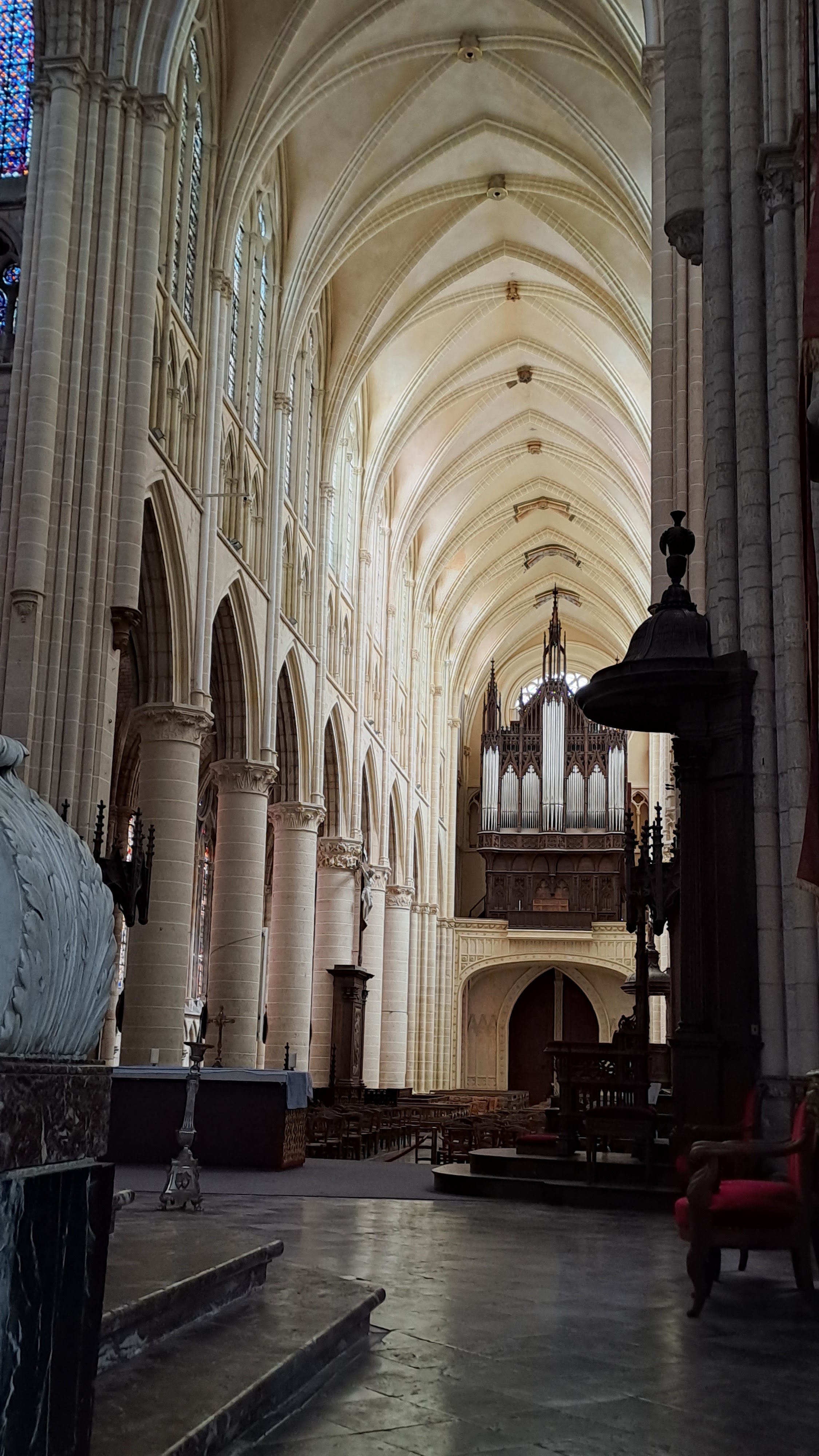 Belle cathédrale avec de beaux vitraux et un bel orgue