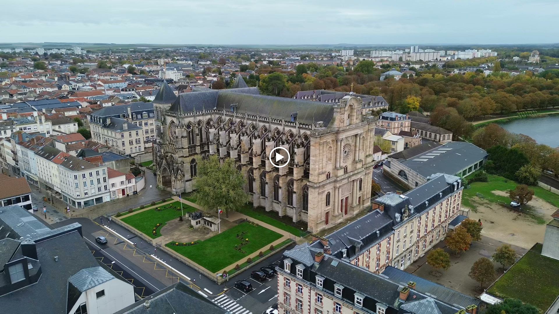 Vue sur la cathédrale de Châlons-en-Champagne, cathédrale à visiter qui offre également les spectacles de musiques, une cathédrale riche d'histoire avec une architecture remarquable.