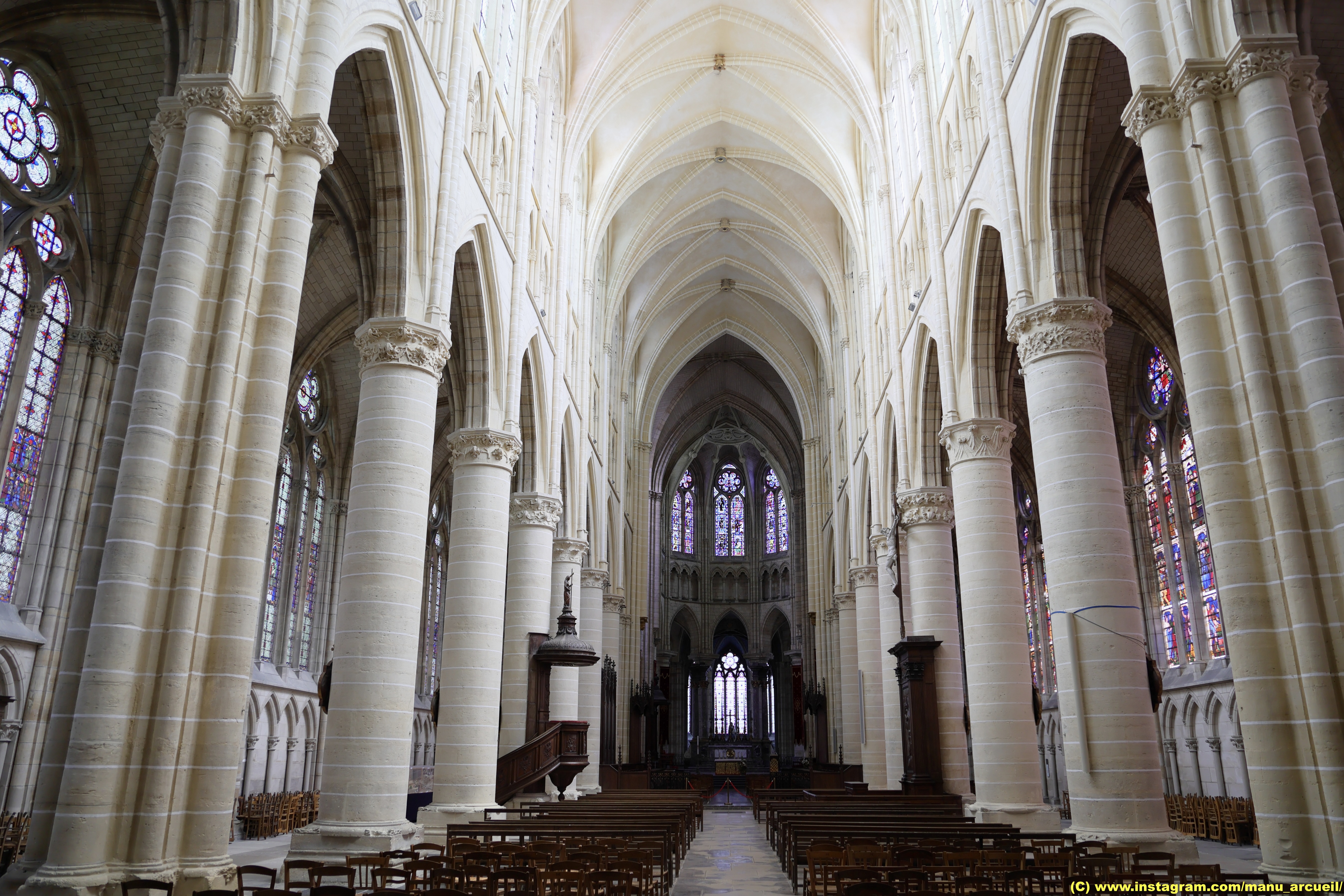 Une cathédrale étonnamment belle. En arrivant à Châlons, je ne connaissais aucunement sa cathédrale. On dirait qu'il a été récemment entretenu car les piliers et les murs sont propres et blancs. Si vous passez par Châlons, cela vaut vraiment la peine de s'arrêter à la cathédrale.
