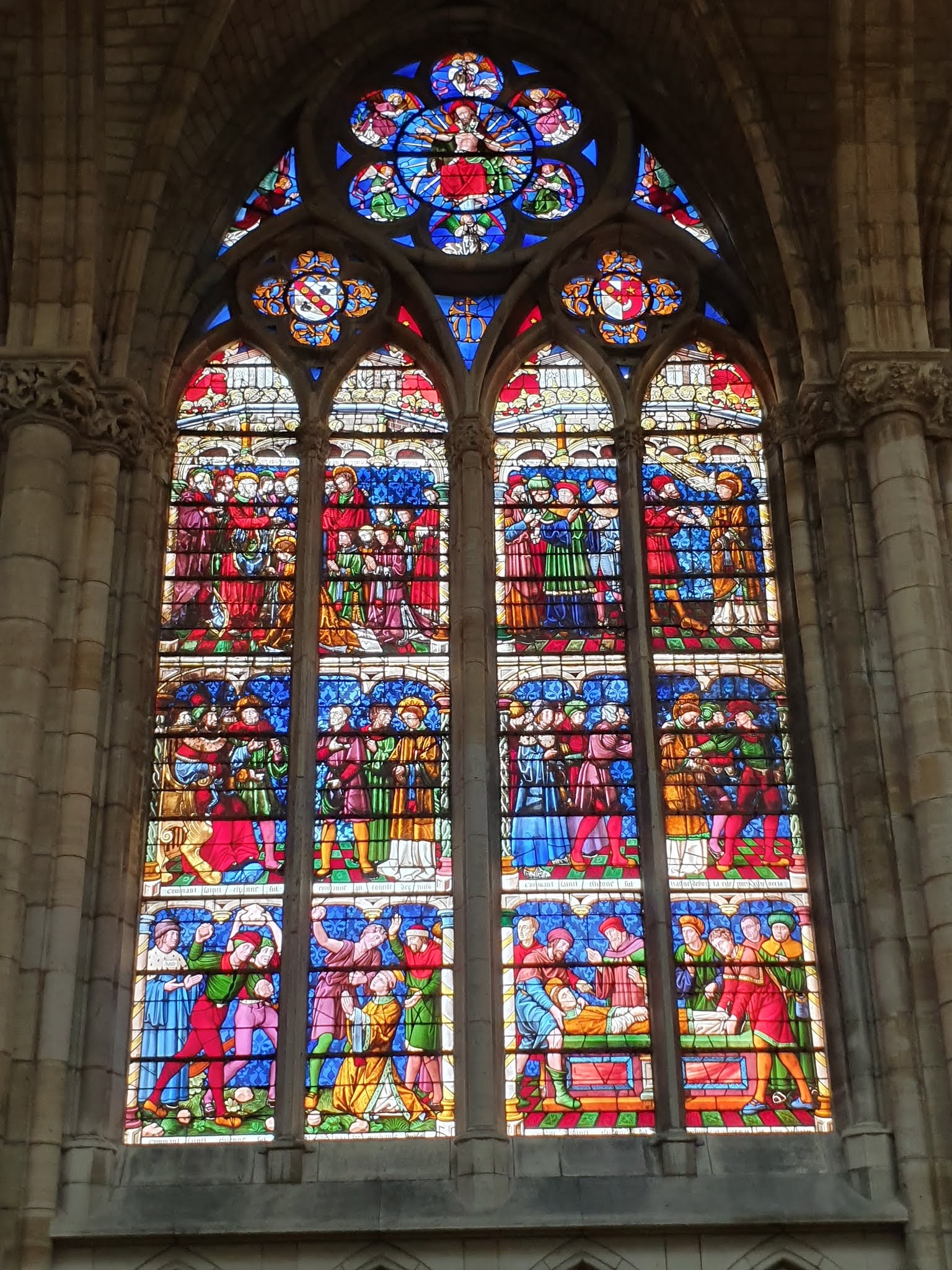 Magnifique série de vitraux Je suis déçue parce que je n’ai pas trouvé les reliques de St Etienne que cette cathédrale est censée abriter . L’architecte intérieure est beaucoup moins belle de Notre Dame de Vaux à 1 km .