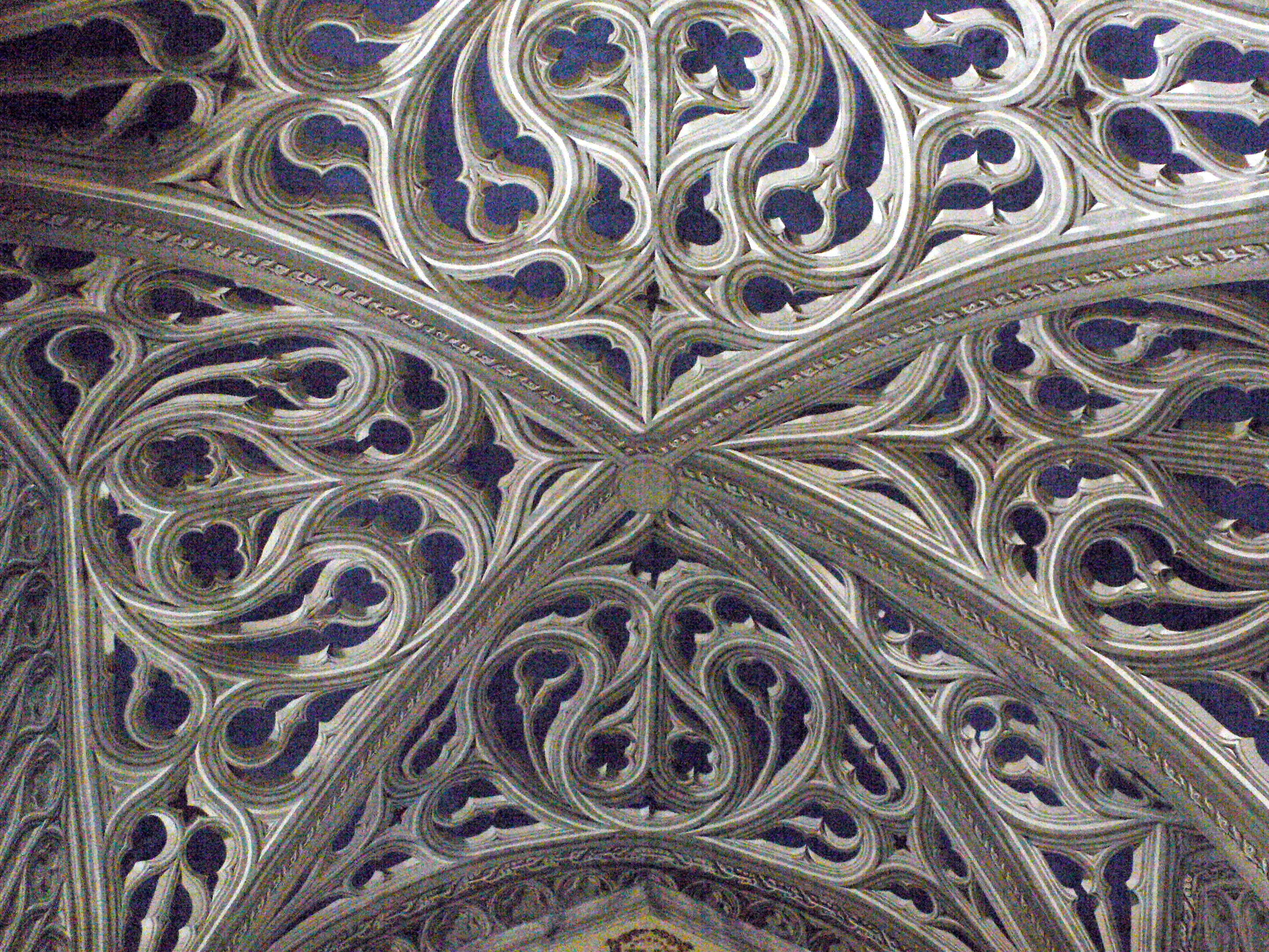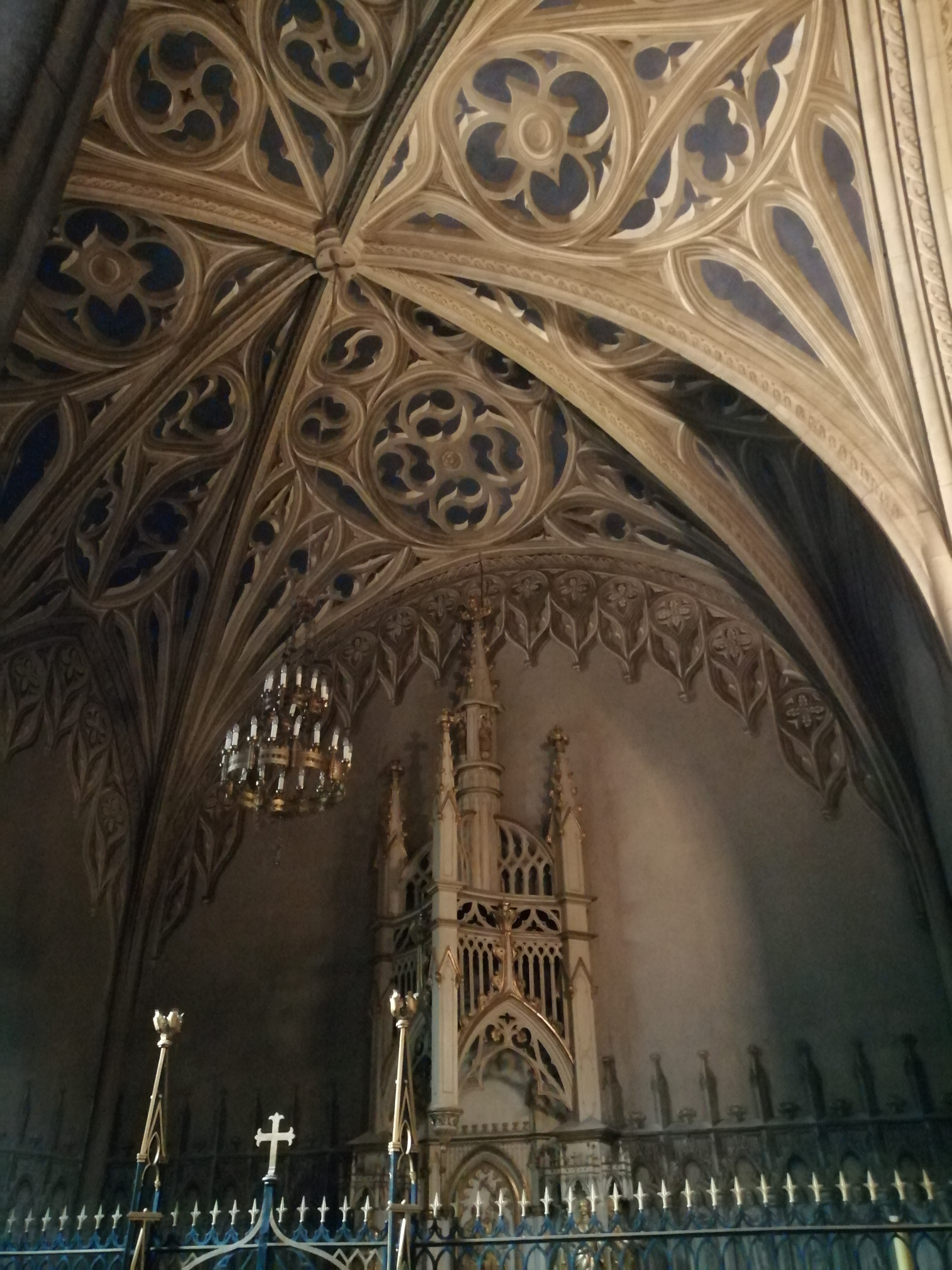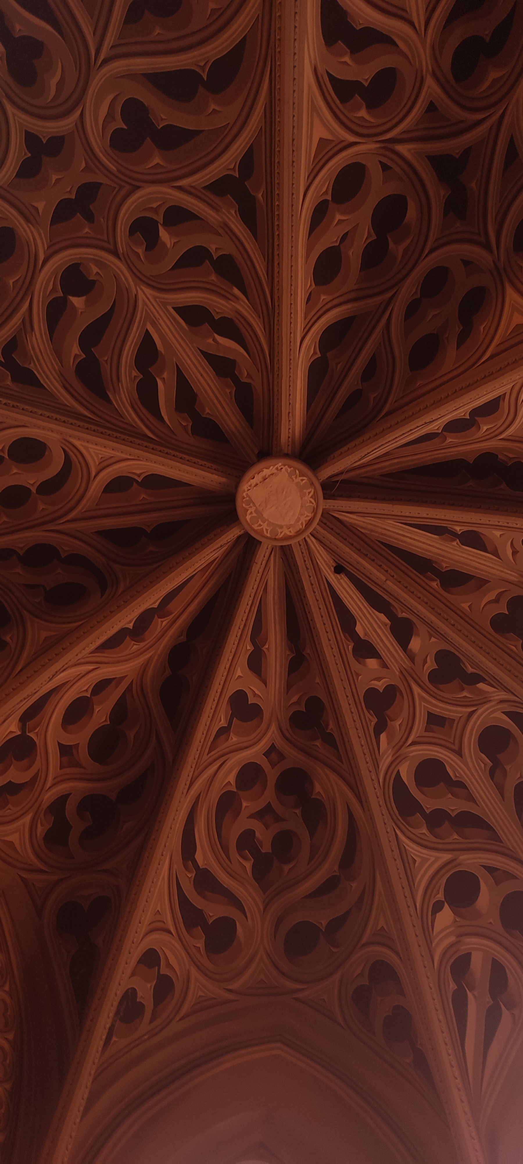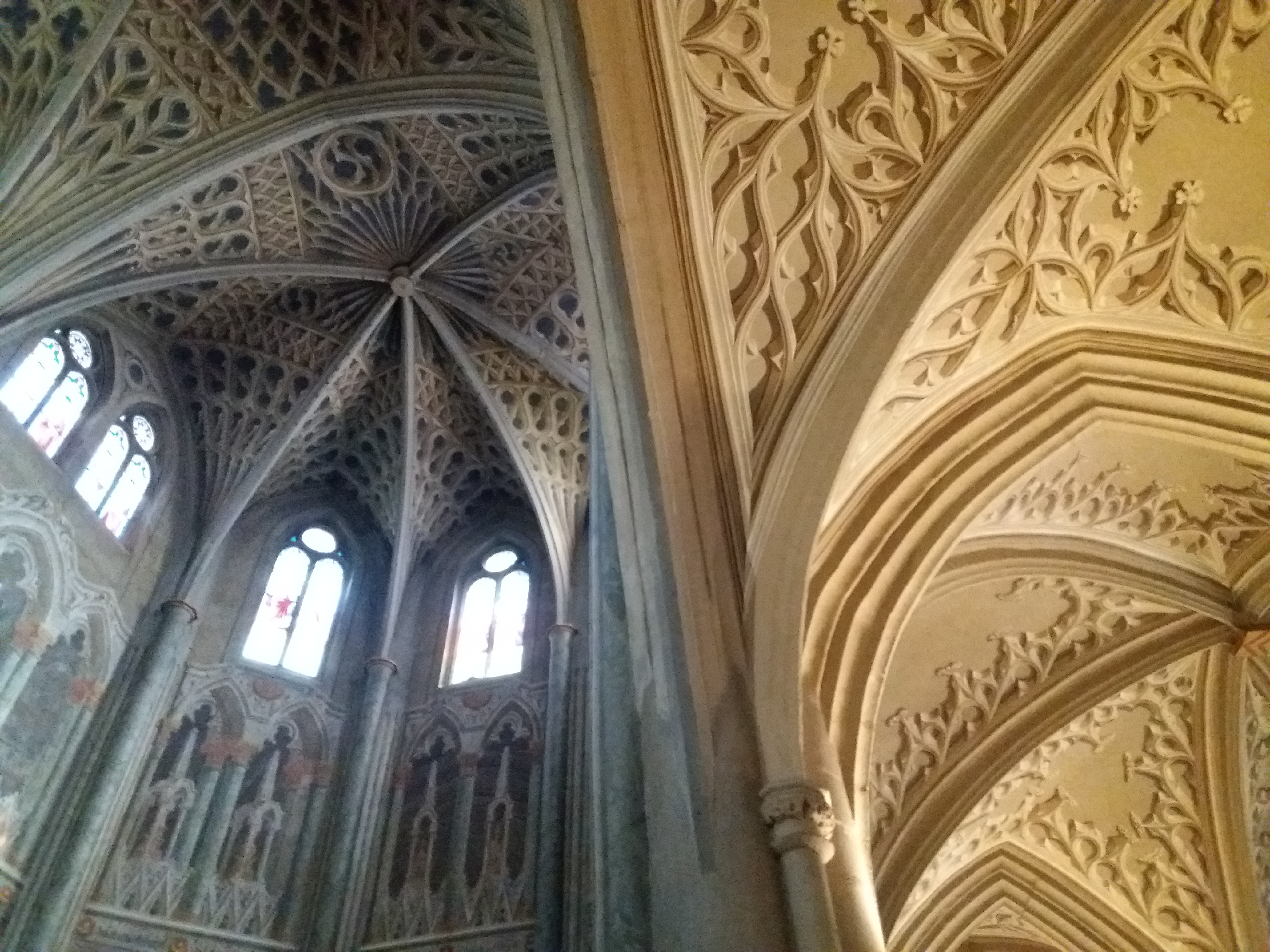 Superbe exemple de trompe l'œil sur les voûtes entièrement peintes en sculptures gothiques - et remarquablement entretenues et conservées - Ici, la chapelle baroque