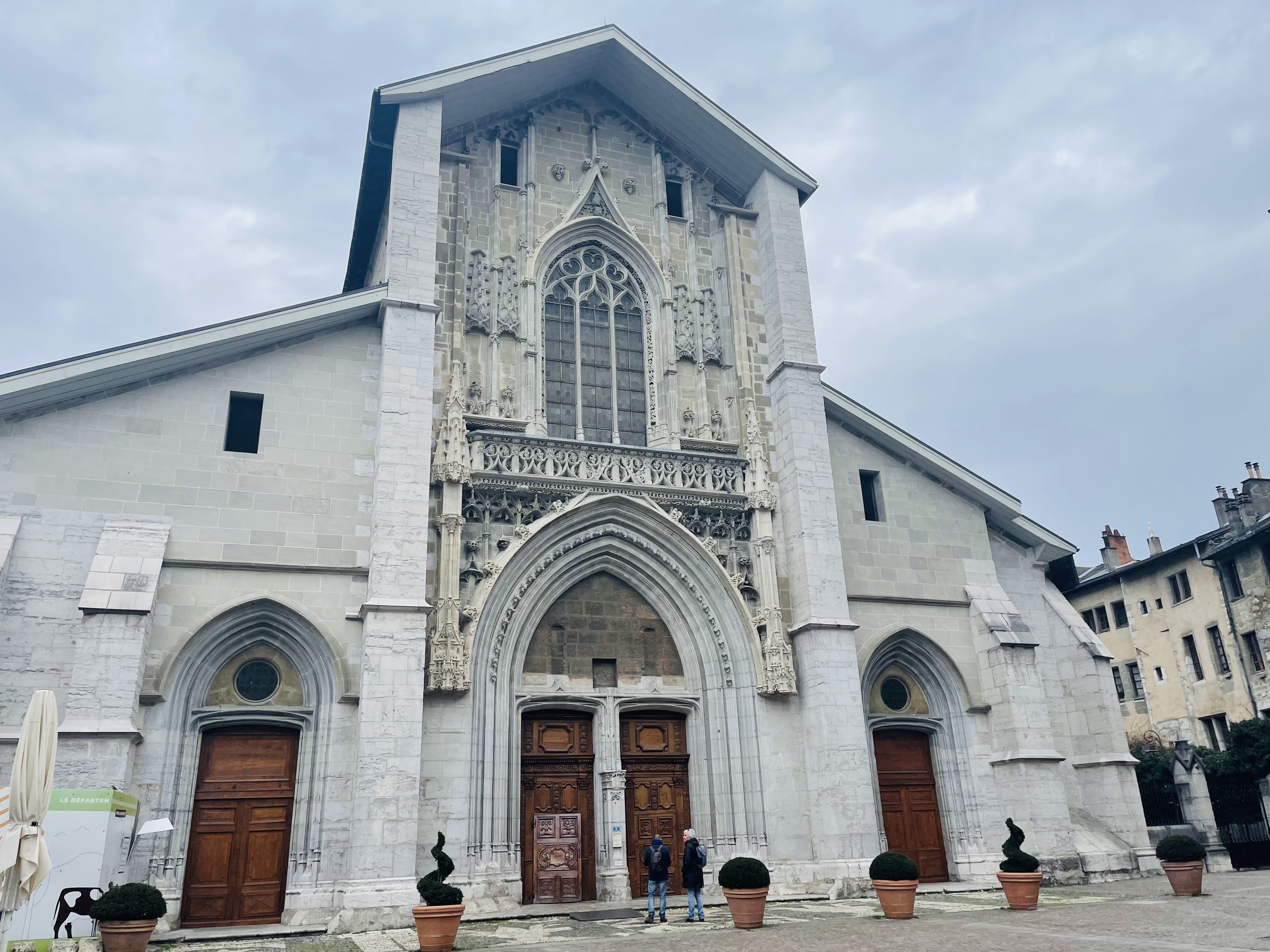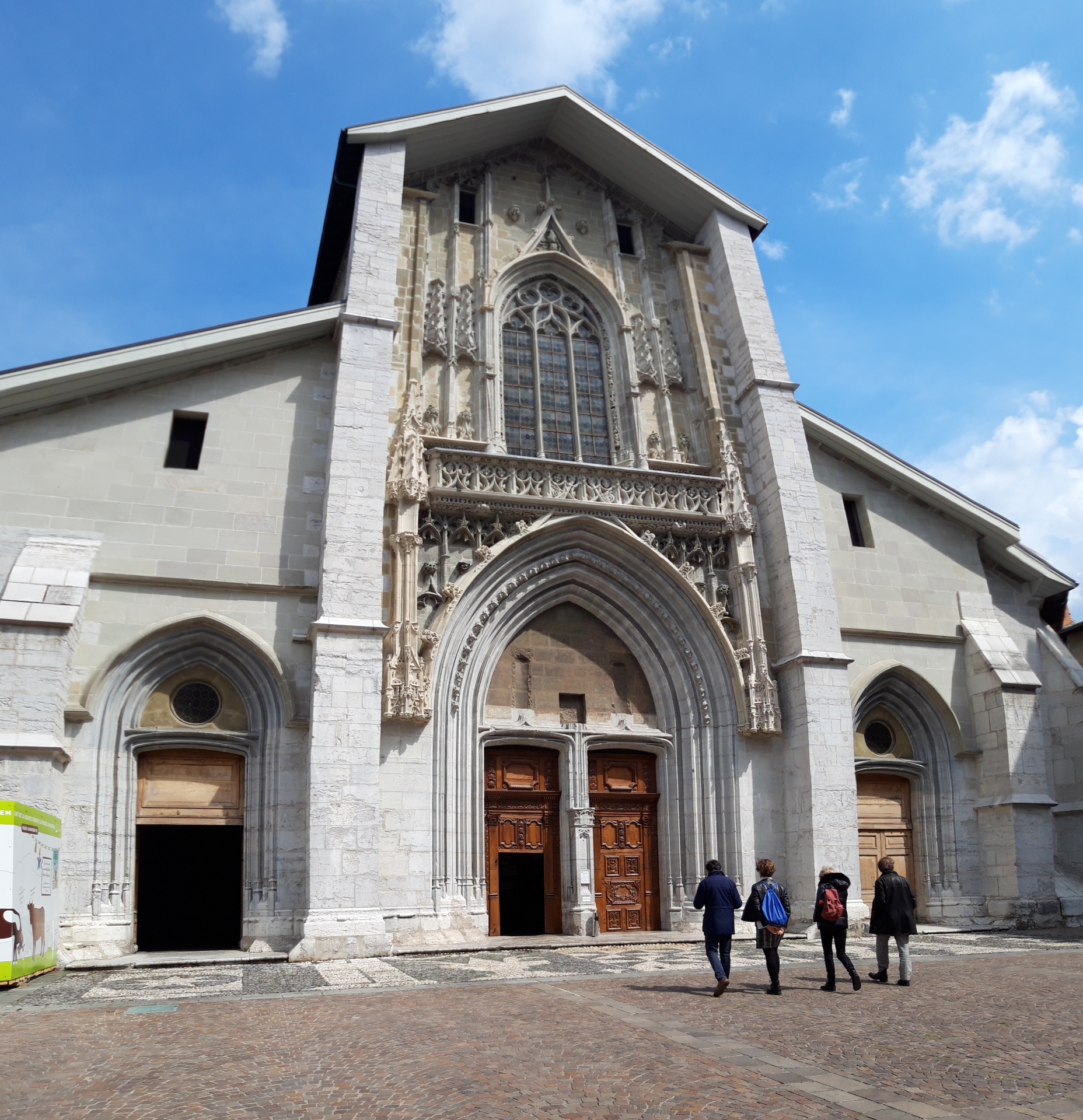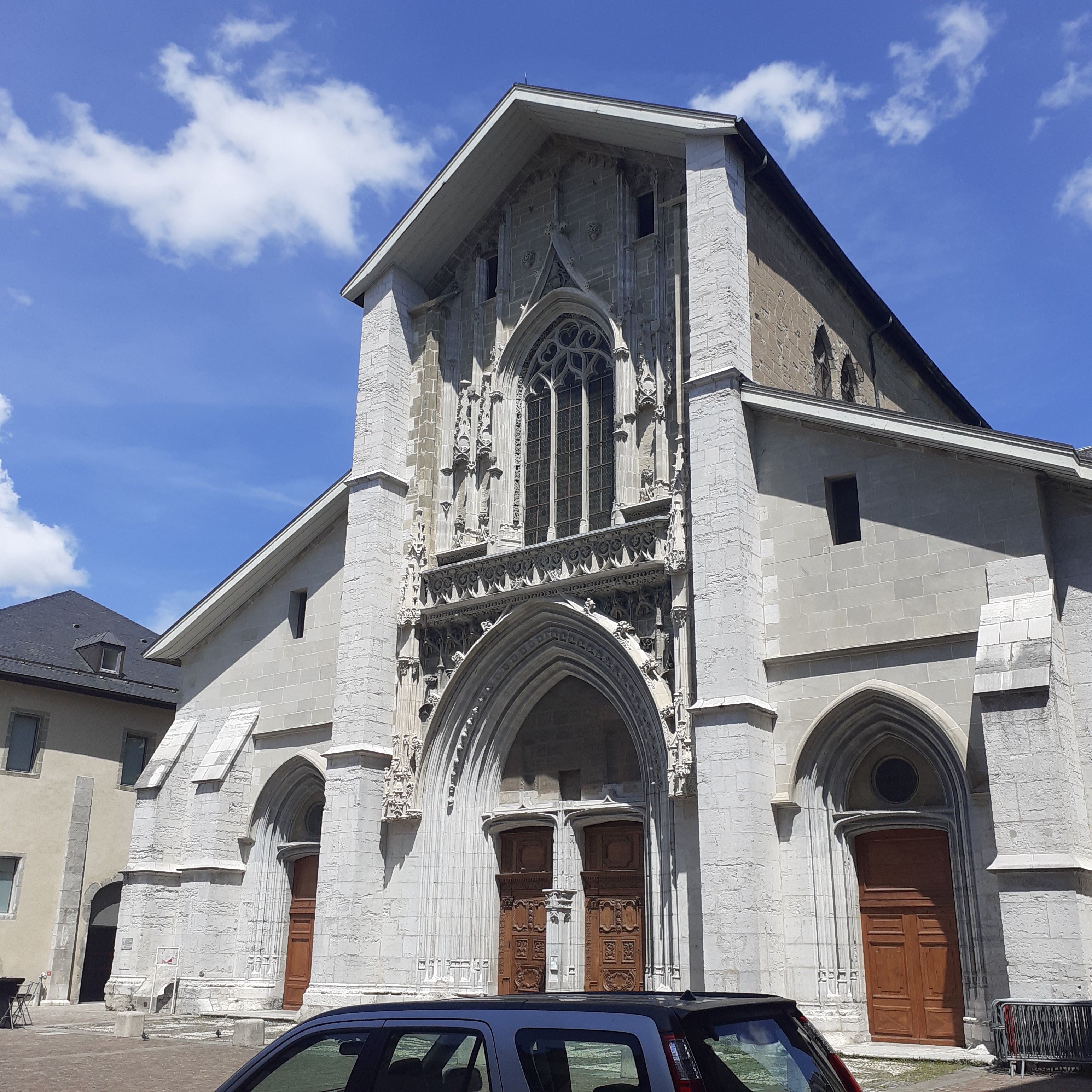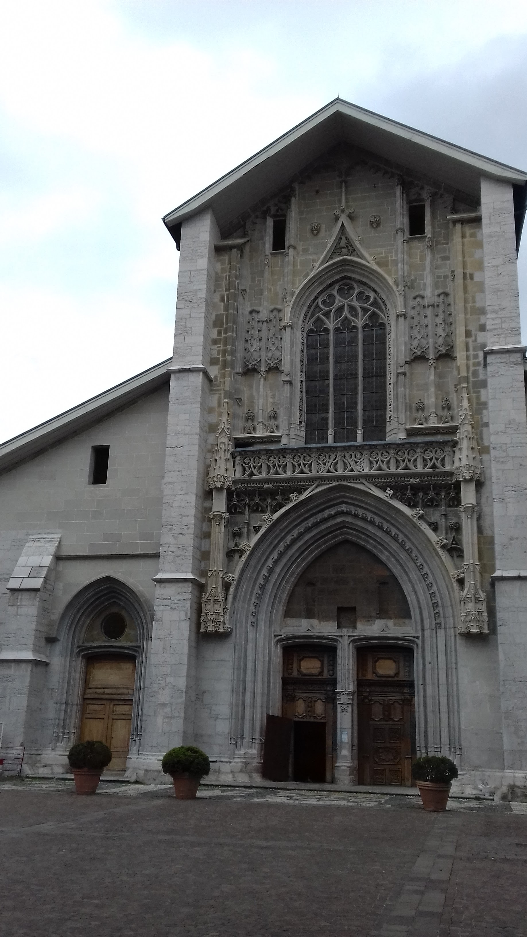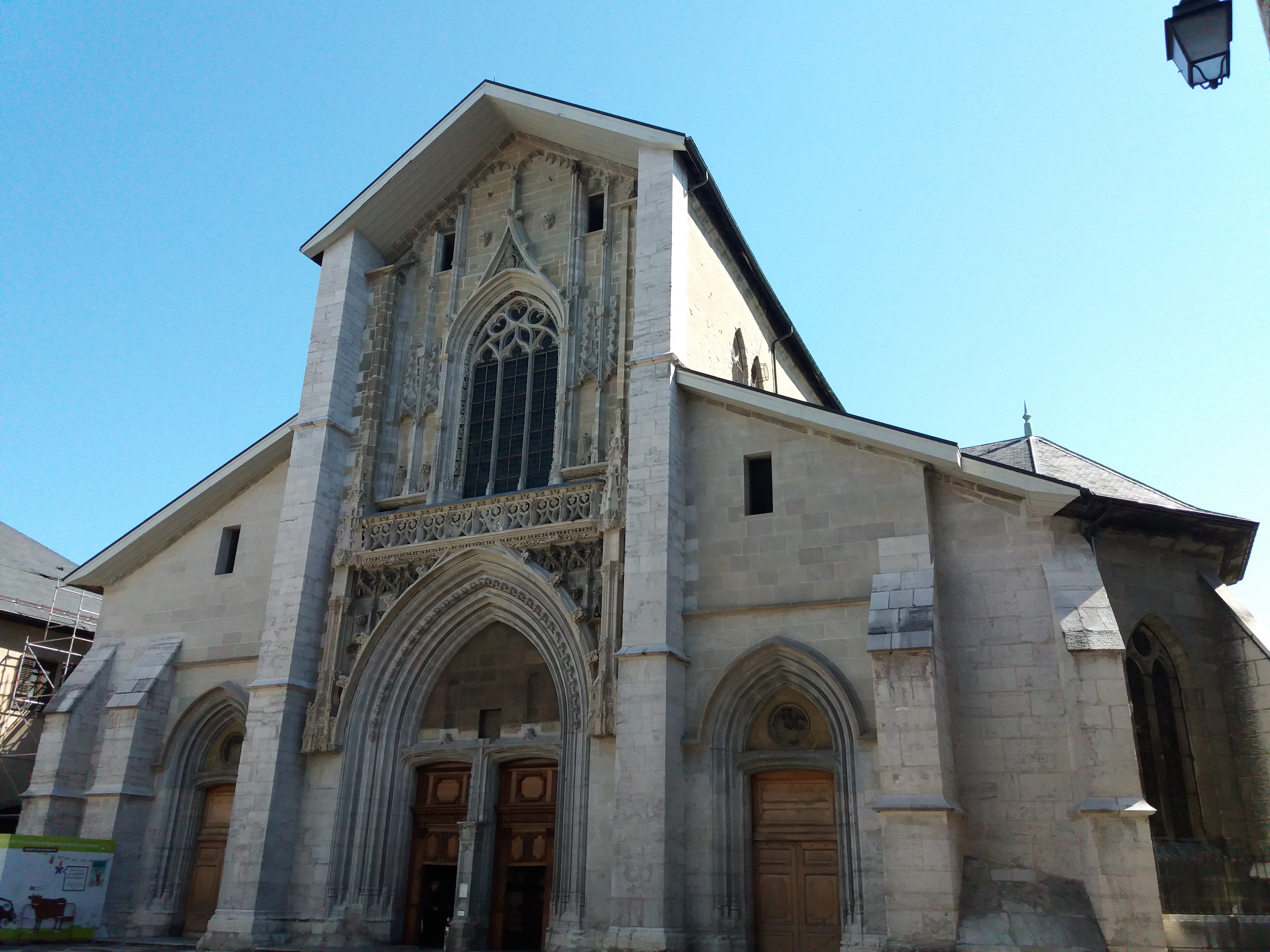 Un lieu sacré qui a perdu son identité. La métropole édifice Franciscain de facture gothique flamboyant du XVI ème siècle n'a pour elle que d'être un lieu religieux de recueillement. Présence d'une copie du St suaire. L'édifice a bénéficié de Restaurations récentes permettant notamment d`admirer le travail mural en trompe l'œil. En revanche, l'esprit actuel qui habite la cathédrale et la déco dénotent totalement avec son origine savoyarde, son histoire::bannières de drapeau français alors que l'invasion française en décembre 1792 a été synonyme de mise à sac de l'église des cordeliers. Jamais depuis le drapeau révolutionnaire n'avait foulé les lieux. Une statue de Jeanne d'arc trône également, alors que les savoyards sujets d'Empire étaient ennemis des français à son époque.