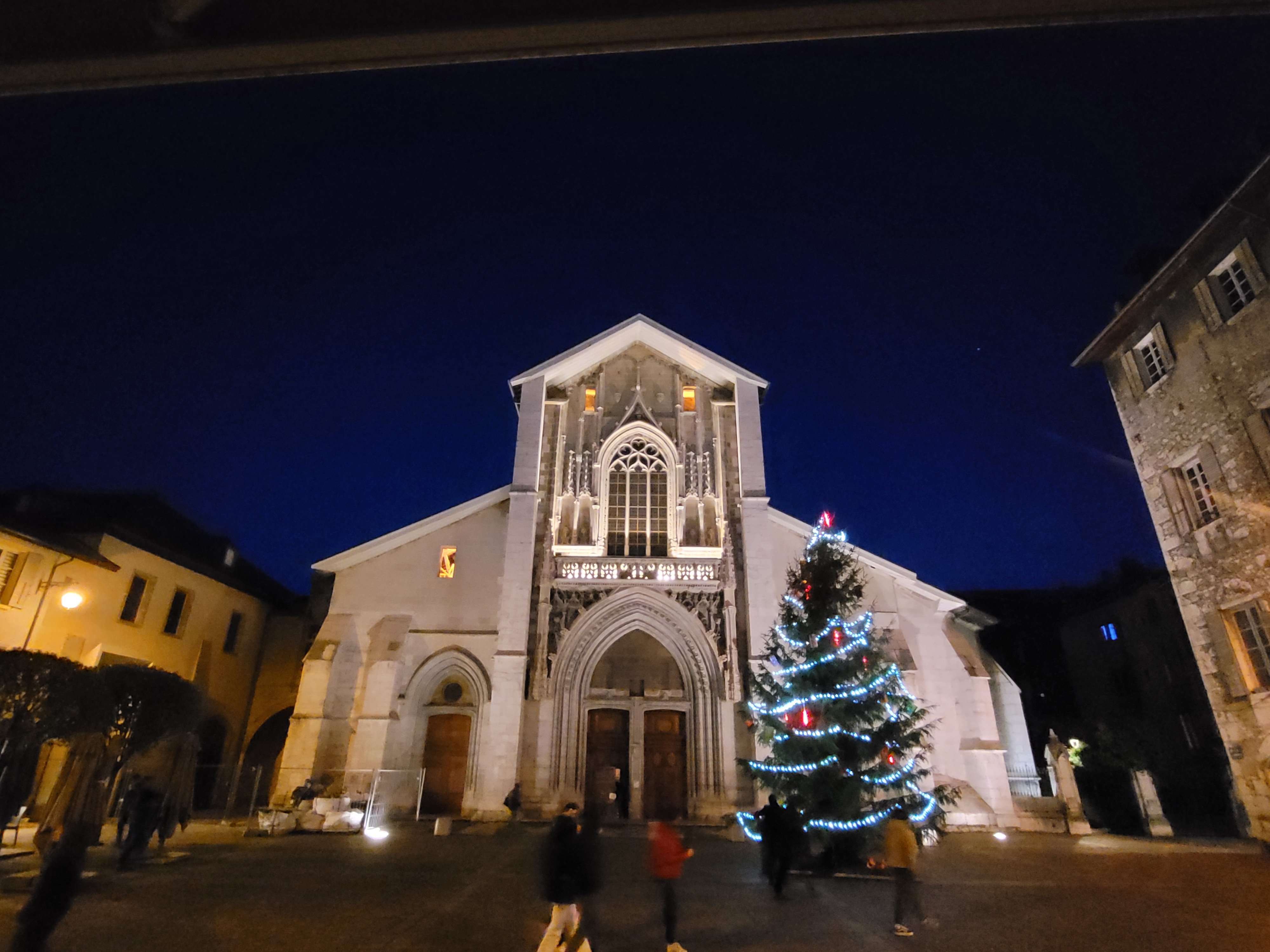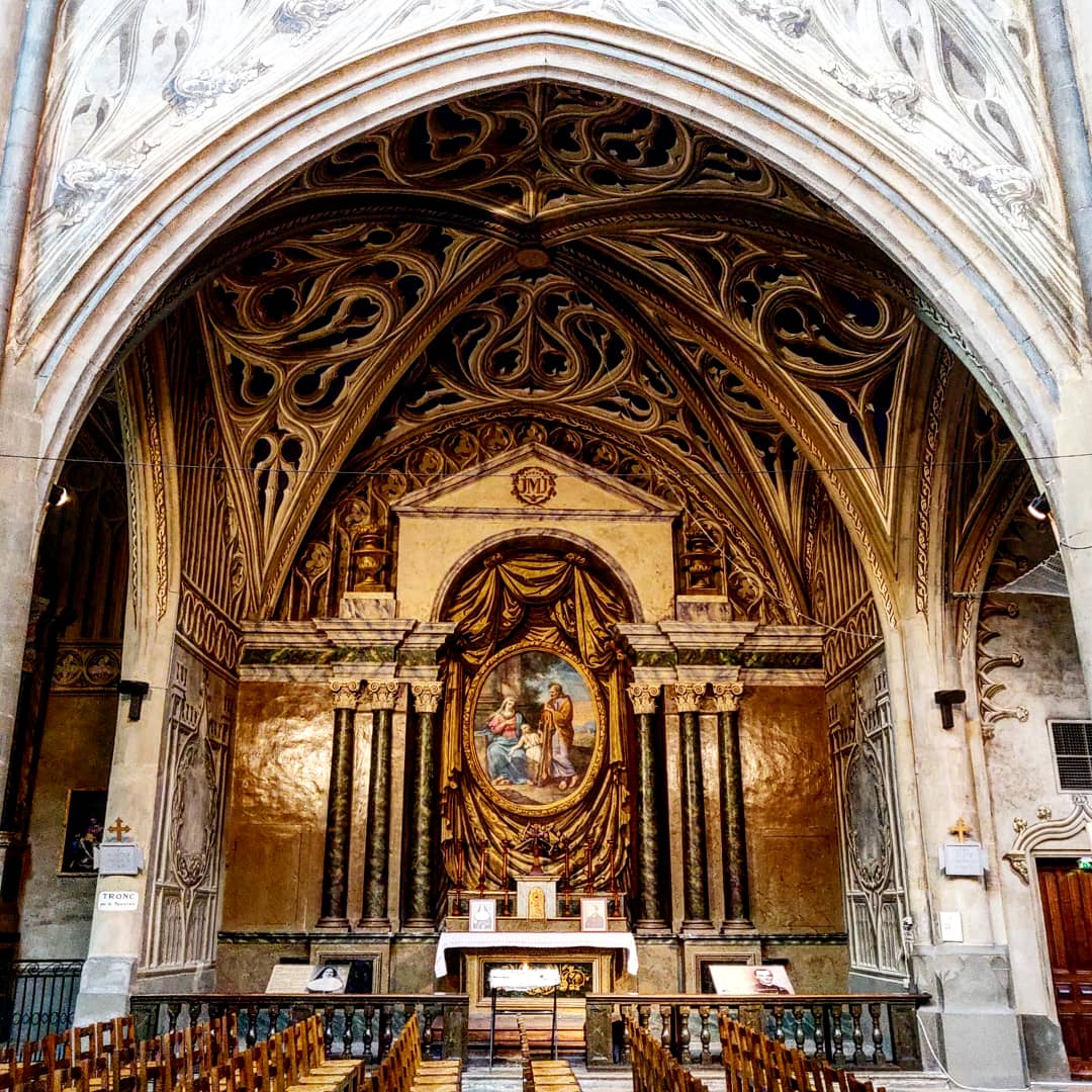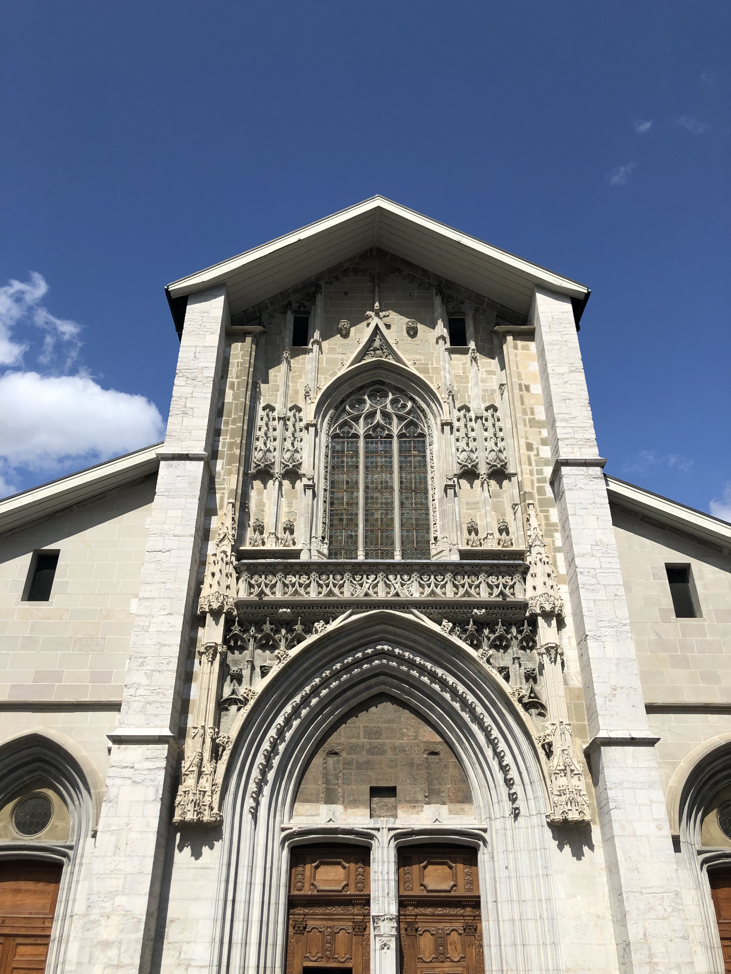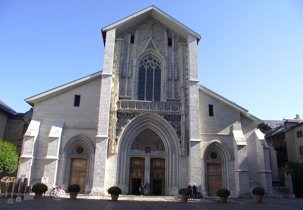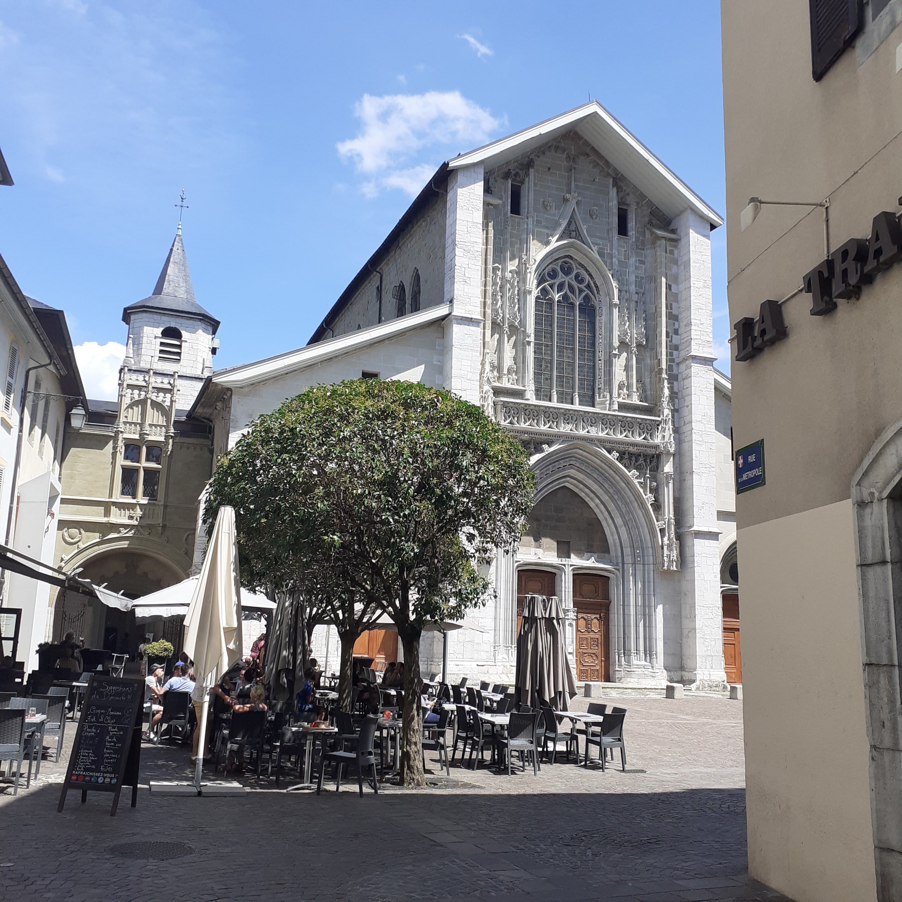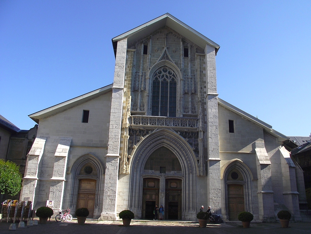 Un lieu sacré qui a perdu son identité. La métropole édifice Franciscain de facture gothique flamboyant du XVI ème siècle n'a pour elle que d'être un lieu religieux de recueillement. Présence d'une copie du St suaire. L'édifice a bénéficié de Restaurations récentes permettant notamment d`admirer le travail mural en trompe l'œil. En revanche, l'esprit actuel qui habite la cathédrale et la déco dénotent totalement avec son origine savoyarde, son histoire::bannières de drapeau français alors que l'invasion française en décembre 1792 a été synonyme de mise à sac de l'église des cordeliers. Jamais depuis le drapeau révolutionnaire n'avait foulé les lieux. Une statue de Jeanne d'arc trône également, alors que les savoyards sujets d'Empire étaient ennemis des français à son époque.