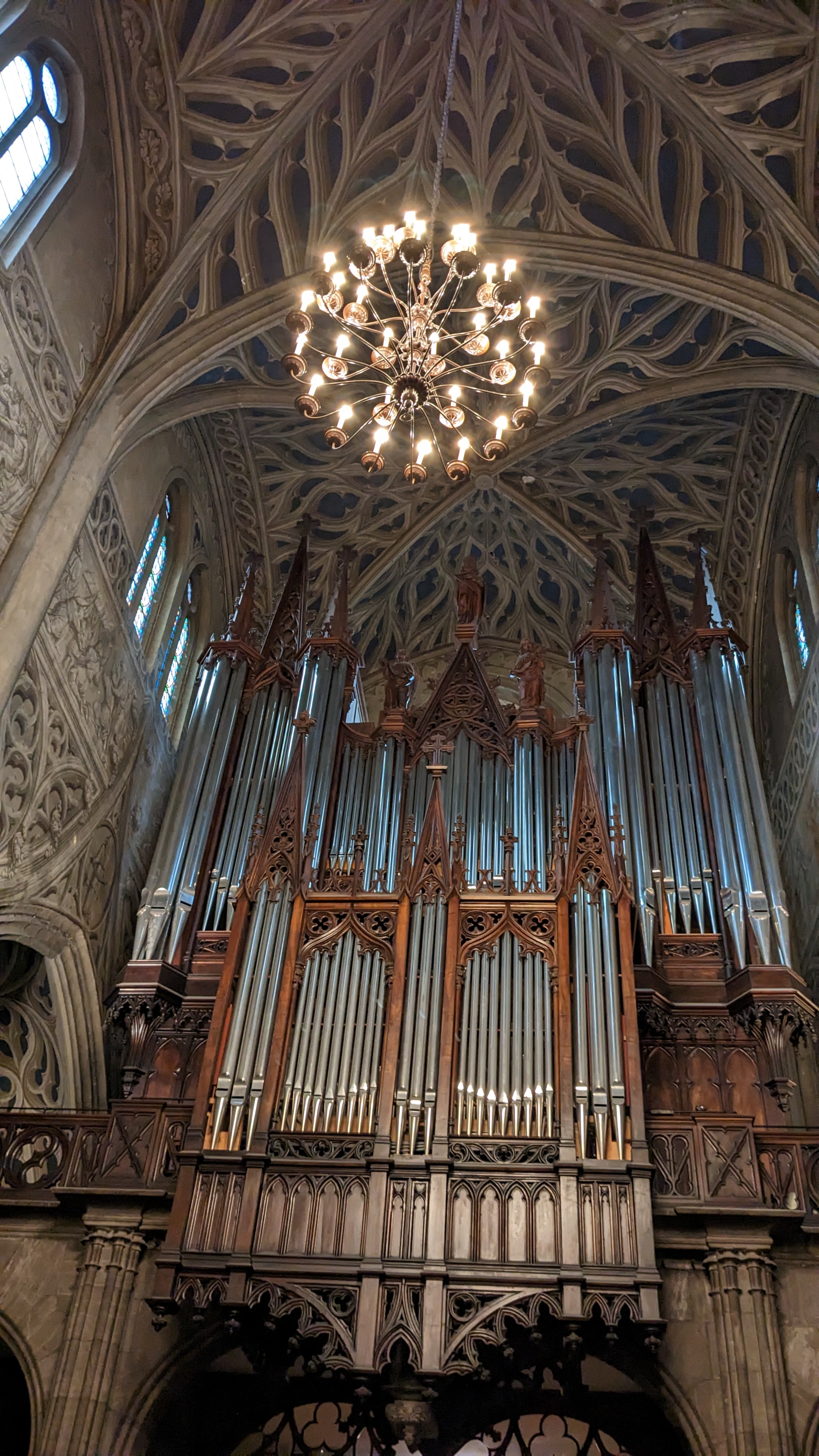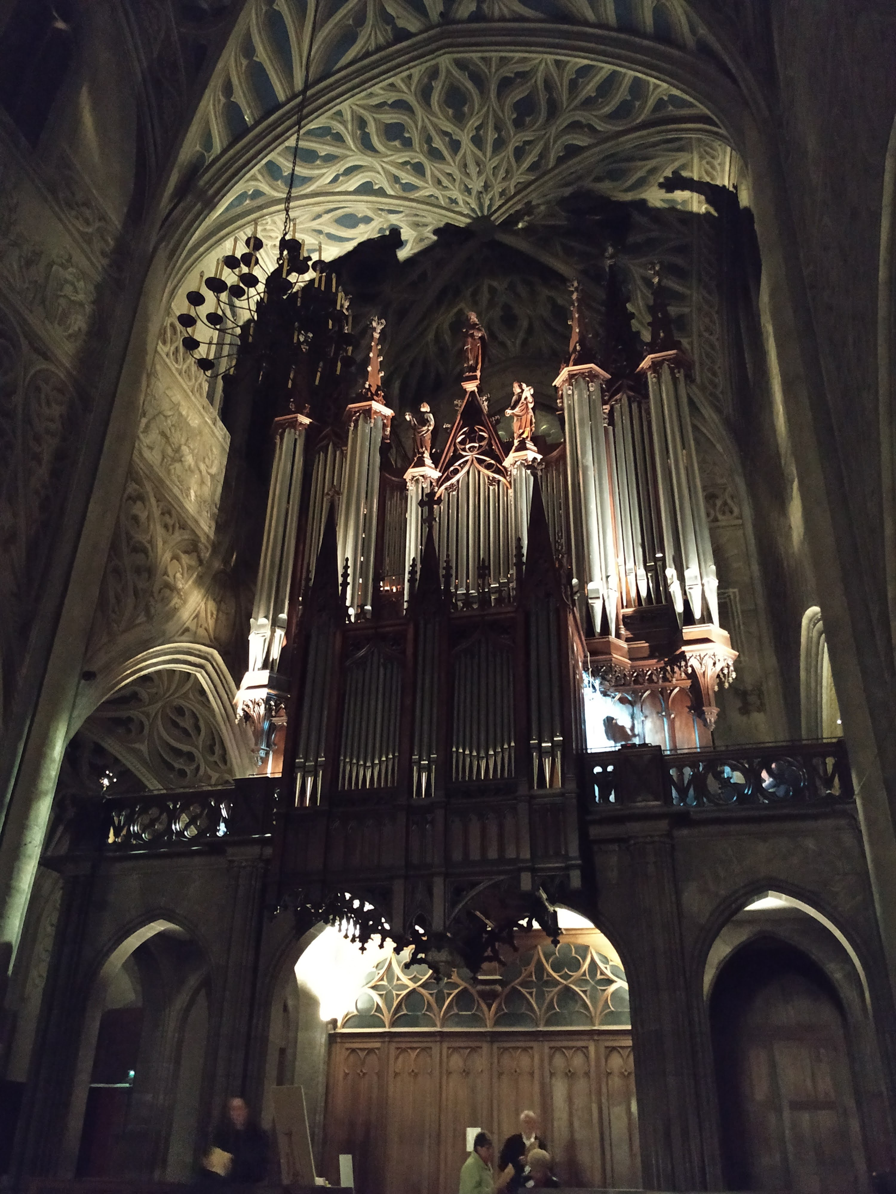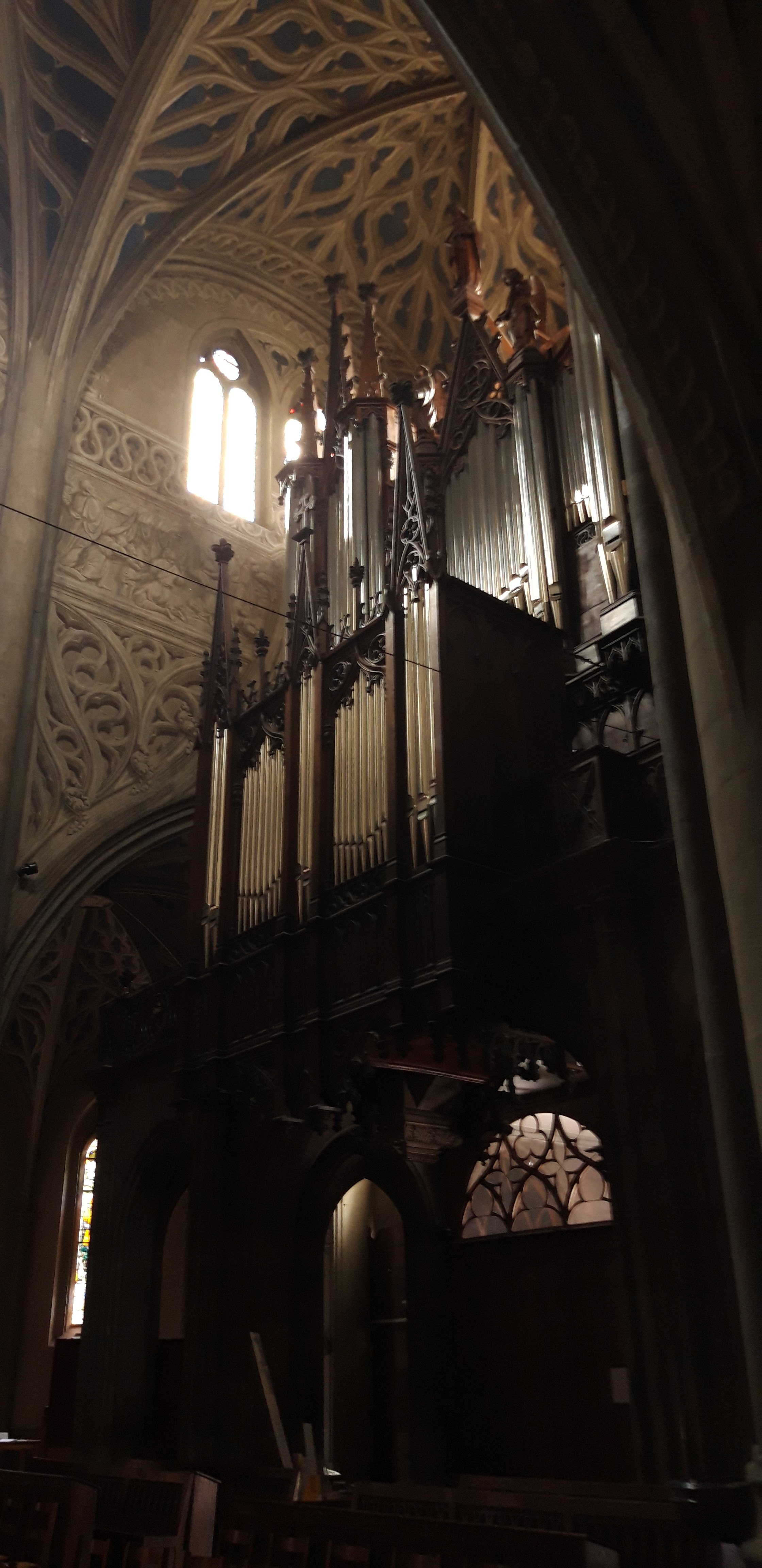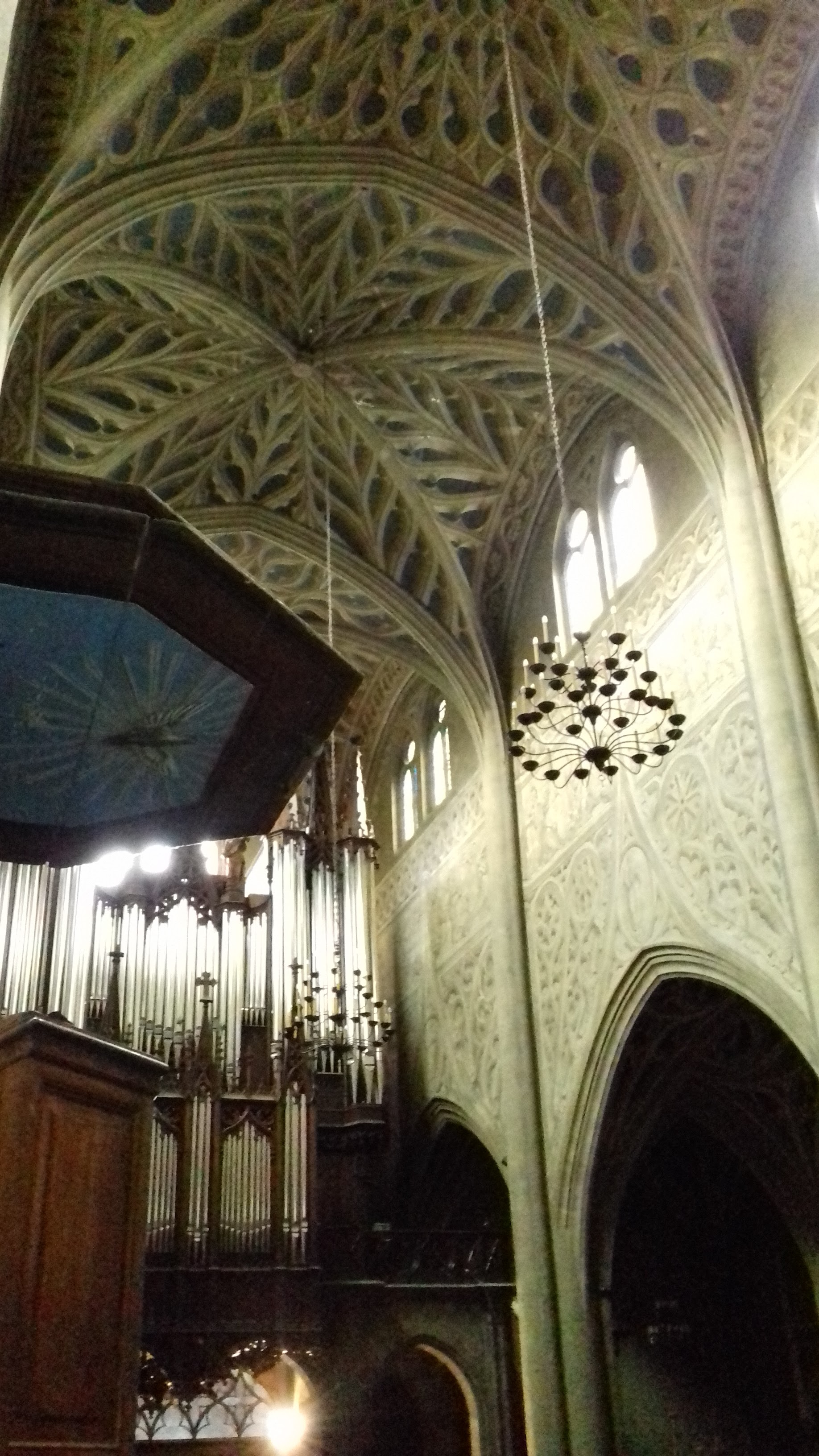 Dans le cadre d'un concert d'orgue (à quatre mains) .Magnifique orgue, beau concert. Belle cathédrale, superbes vitraux et beaux décors en trompe l'œil.