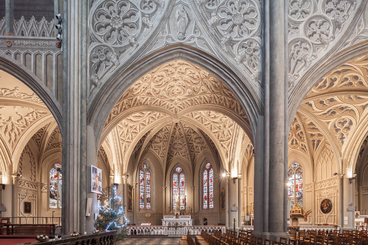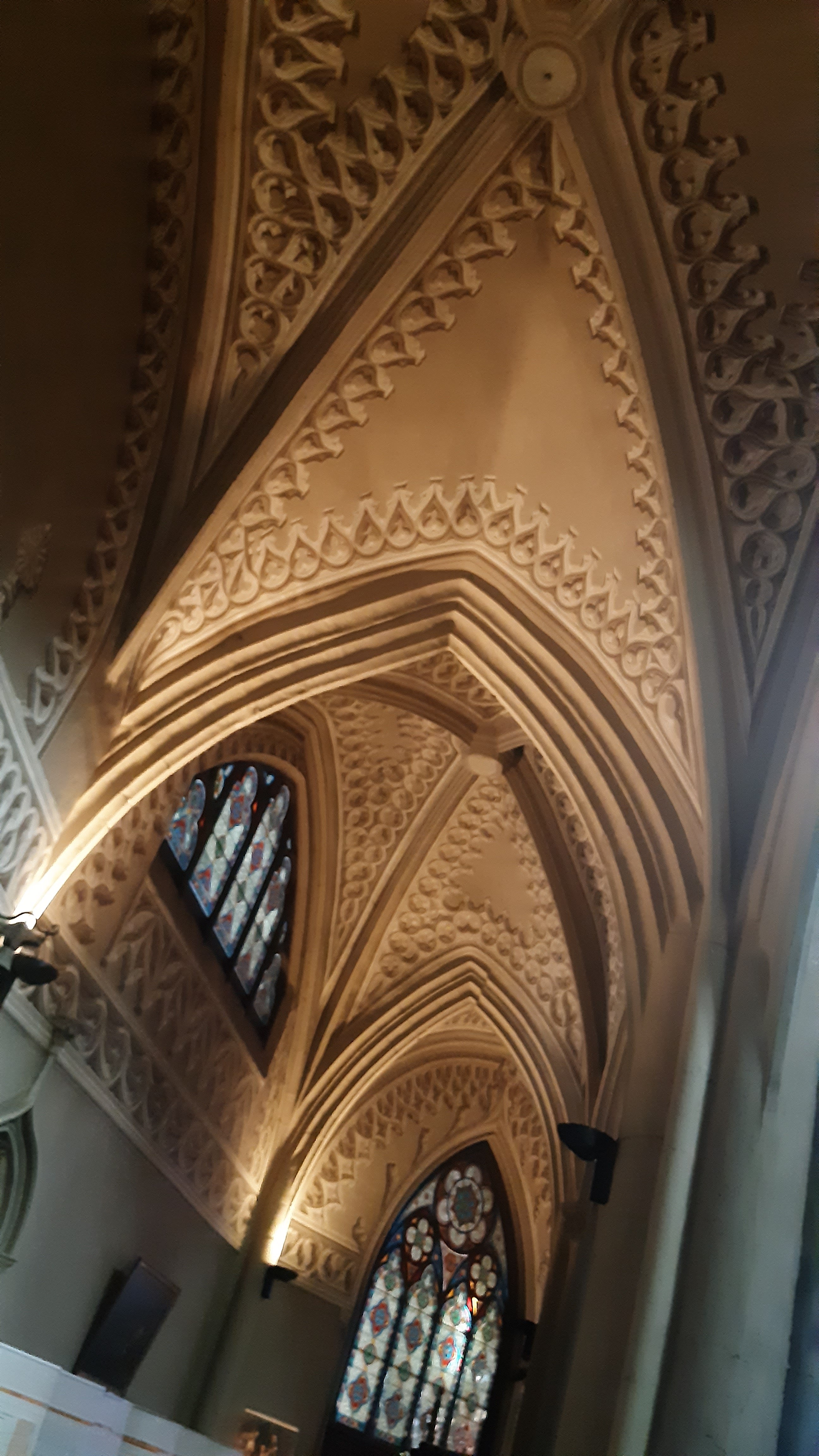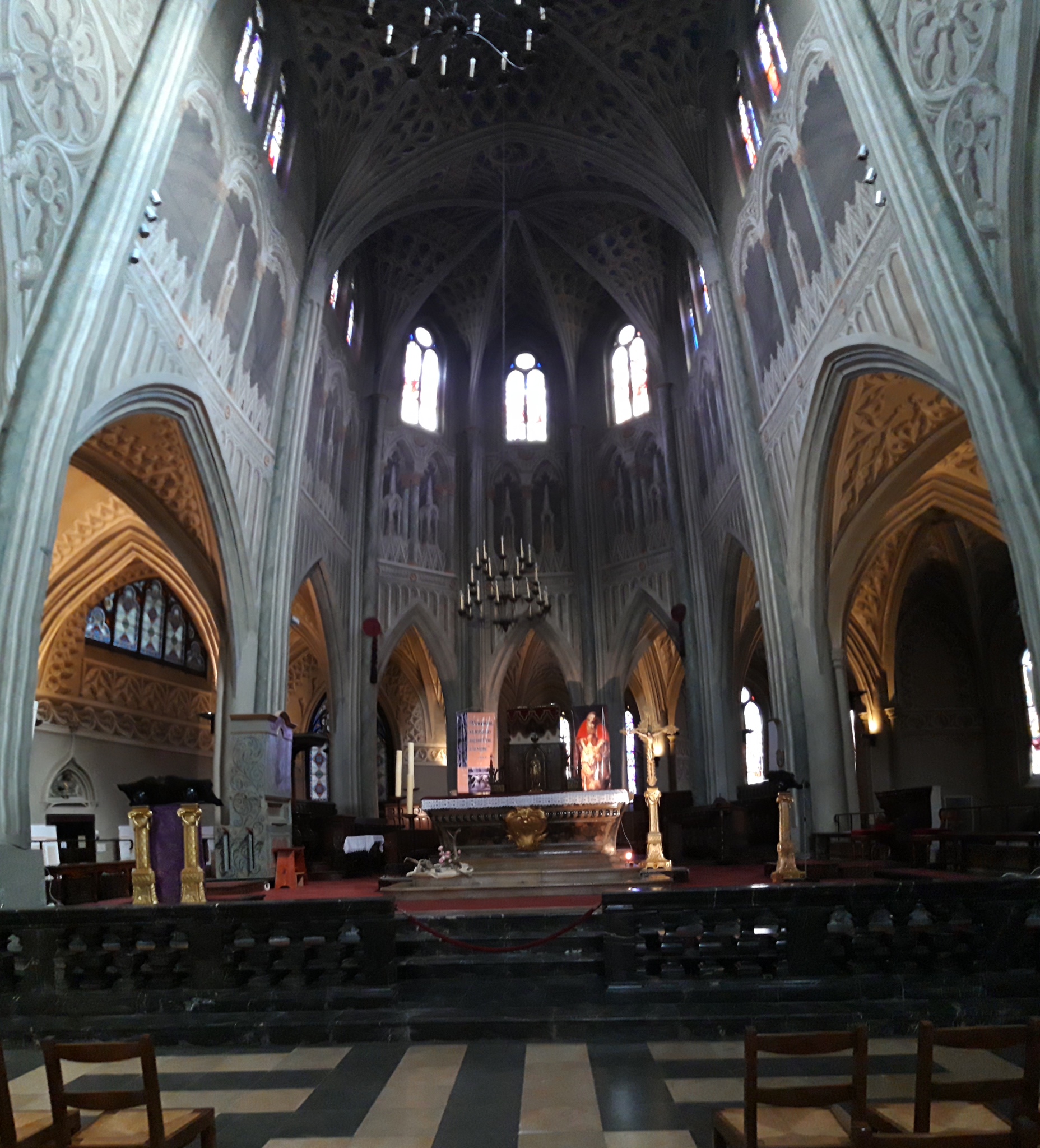 Cette église serait parfaitement banale sans les hallucinants trompe-l'oeil néogothiques qui couvrent voûtes et autres parois. Les fresquistes ont dû (passez-moi l'expression) prendre leur pied et nous ont légué un véritable décor de cinéma ...