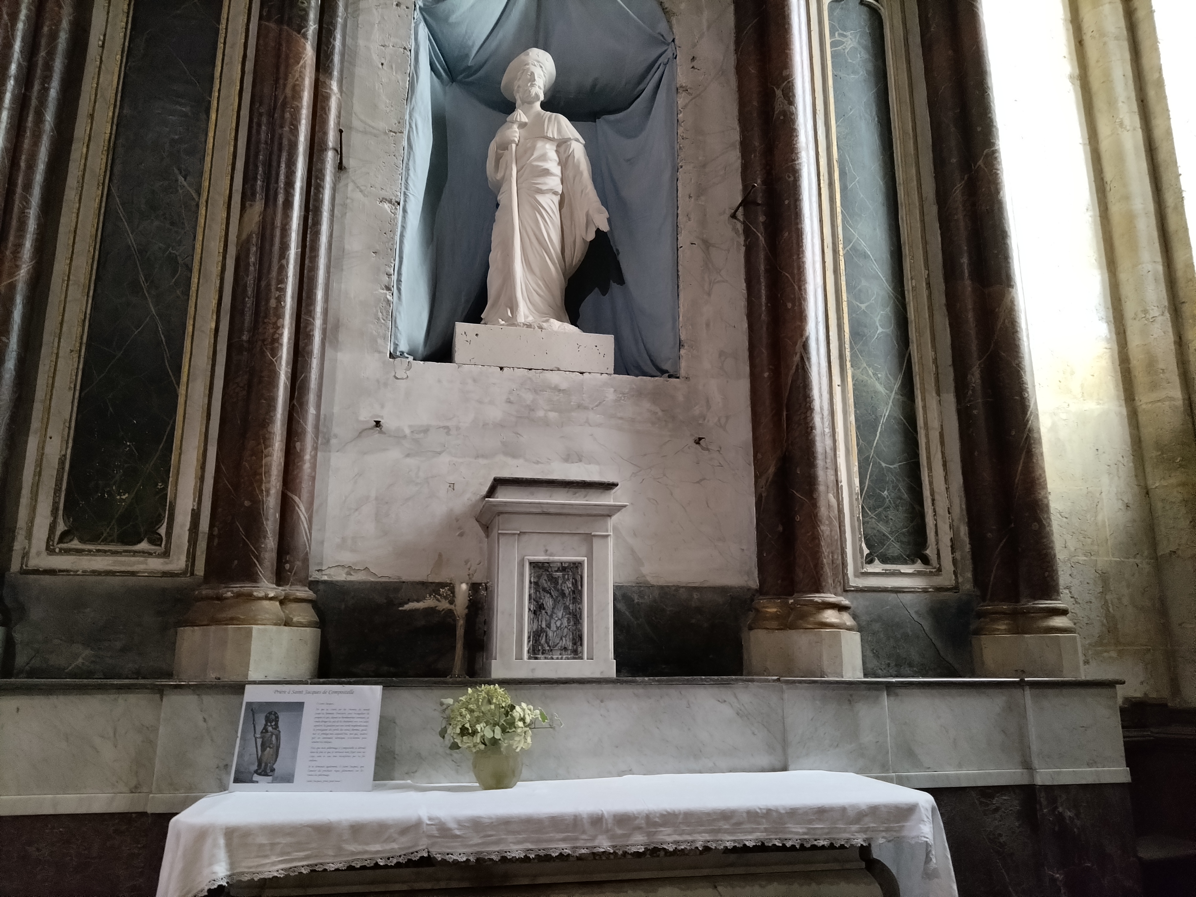 Très belle Cathédrale. Merci pour l'accueil pour les pellerins sur (le camino frances en Espagne) GR 65, la voie du Puy-en-Velay, via Saint Jean Pied de Port et les Pyrénées, jusqu'à Santiago de Compostella. J'ai réussi cela de la Loire (42) du dimanche 28 mai, au dimanche 9 juillet en autonomie Bivouac en 6 semaines, soit 42 jours. Je remercie le Mr Militaire de carrière, qui tenait la permanence ce jour là. Vu le poids du sac plus de 20 kg, j'ai apprécié son geste de m'aider à le remettre sur les épaules. Il me dit : j'étais militaire, dans le civil. Malgré les conditions vraiment difficile, pour un retraité de 64 ans, je me dis : il faut aller, jusqu'à Santiago de Compostella et je l'ai fait. J'ai écouté simplement m'a raison de ne rien lâcher en chemin, même pas les ragots, me disant d'arrêter, vu les blessures que j'avais. En même temps, sortons, du système économique commercial sur Compostelle et remettre, l'église au centre du village. Les pellerins s'en porteront mieux !
