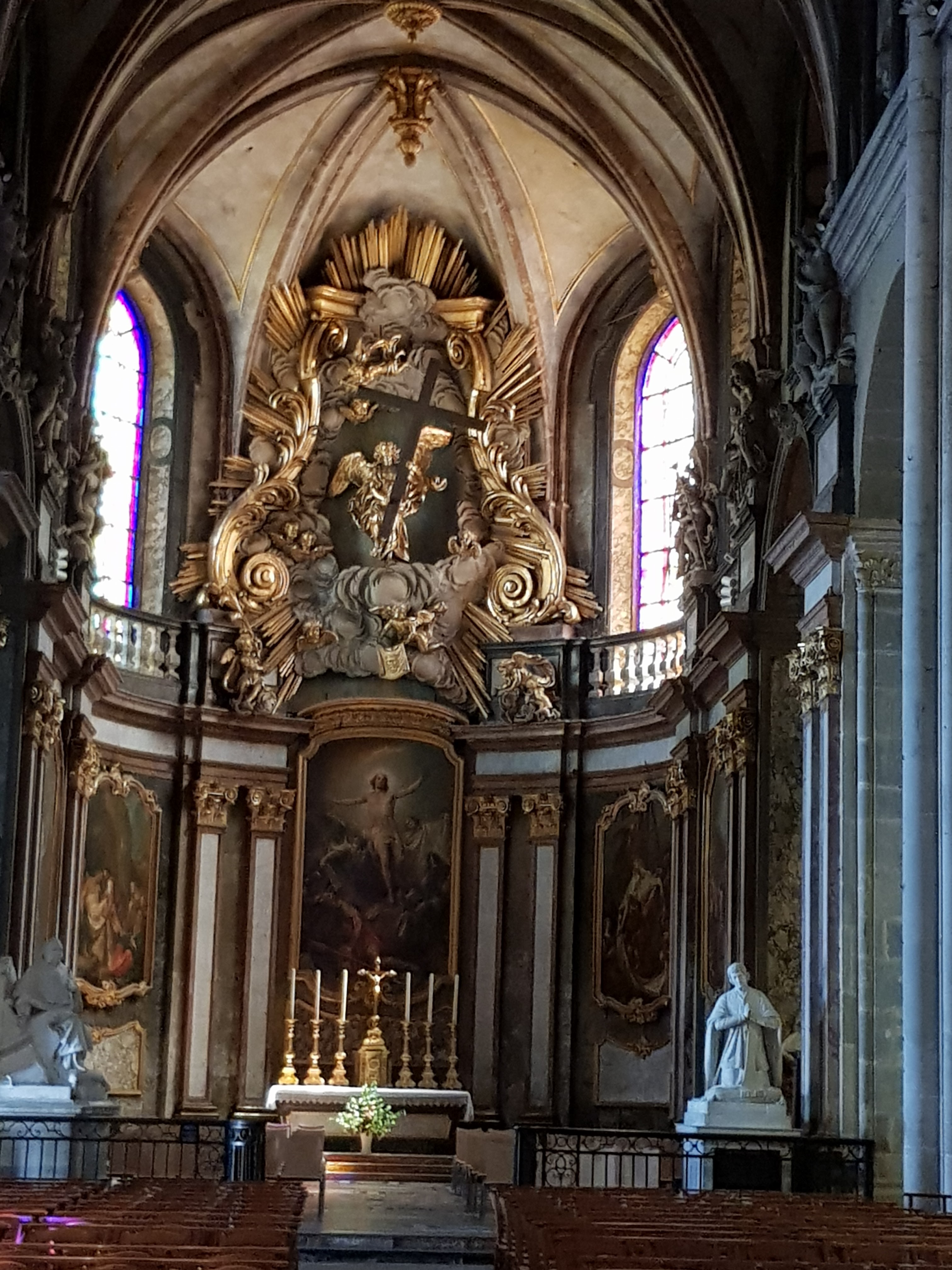 Parmi les cathédrales du pays, elle se classe clairement dans les cathédrales mineures (petite, pas de transept, ni façade, ni parvis, vitraux moches des 19ème et 20ème siècles). Une ou deux originalités : deux choeurs (un à chaque extrémité de la nef), un chapeau cardinalice suspendu dans le coeur (Granvelle). Pas désagréable, et donc à voir au niveau local, mais pas au delà.