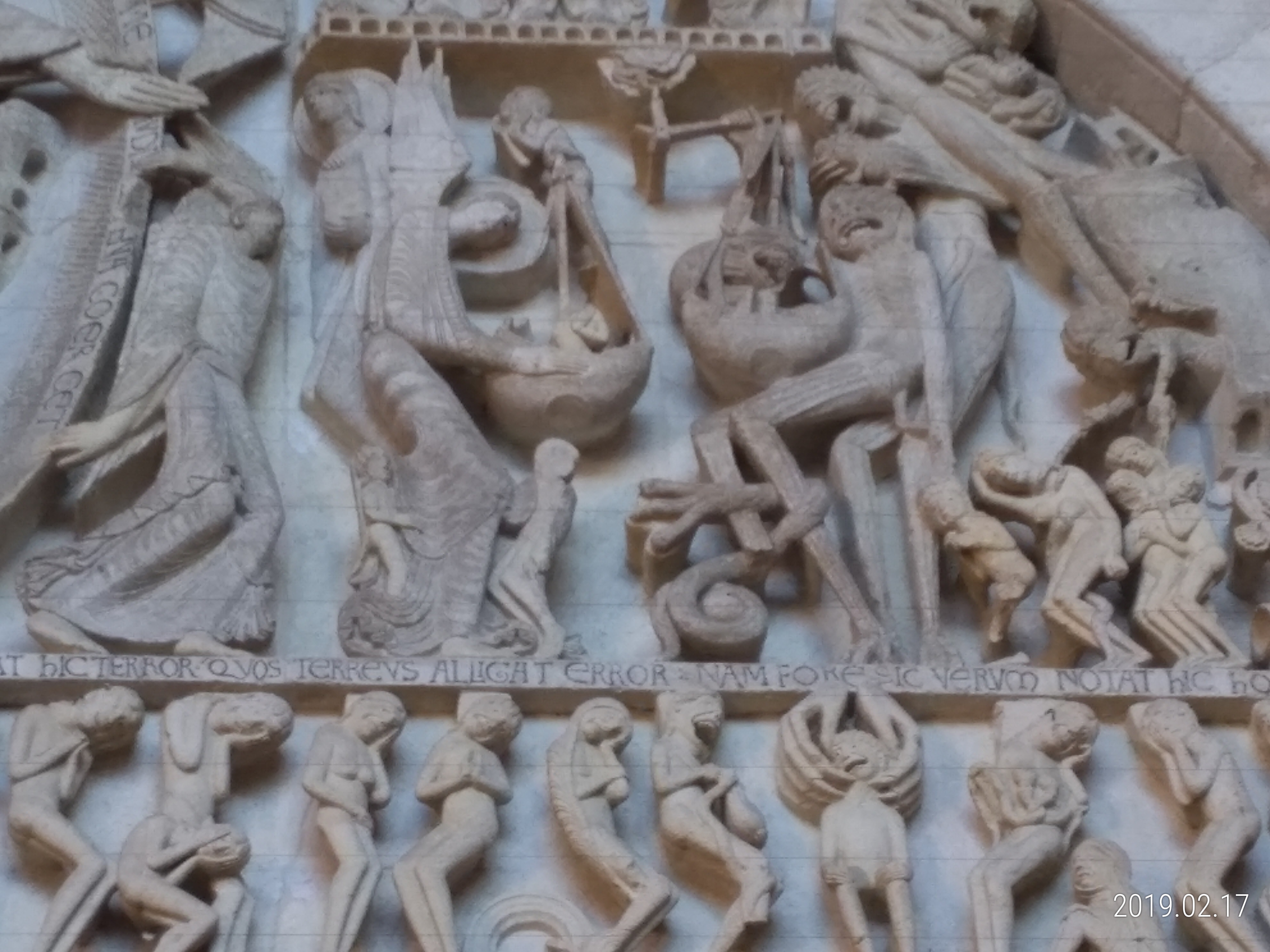 Beau tympan digne de Conques ou Vezelay. Cathédrale en travaux, la nef est inaccessible, seul le Choeur se visite.
