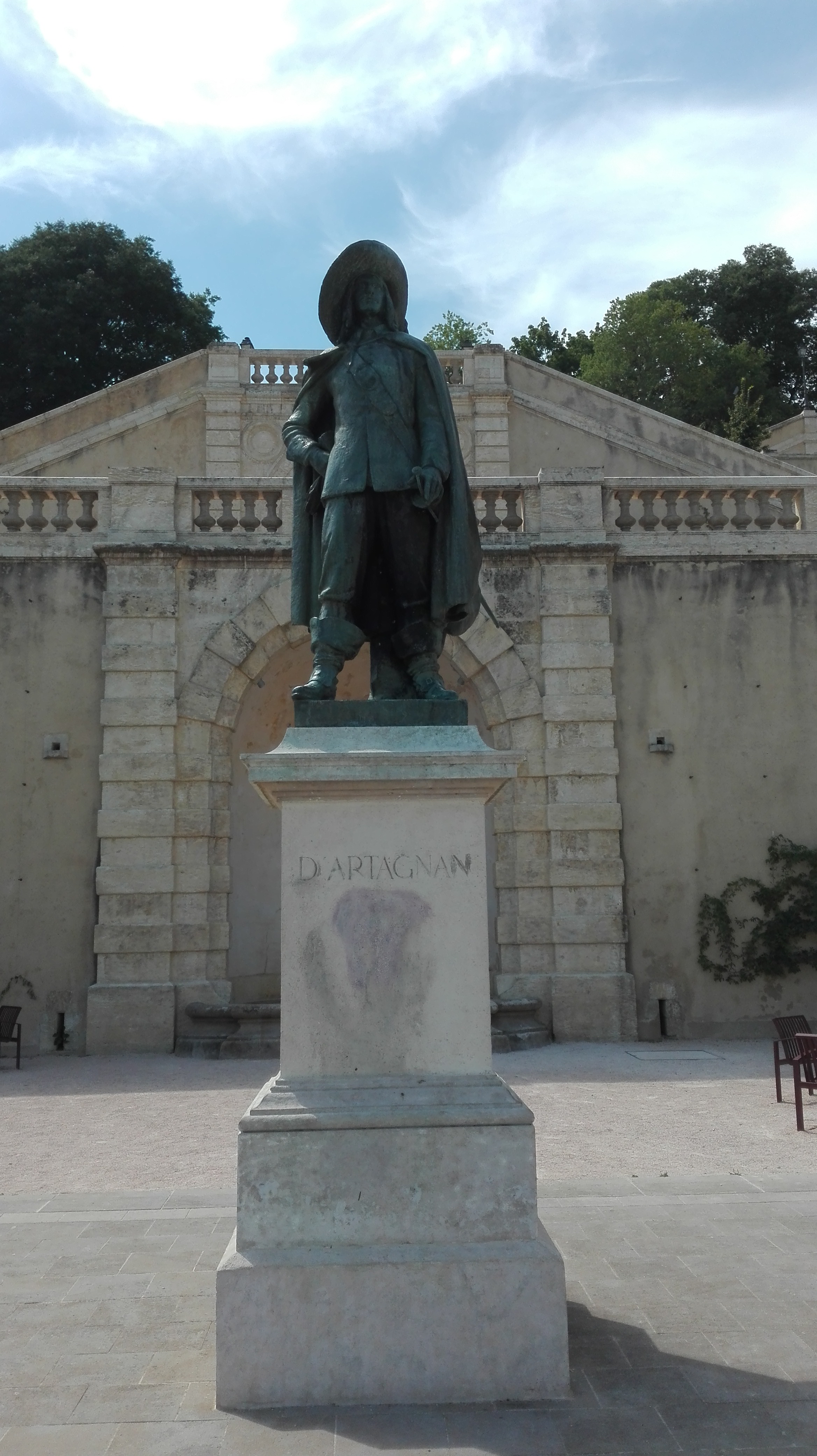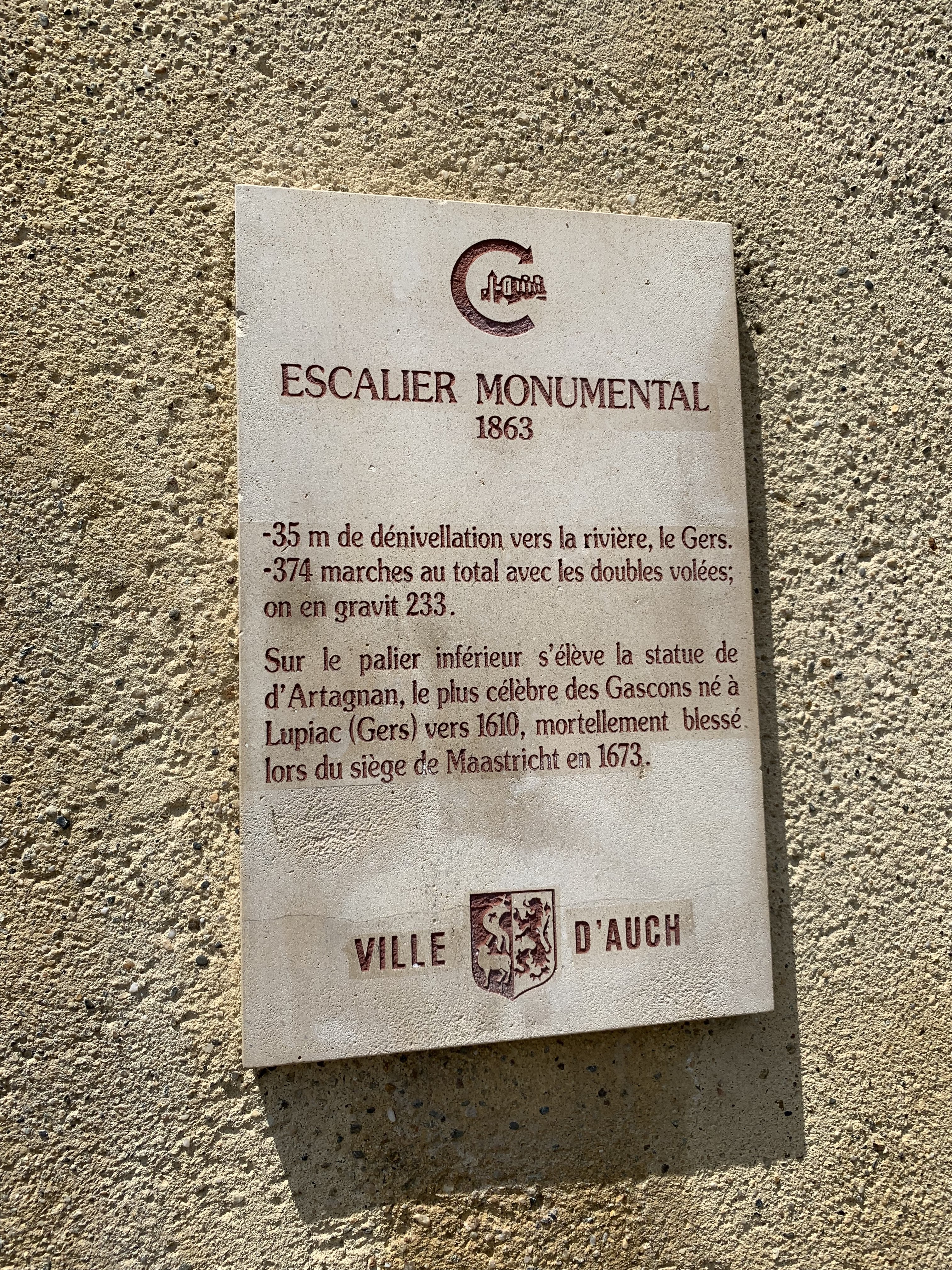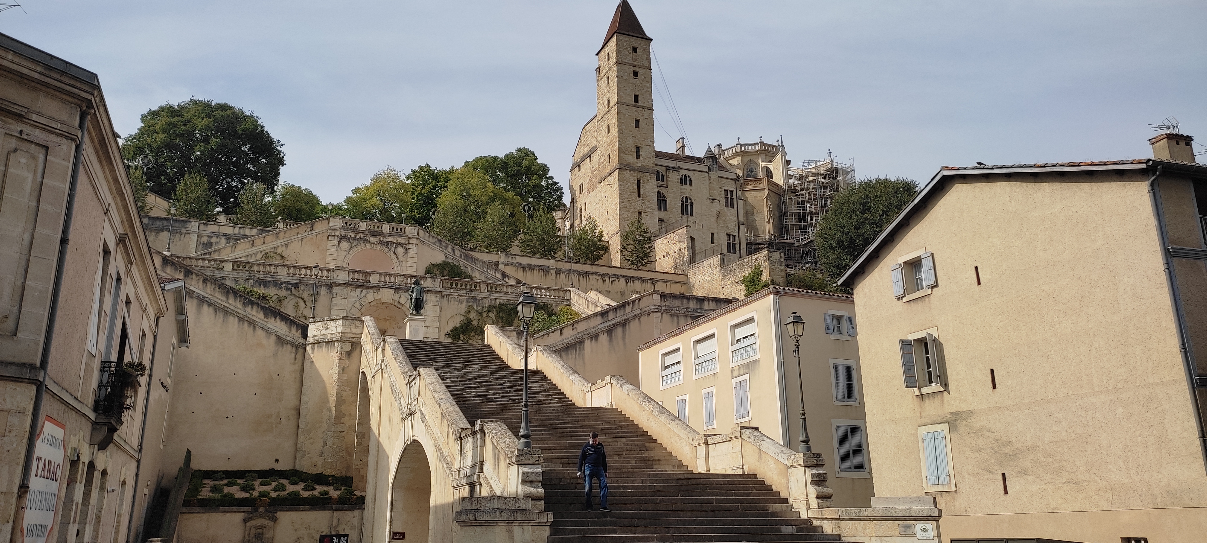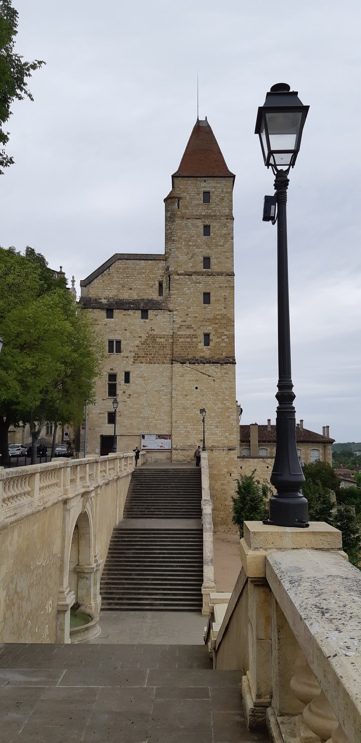 La vieille ville est située sur une colline avec cette cathédrale entourée d un bourg composé d anciennes batisses. L escalier est impressionnant avec a son départ la statue de d Artagnan. Dommage que le musée ne soit pas encore ouvert. Cela fait deux fois que nous passons dans cette ville pour le visiter.