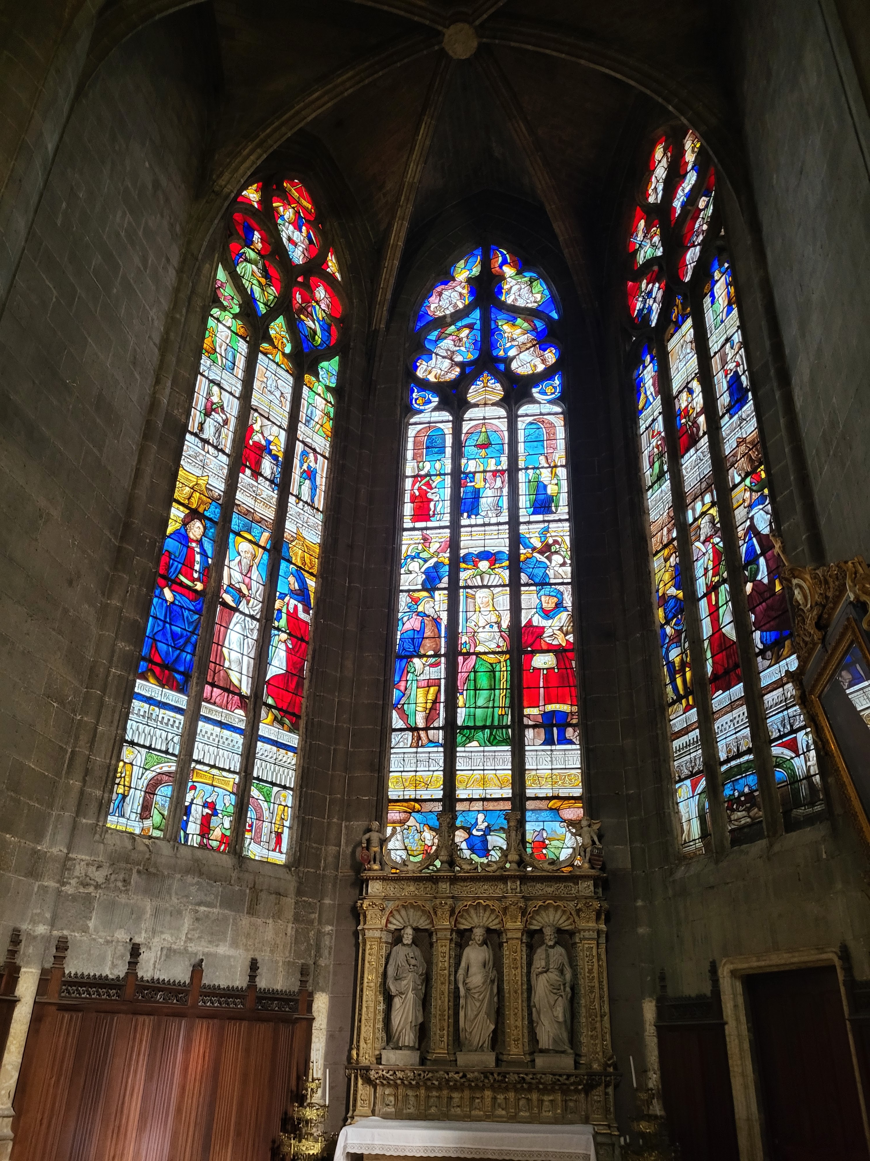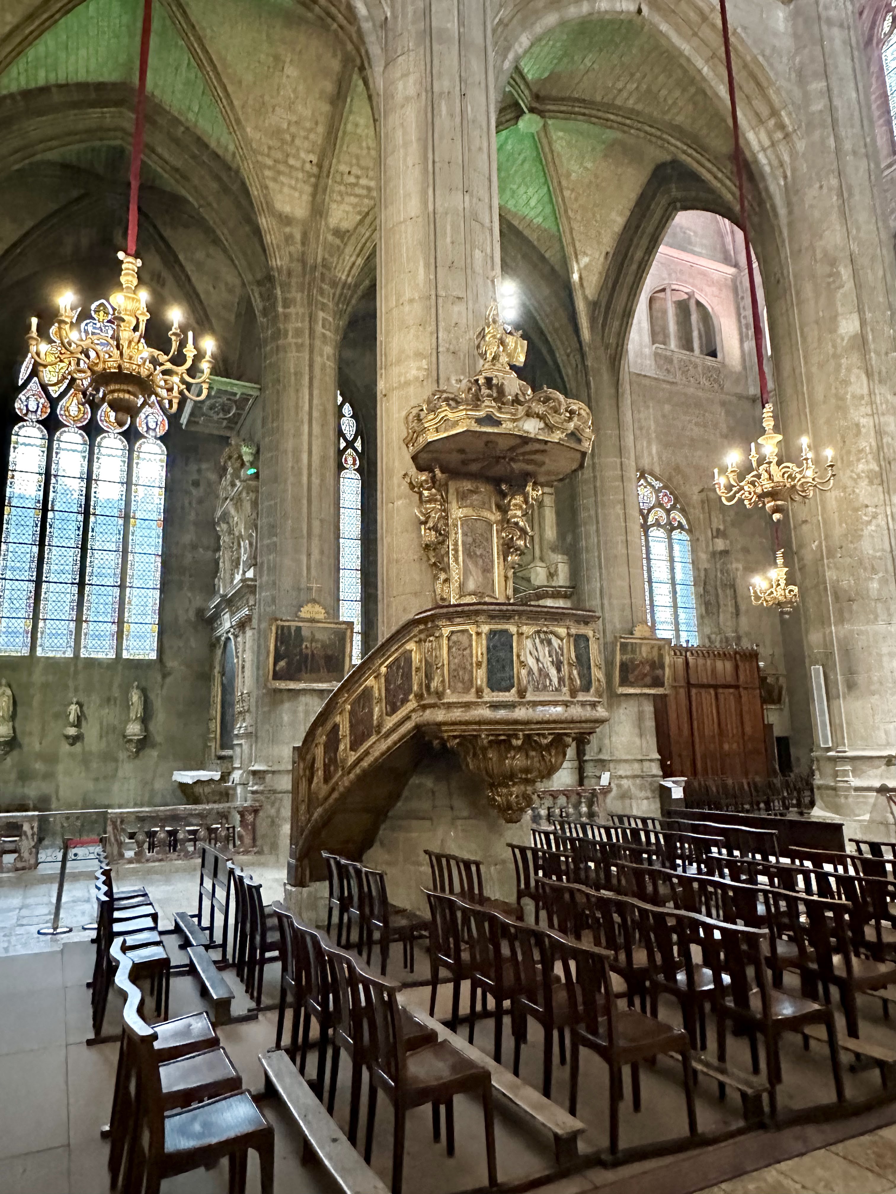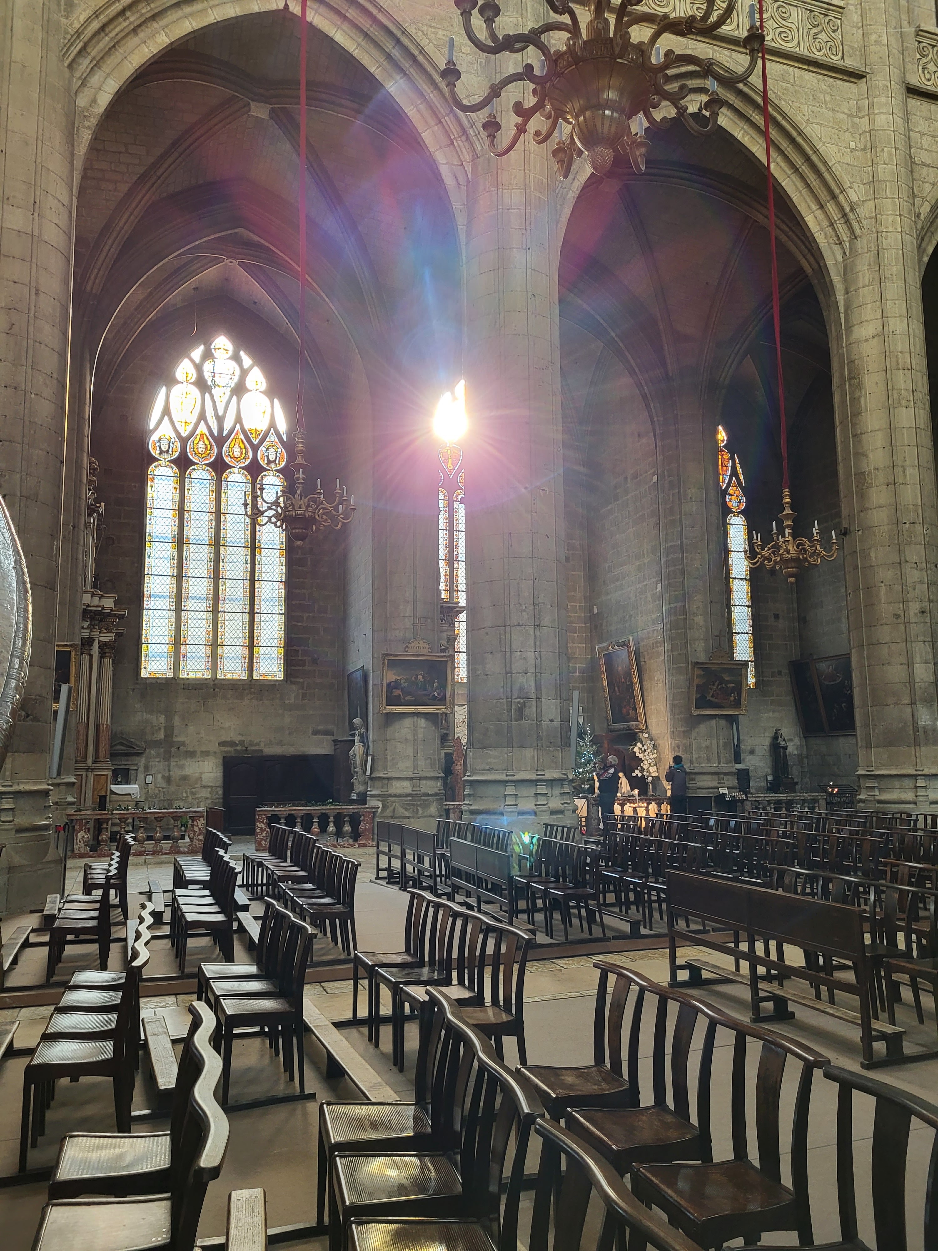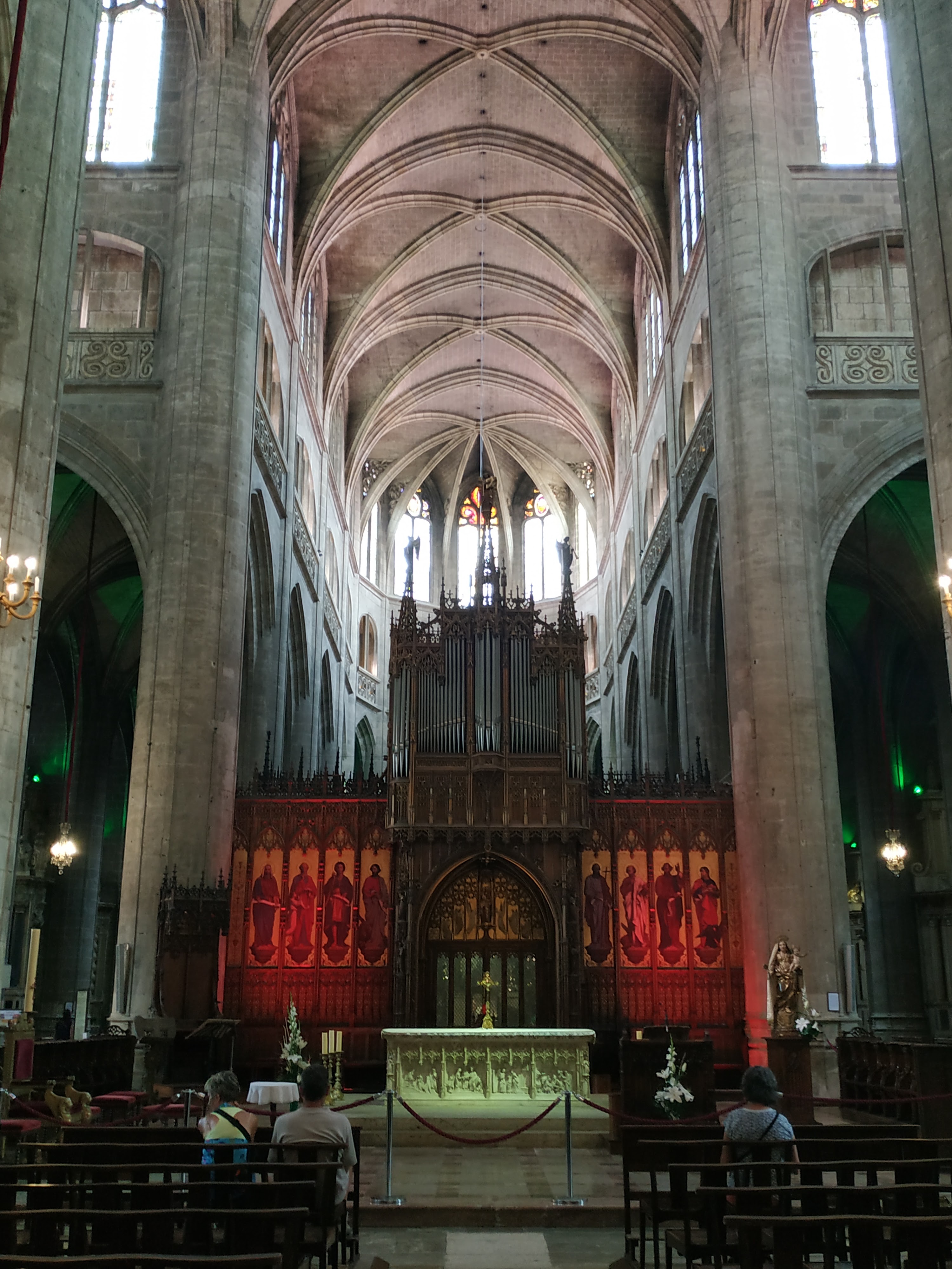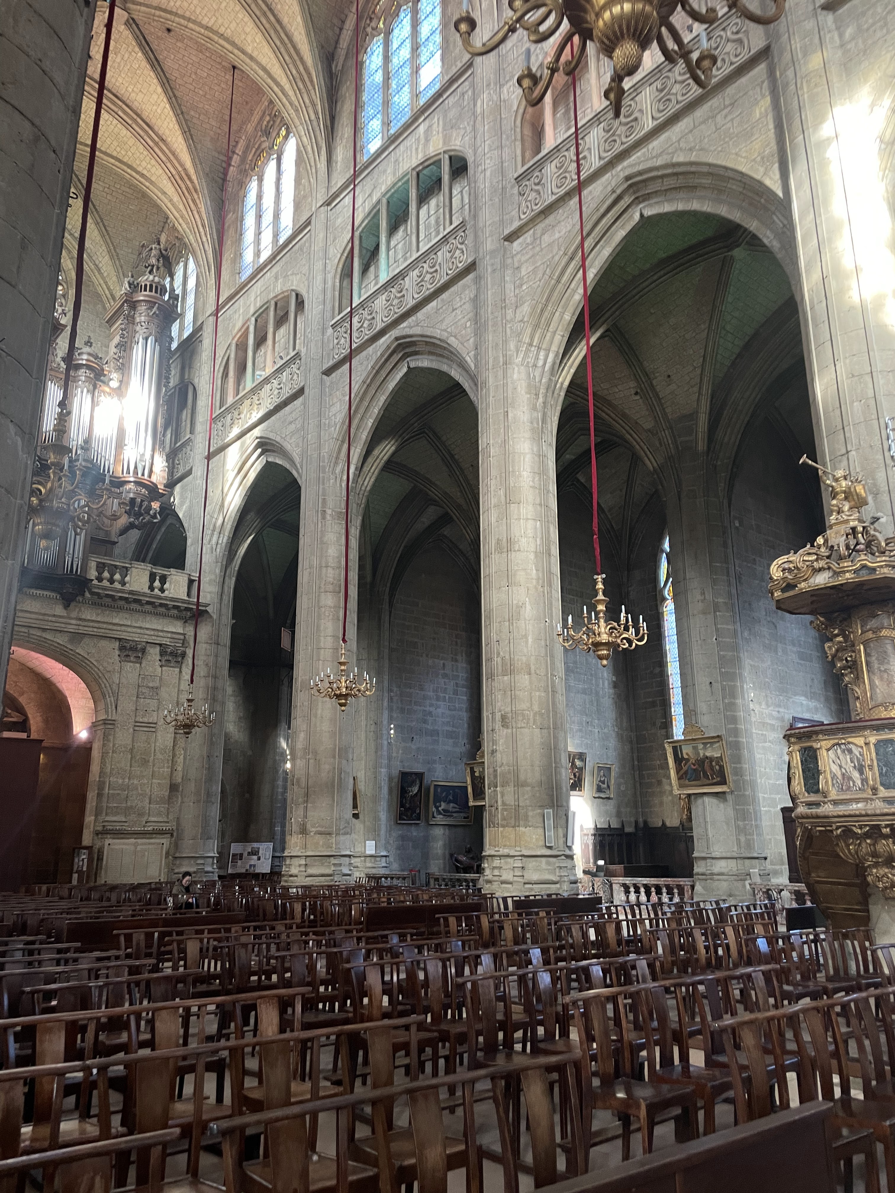 Magnifique cathédrale avec de remarquables vitraux un chœur en bois sculpté très riche des chapelles très variées 2 orgues remarquables : une visite incontournable à Auch
