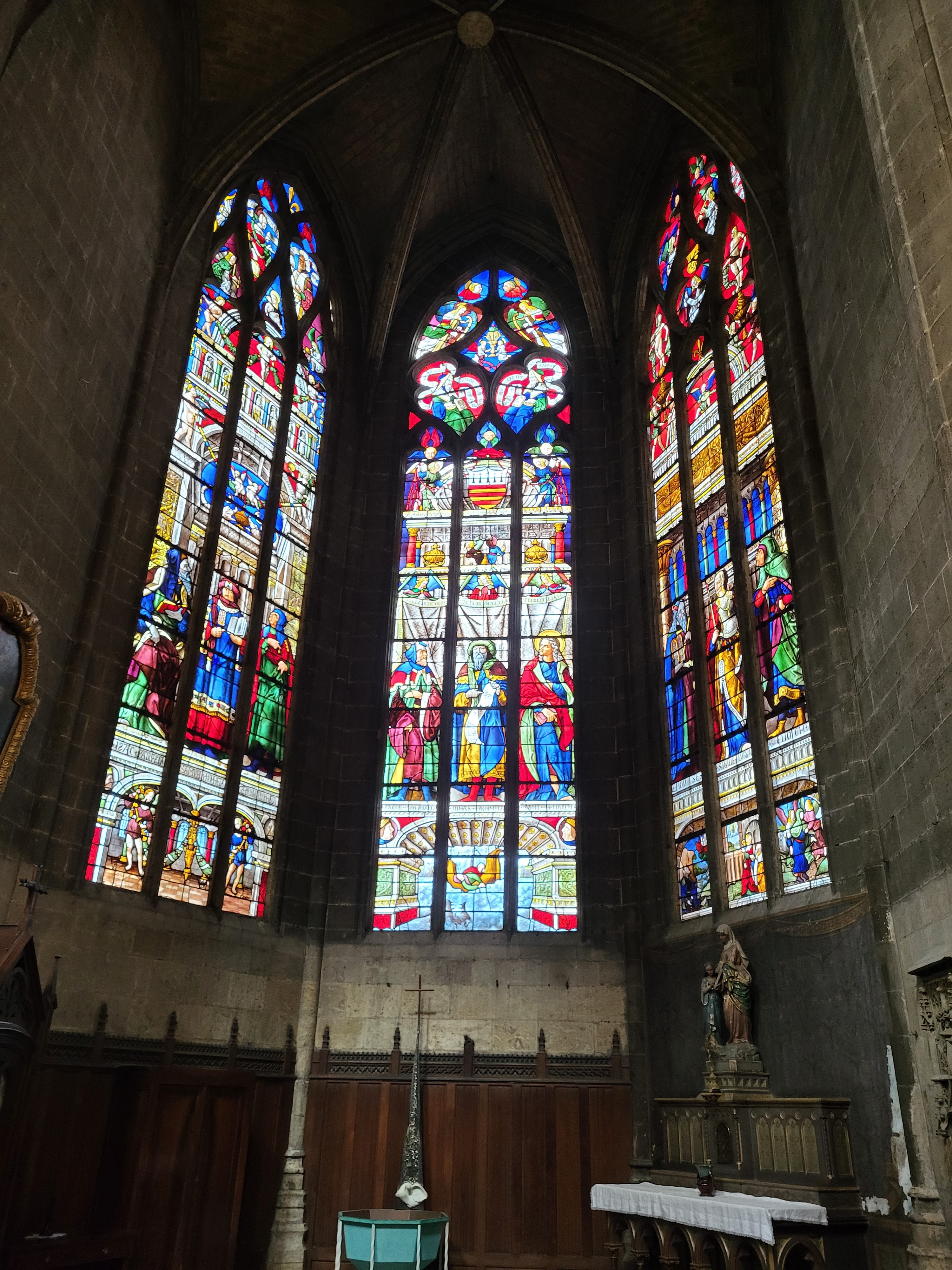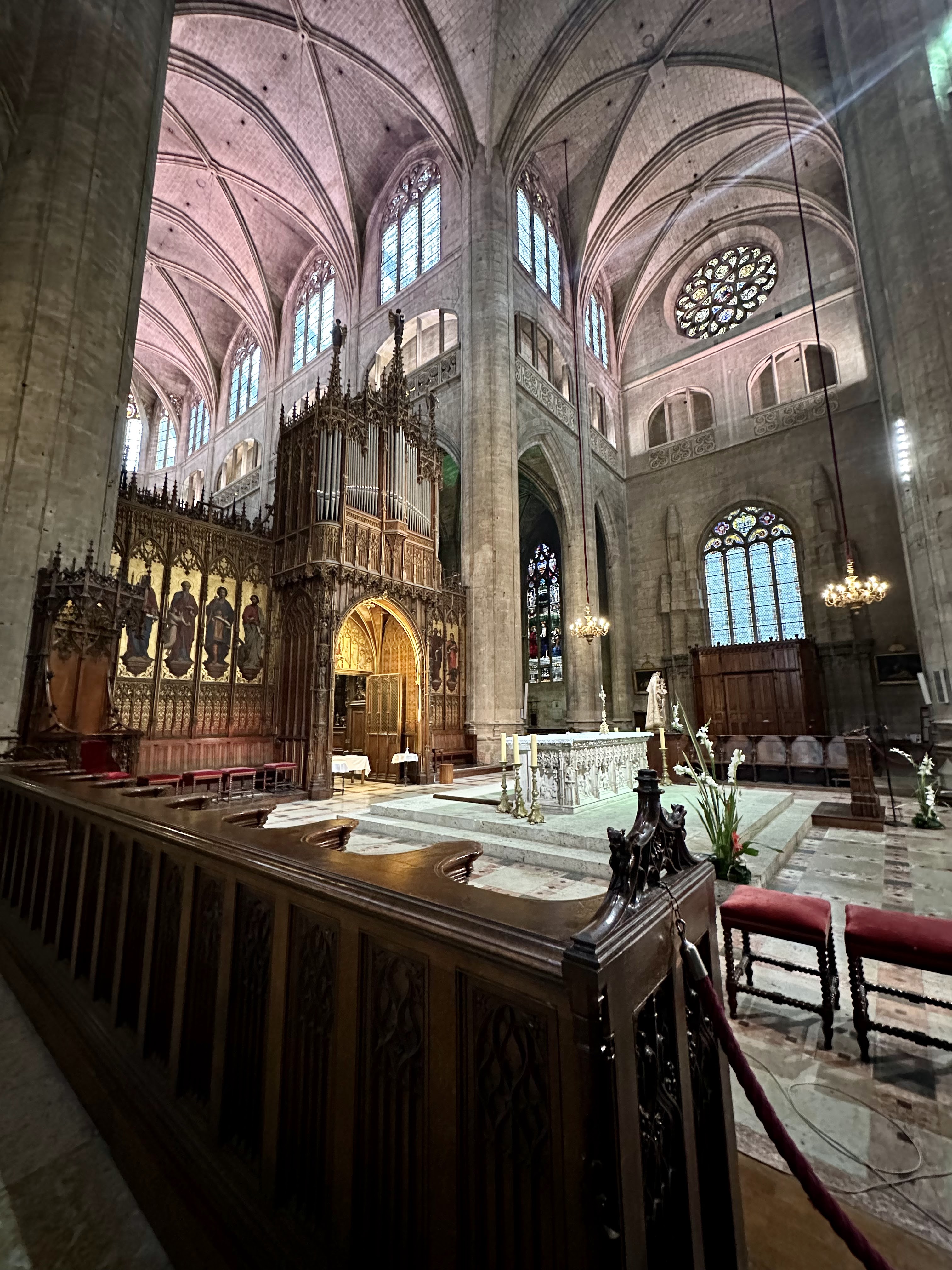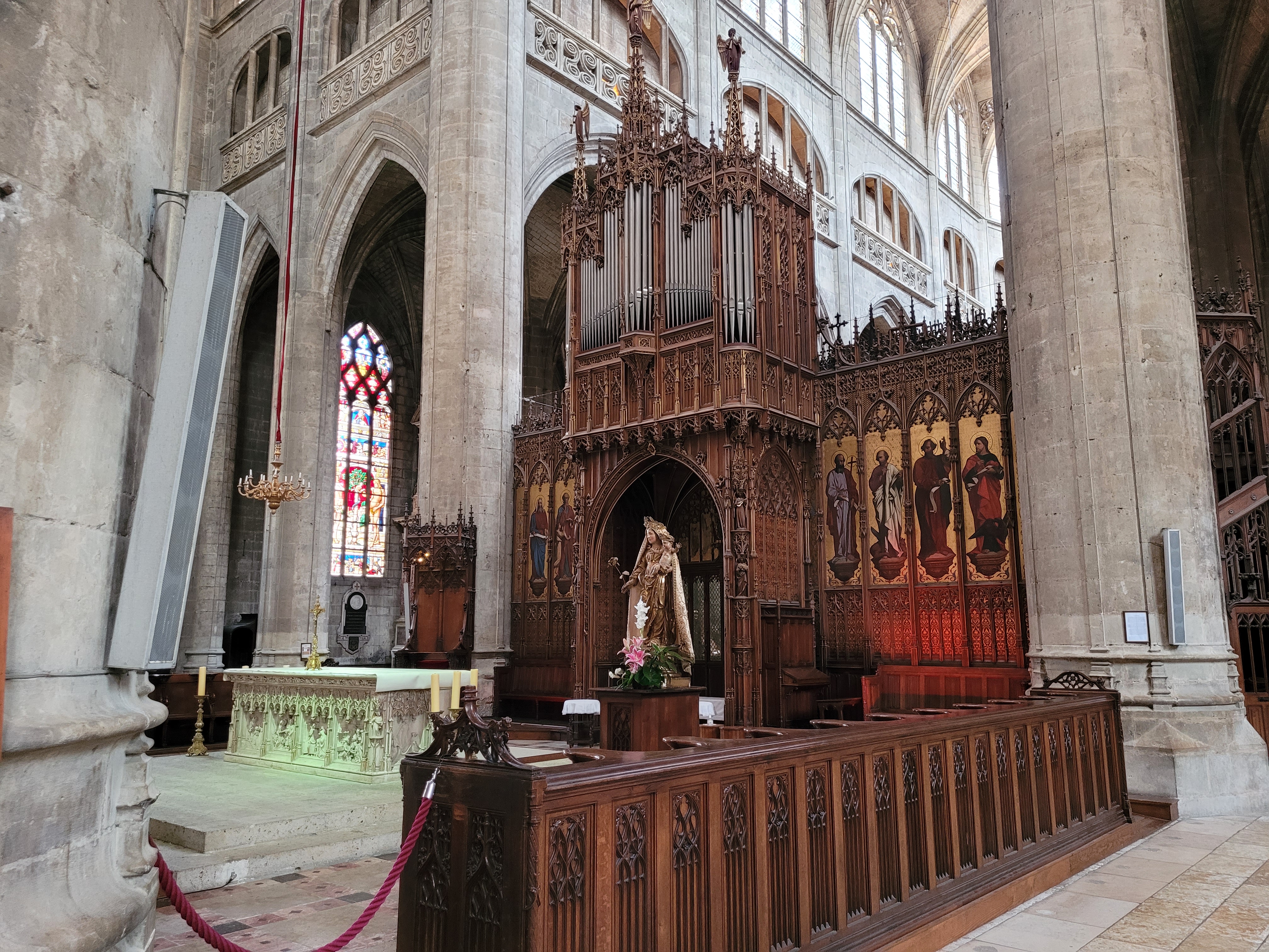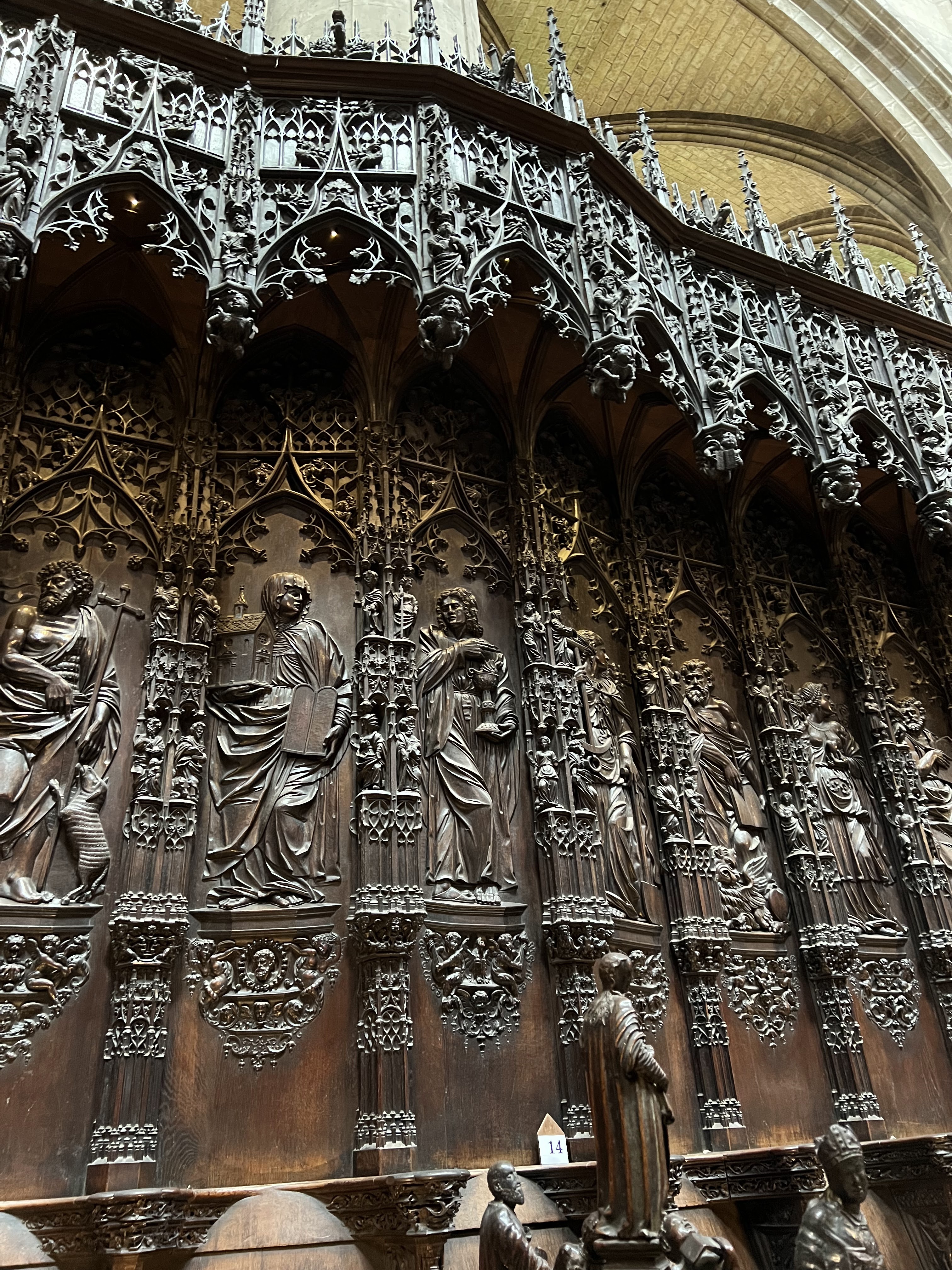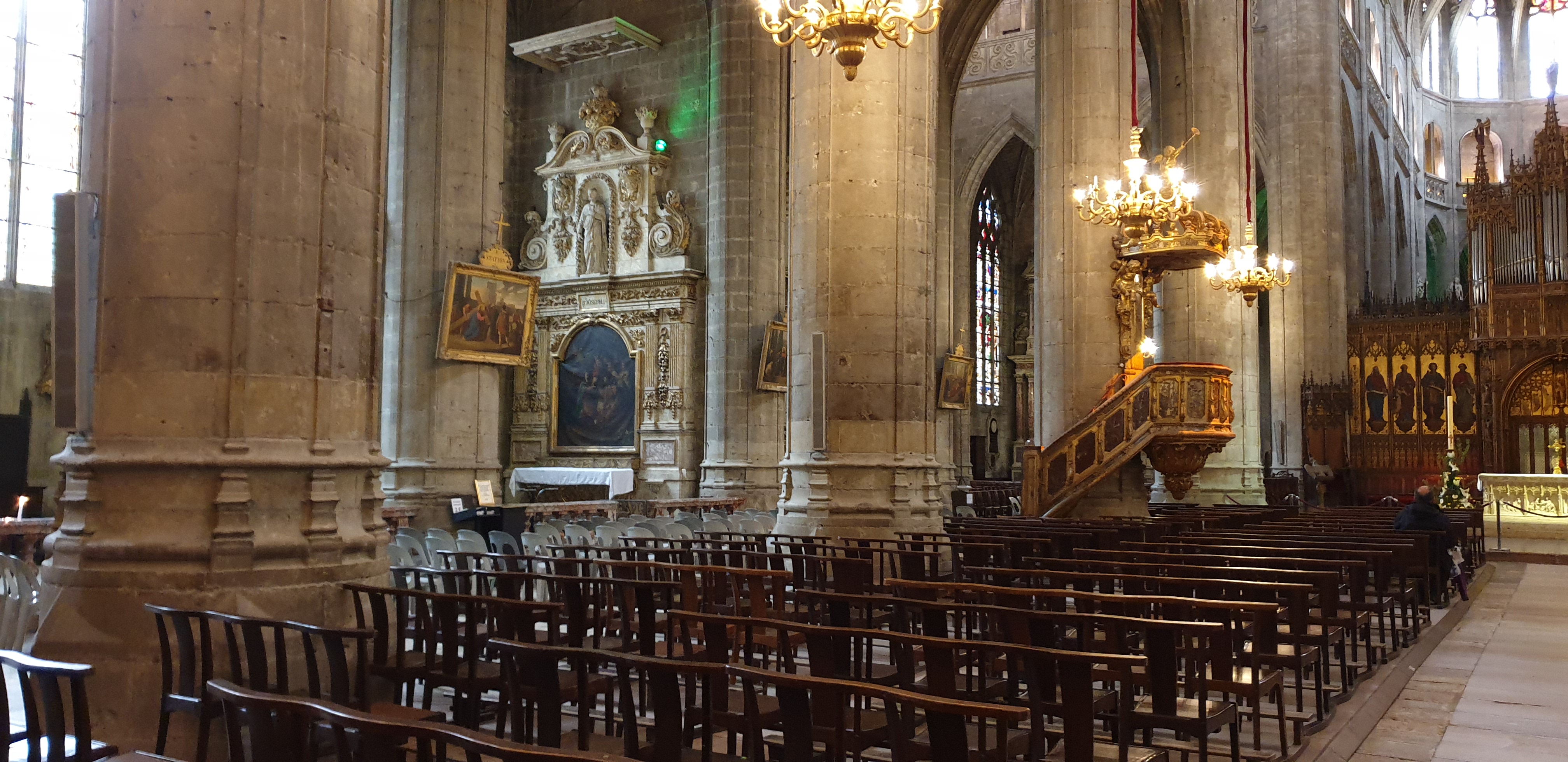 Je suis souvent passé devant cette cathédrale en admirant l'extérieur sans prendre le remps d'y entrer. Mais sachant que je ne viendrai plus dans la région avant longtemps, j'ai poussé la porte. Dans le choeur une curiosite remarquable. Les 113 stalles en chêne sculptées de personnages bibliques datant su 16ème siecle. Prevoir 2,50 euros pourla visite (😒) Les vitraux du 16eme également sont magnifiques.