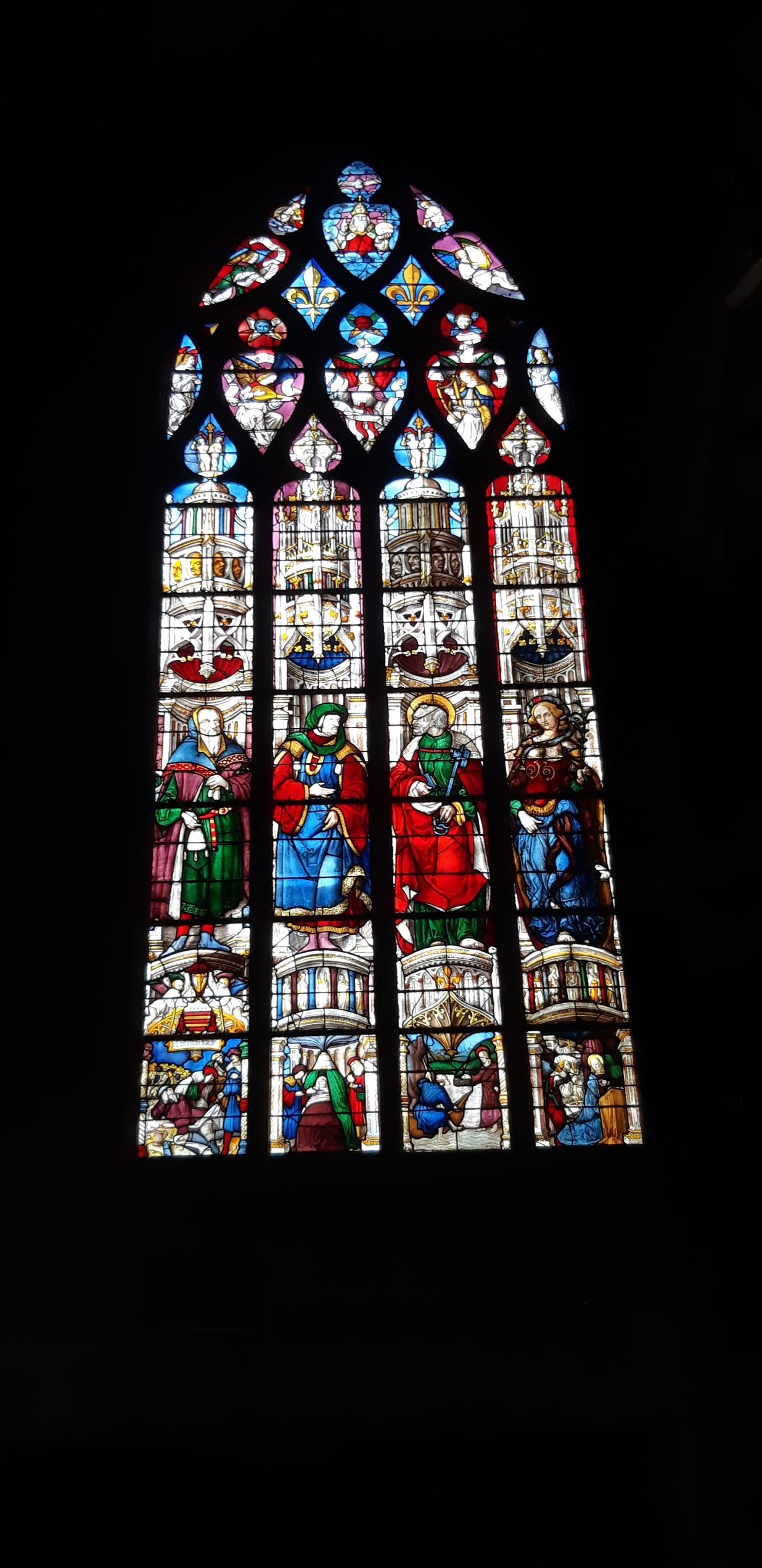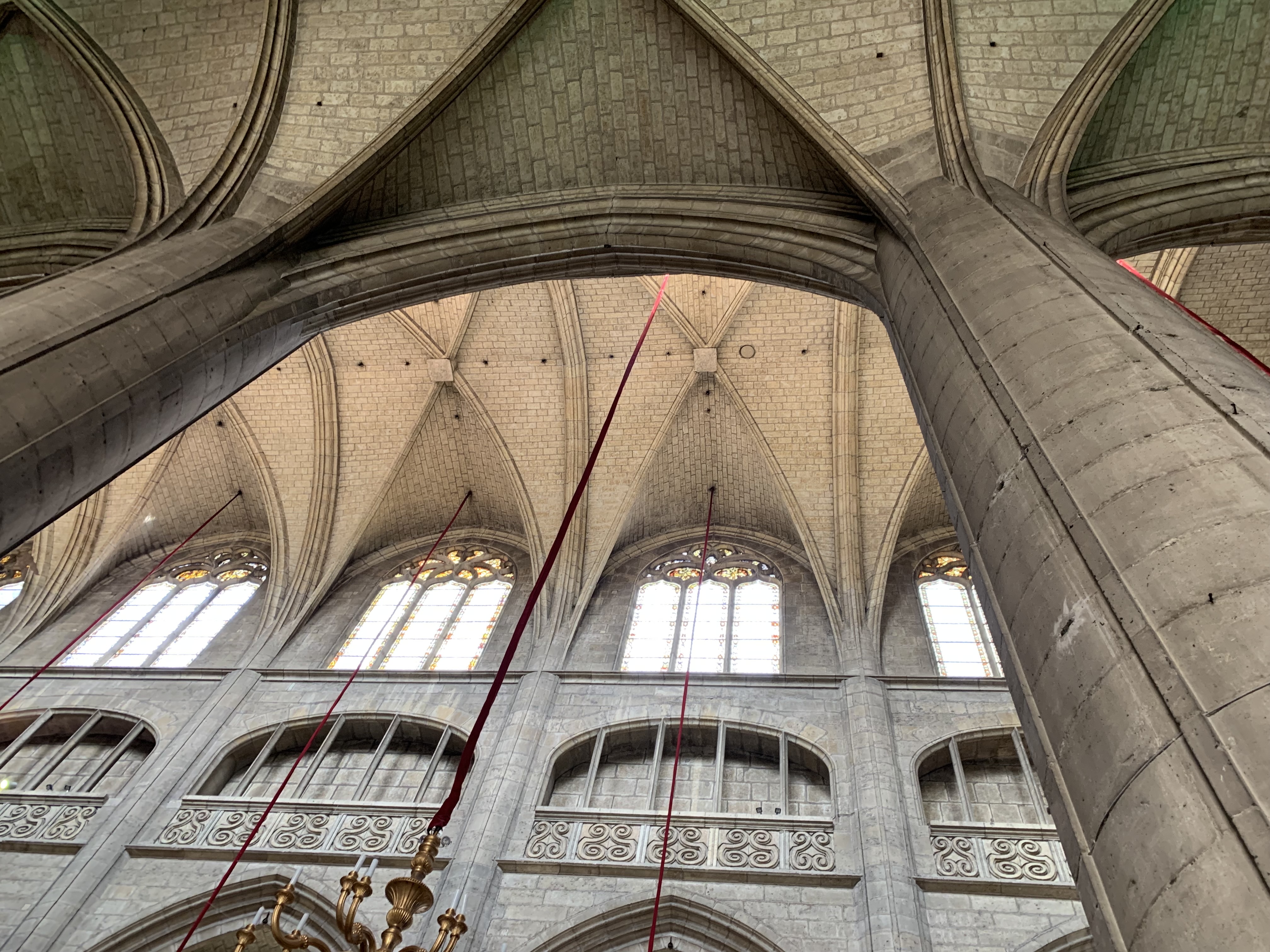 Belle cathédrale en cours de restauration avec de beaux vitraux