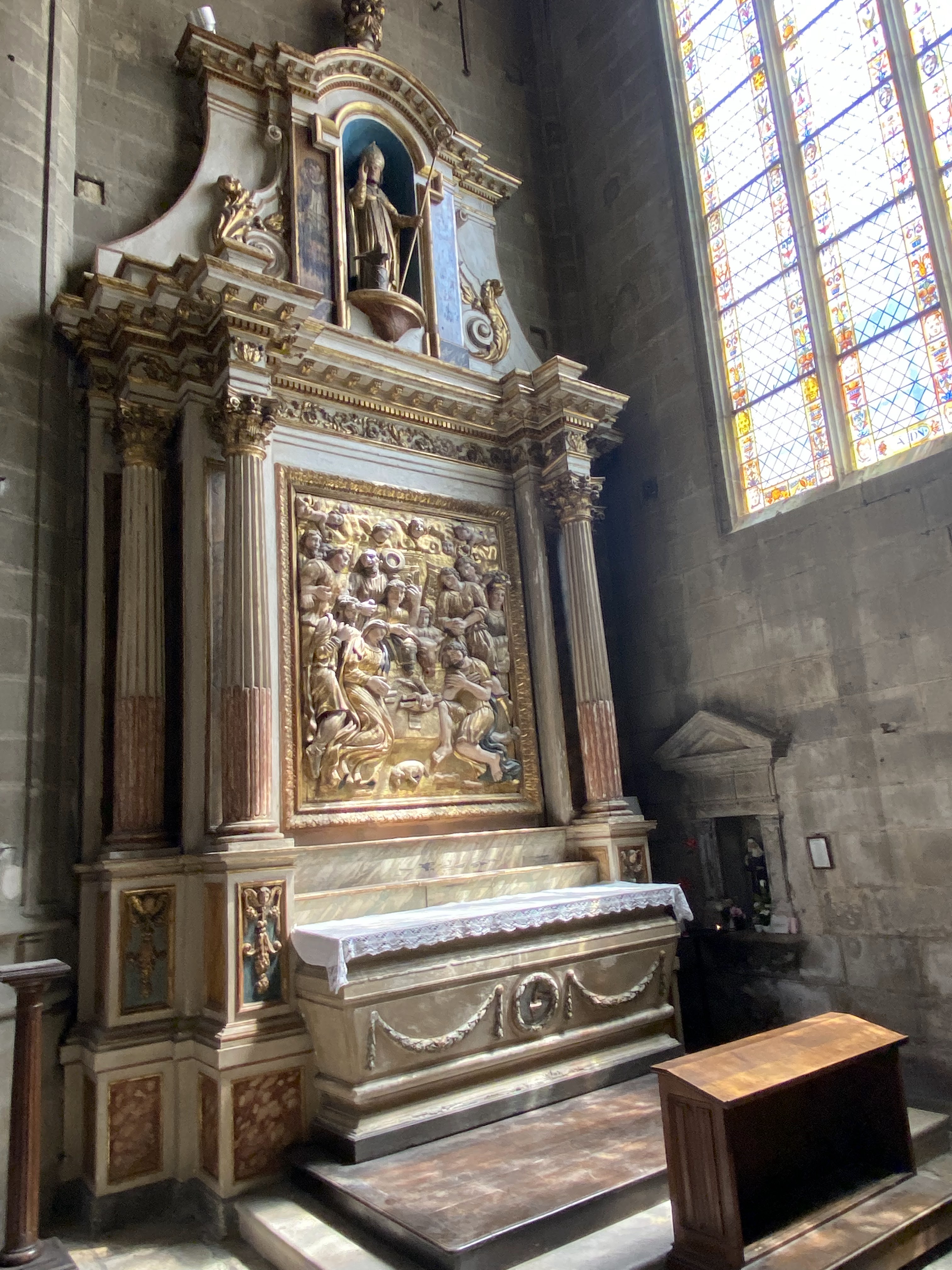La cathédrale est grandiose de style gothique, mais avec des touches style renaissance. Les vitraux comptent parmi les plus beaux du midi, leur luminosité chatoyante attire irrésistiblement le regard. A l'intérieur, vous trouverez un choeur en bois de chêne de 1552, sculpté dans la masse. Il est composé de stalles hautes et basses ou plus de 1500 personnages sont sculptés avec finesse et force de détail. Il vous faudra débourser 2.50 euros pour y accéder mais cela vaut vraiment la peine.