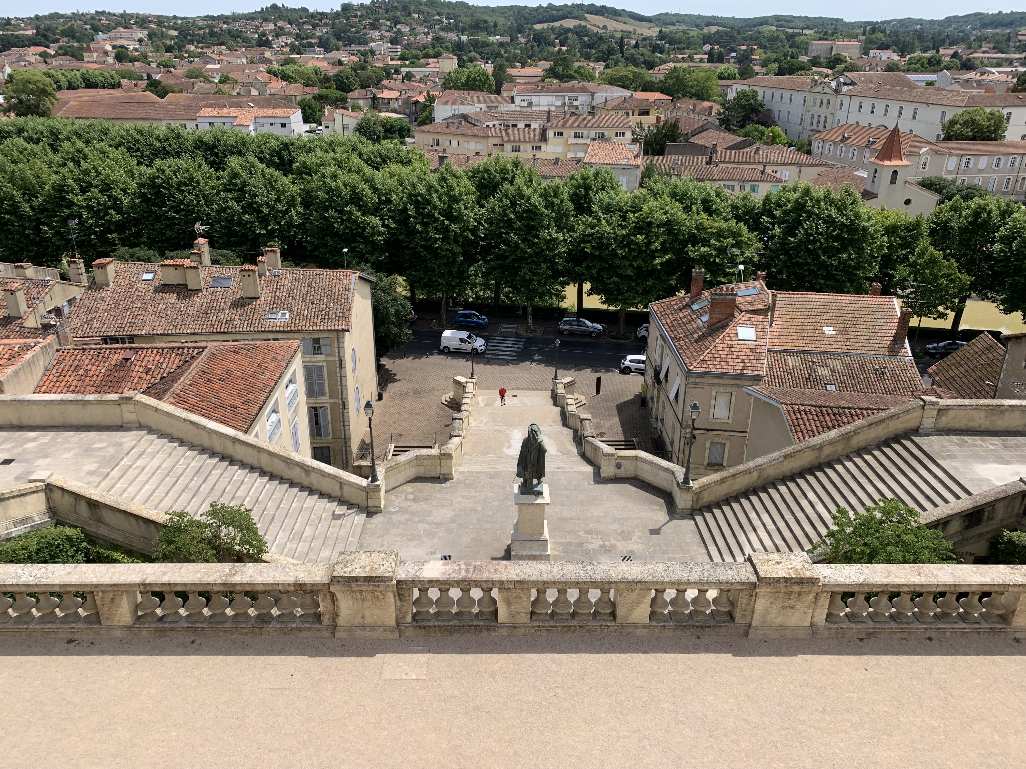 Magnifique et vue superbe en temps dégagé sur Auch ville basse et les Pyrénées en haut des escaliers.
