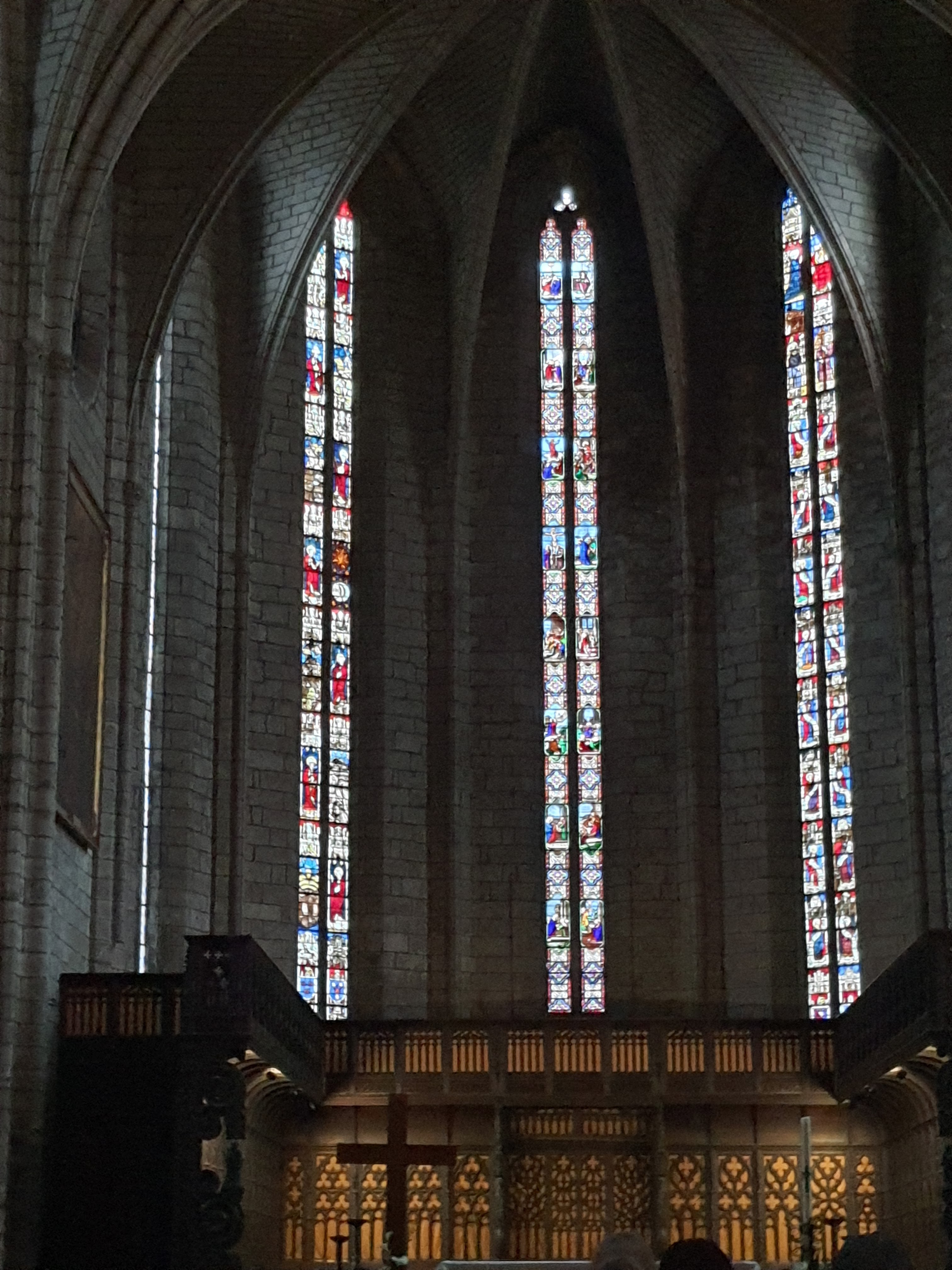 Belle cathédrale. J'étais à un enterrement. Cérémonie très ouverte aux personnes plus éloignées de l'Église, œcuménique, tout en étant authentique, simple et profonde.