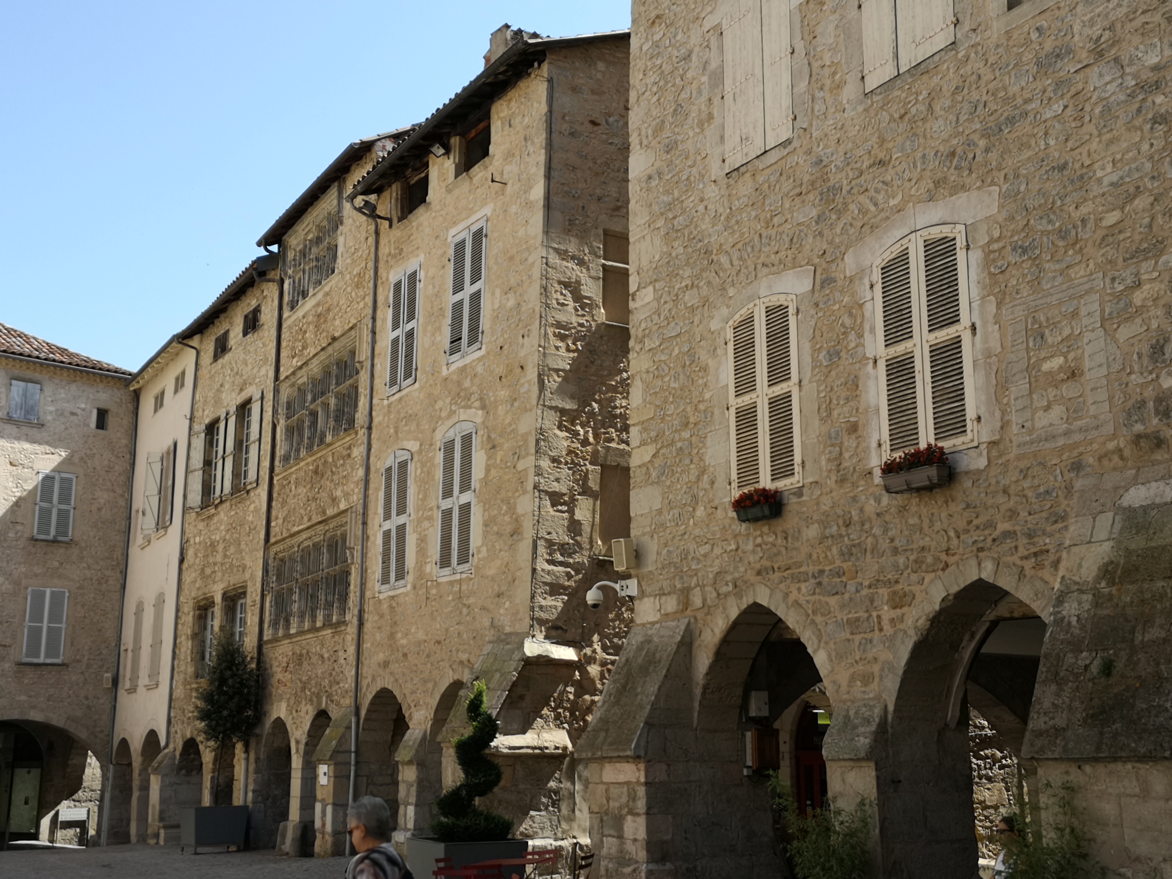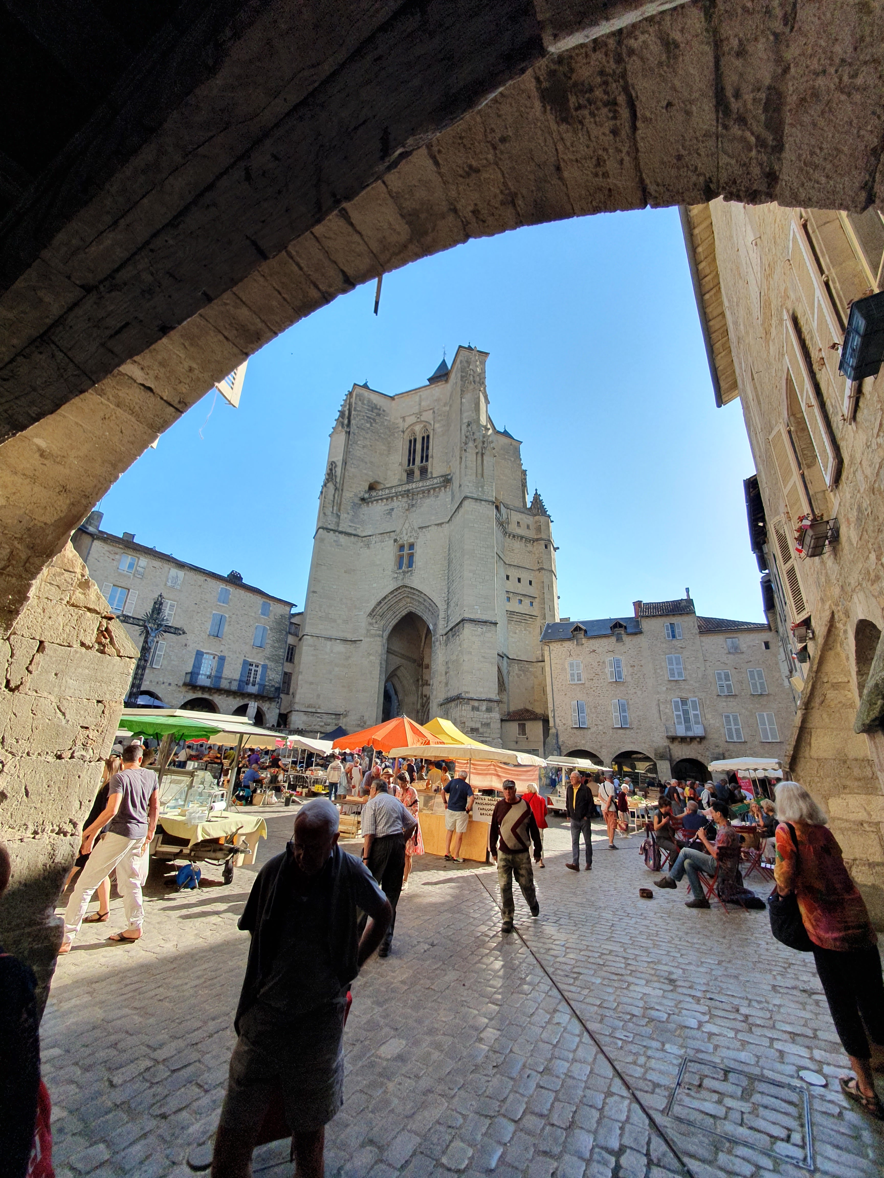Magnifique architecture des XIIIeme et XIVeme siècles, dont on peut profiter au milieu des belles arcades qui entourent la place notre Dame, en même temps que du grand marché traditionnel qui s'y trouve le jeudi matin. Ça vaut le coup d'œil si vous passez par là.
