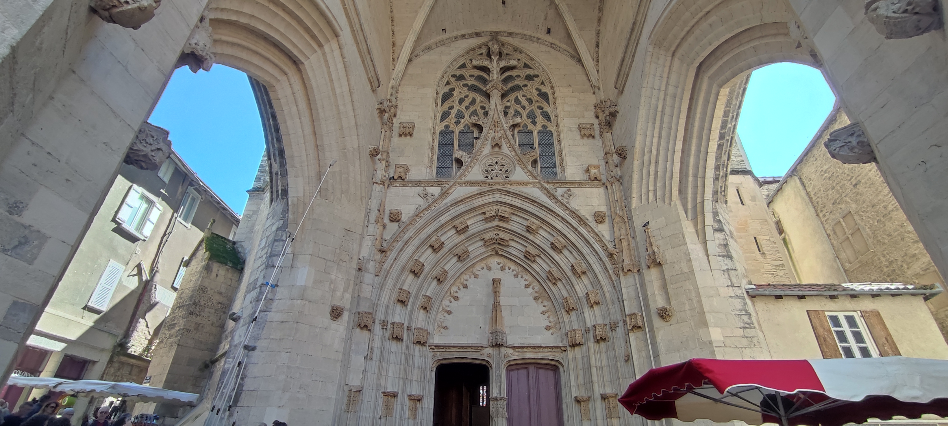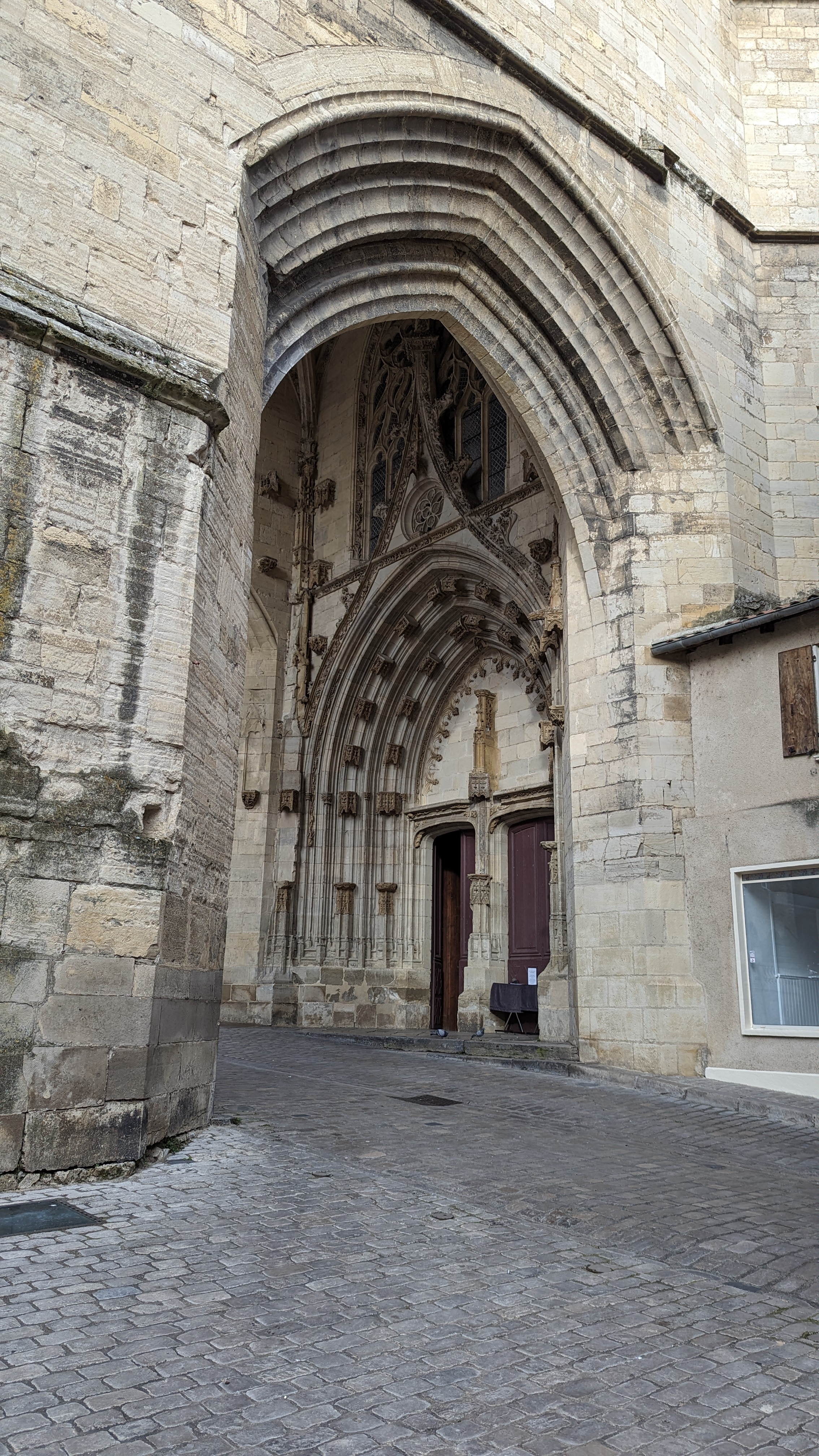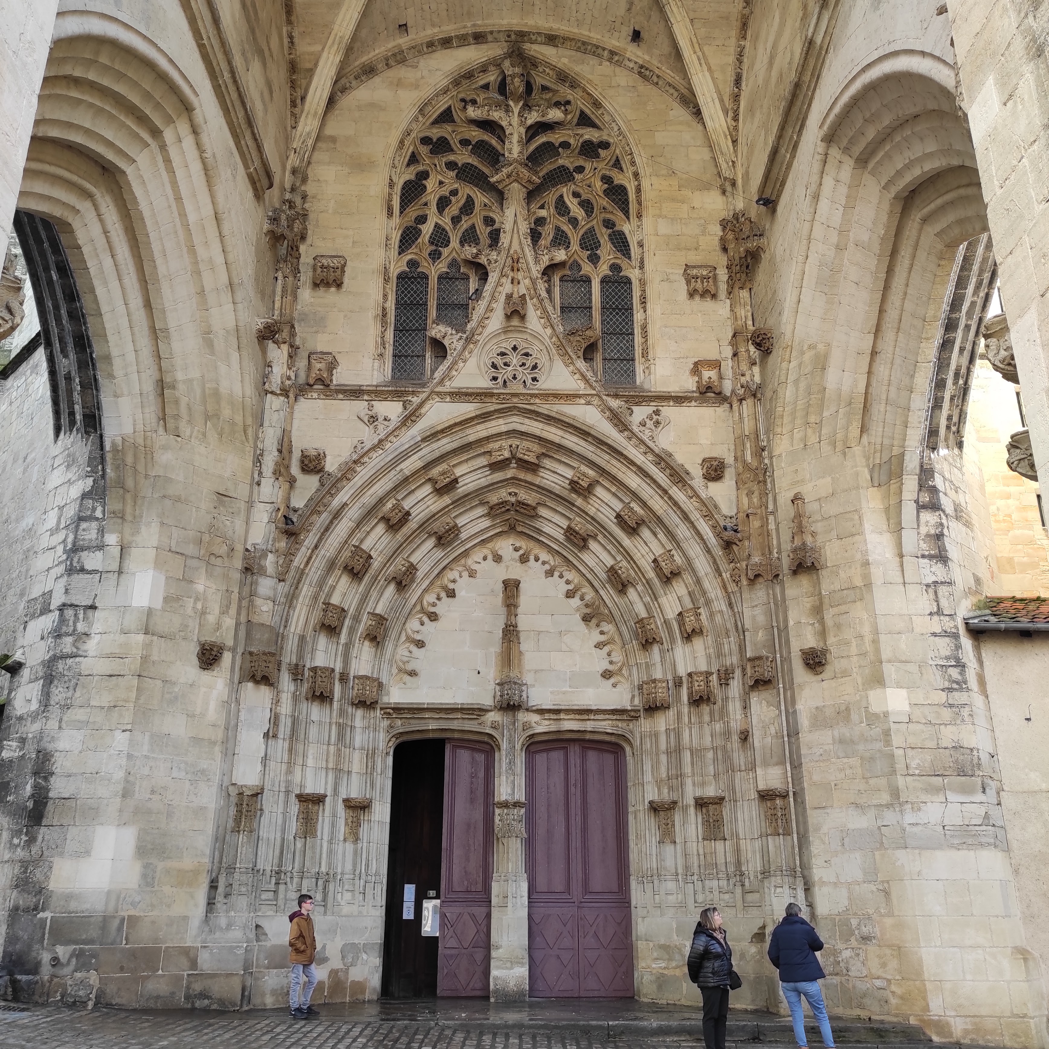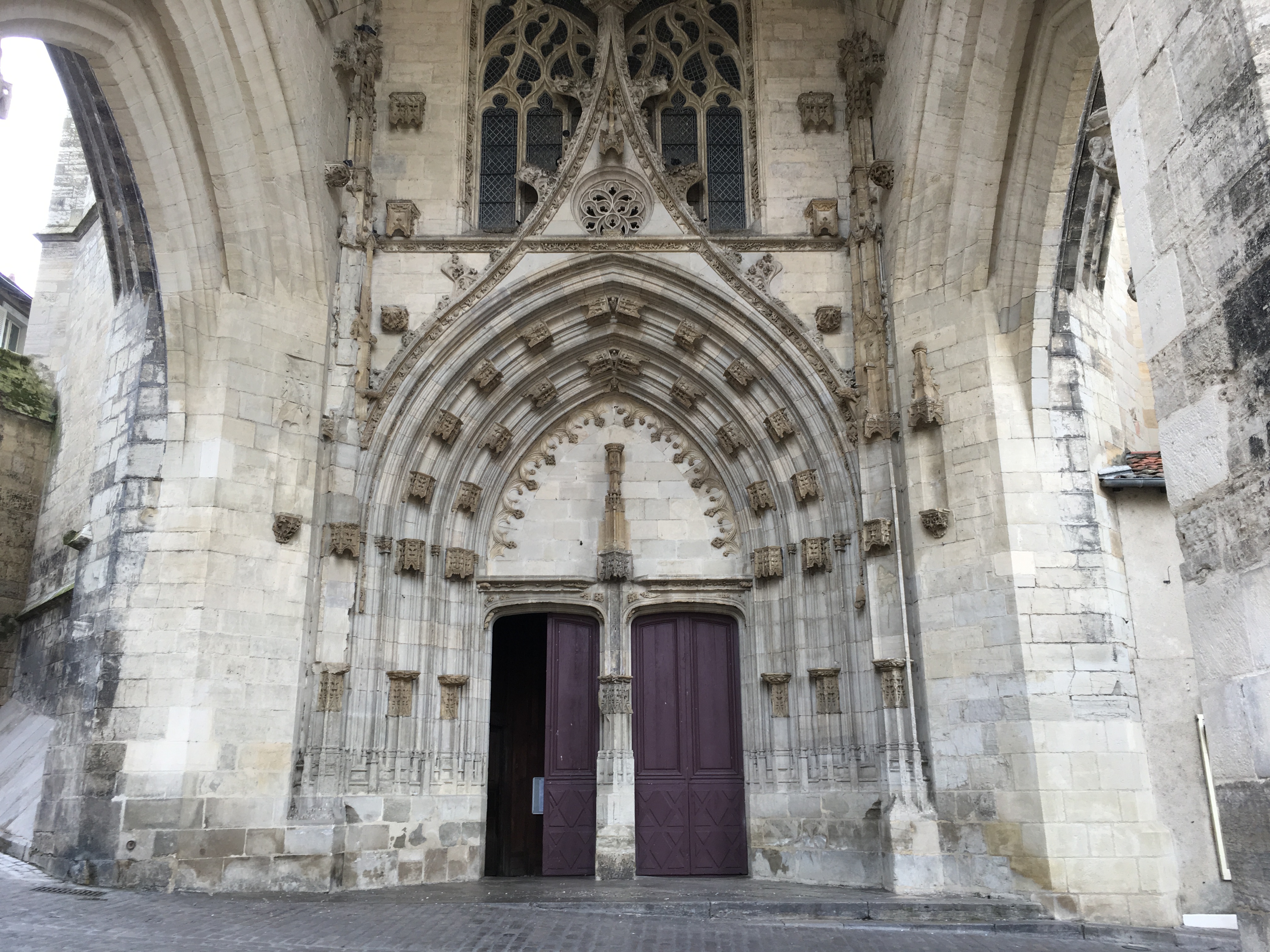 Un porche majestueux, une cathédrale qui mérite le detour. Étrange christ sur la croix