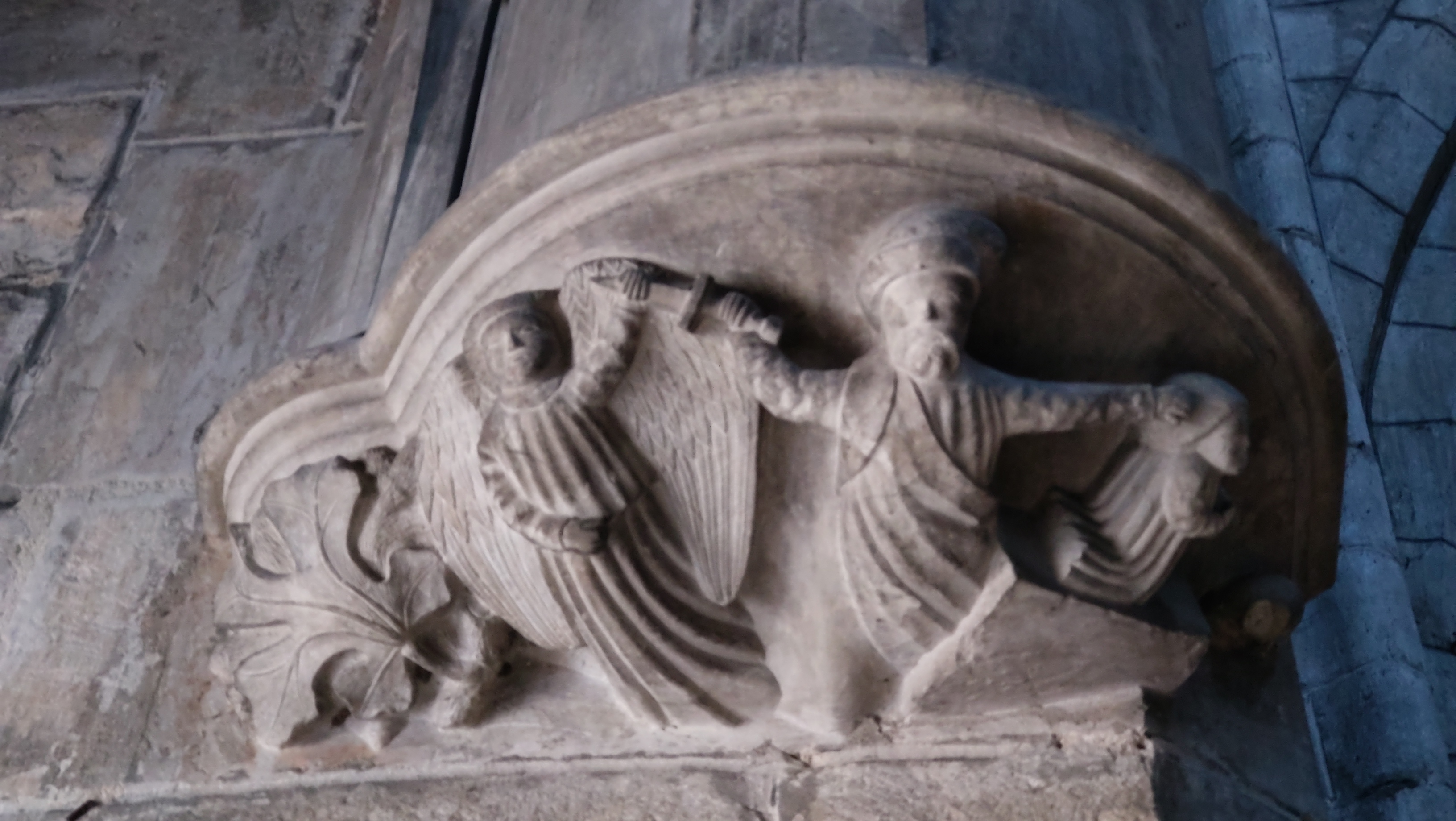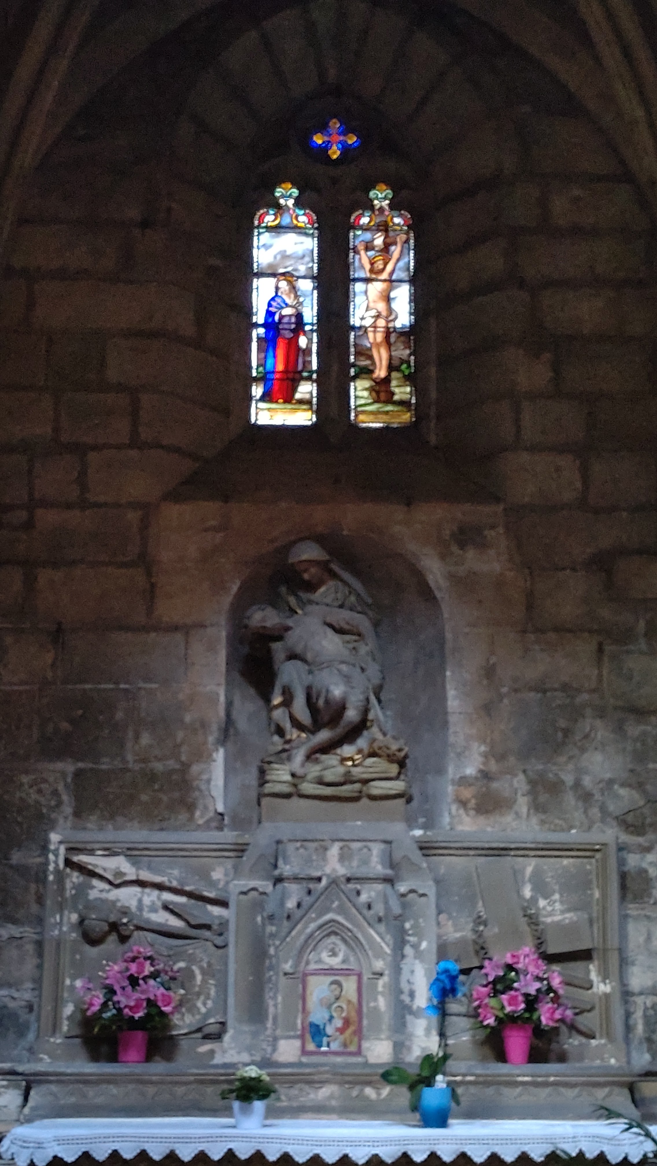 Dès l'entrée, nous sommes pris par l'humidité ambiante... Impossible de respirer correctement... Cette collégiale est sombre.